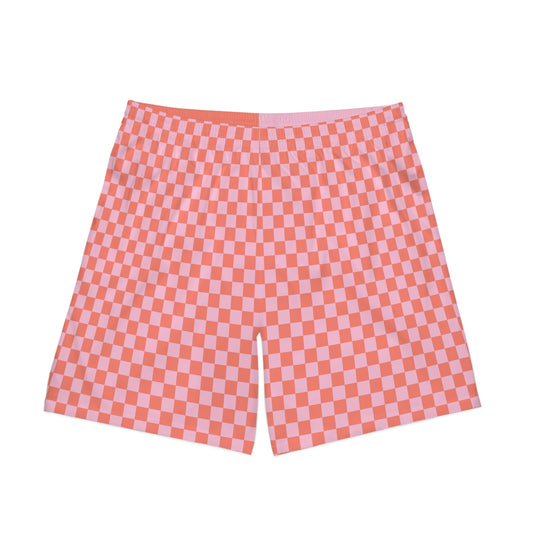 Peach Check Men's Beach Shorts