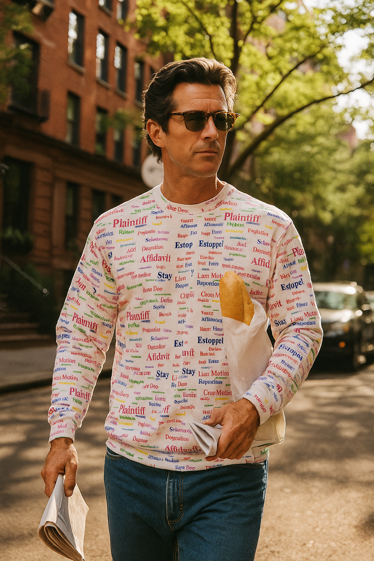 Meet the collection for anyone who has ever argued with a parking ticket, side eyed a contract, or simply enjoys sounding ninety percent smarter than they feel. The Legal Collection turns the world of legal jargon into wearable humor, combining sharp wit with bold, colorful designs that make every outfit a conversation starter.