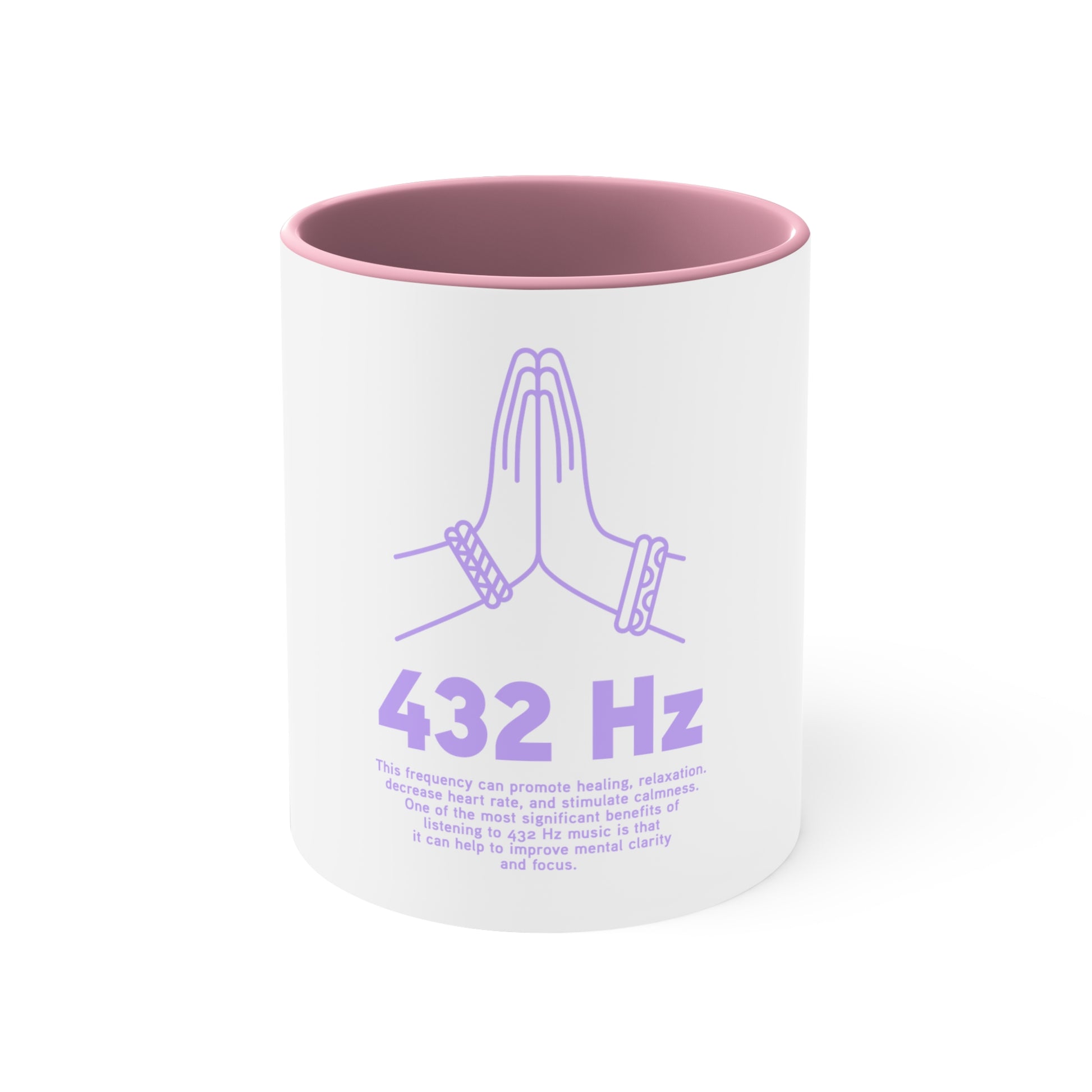Introducing our 432 Hz Frequency Coffee Mug from the Zen collection. This 11oz mug is the perfect way to enjoy your morning coffee while experiencing the healing benefits of 432 Hz frequency. The carefully accented C-Handle not only adds comfort to your grip but also enhances the elegant design of the mug. With a lead and BPA-free construction, this mug is both safe for you and the environment. The accented interior adds a touch of contrast and character, making this mug a unique and stylish addition to your morning routine. Start your day off right with our 432 Hz Frequency Coffee Mug.