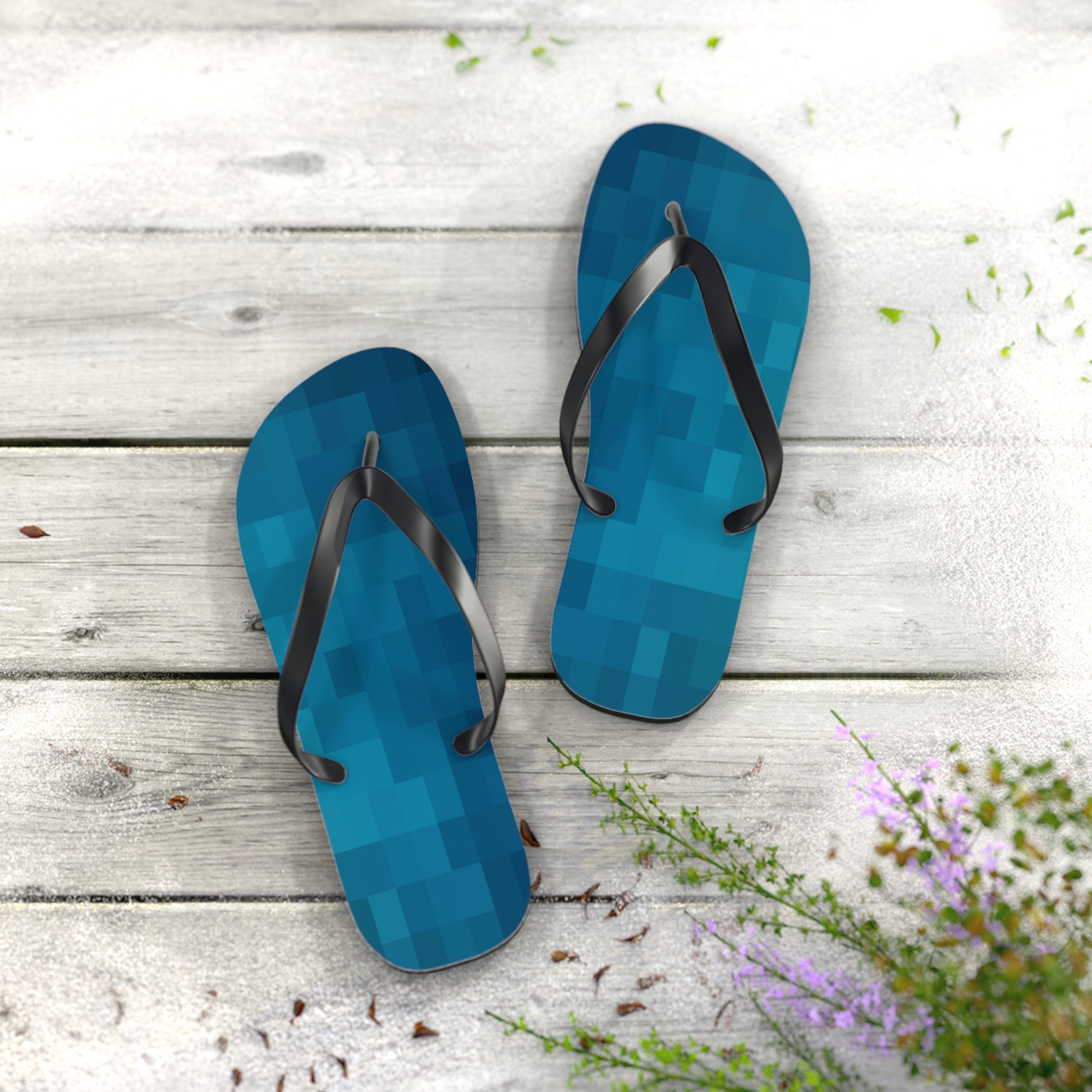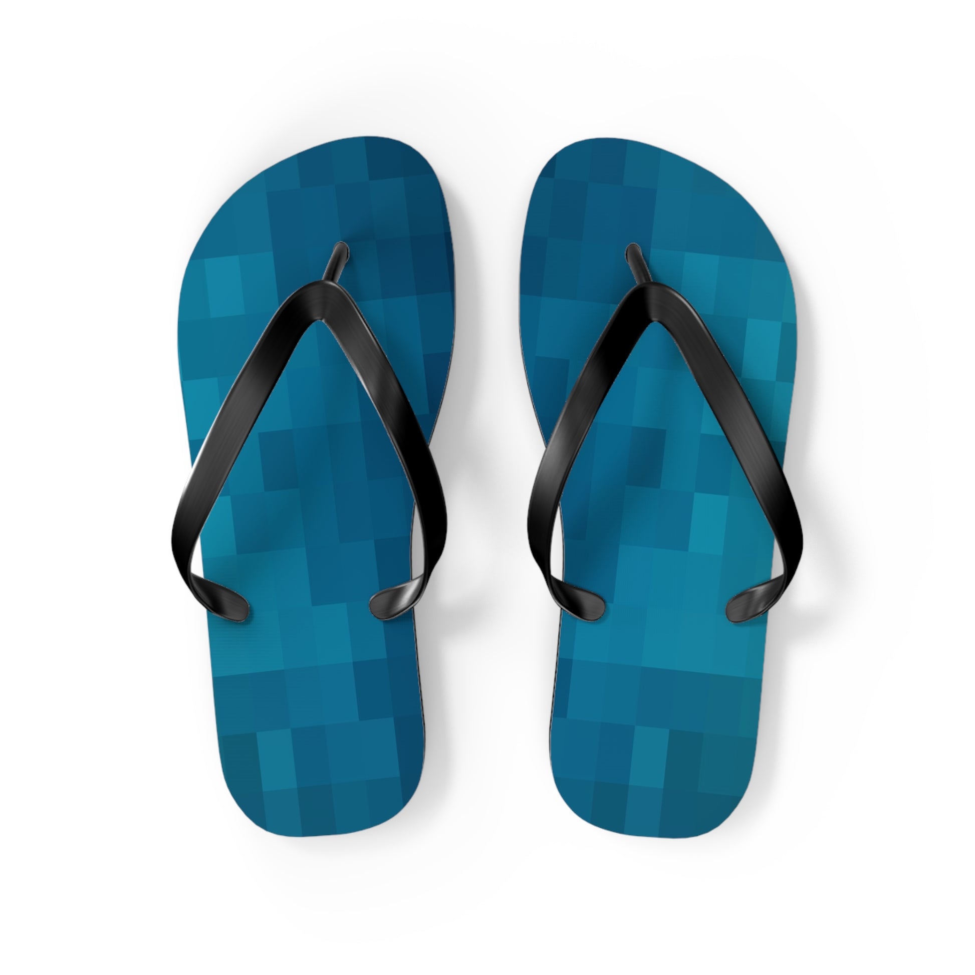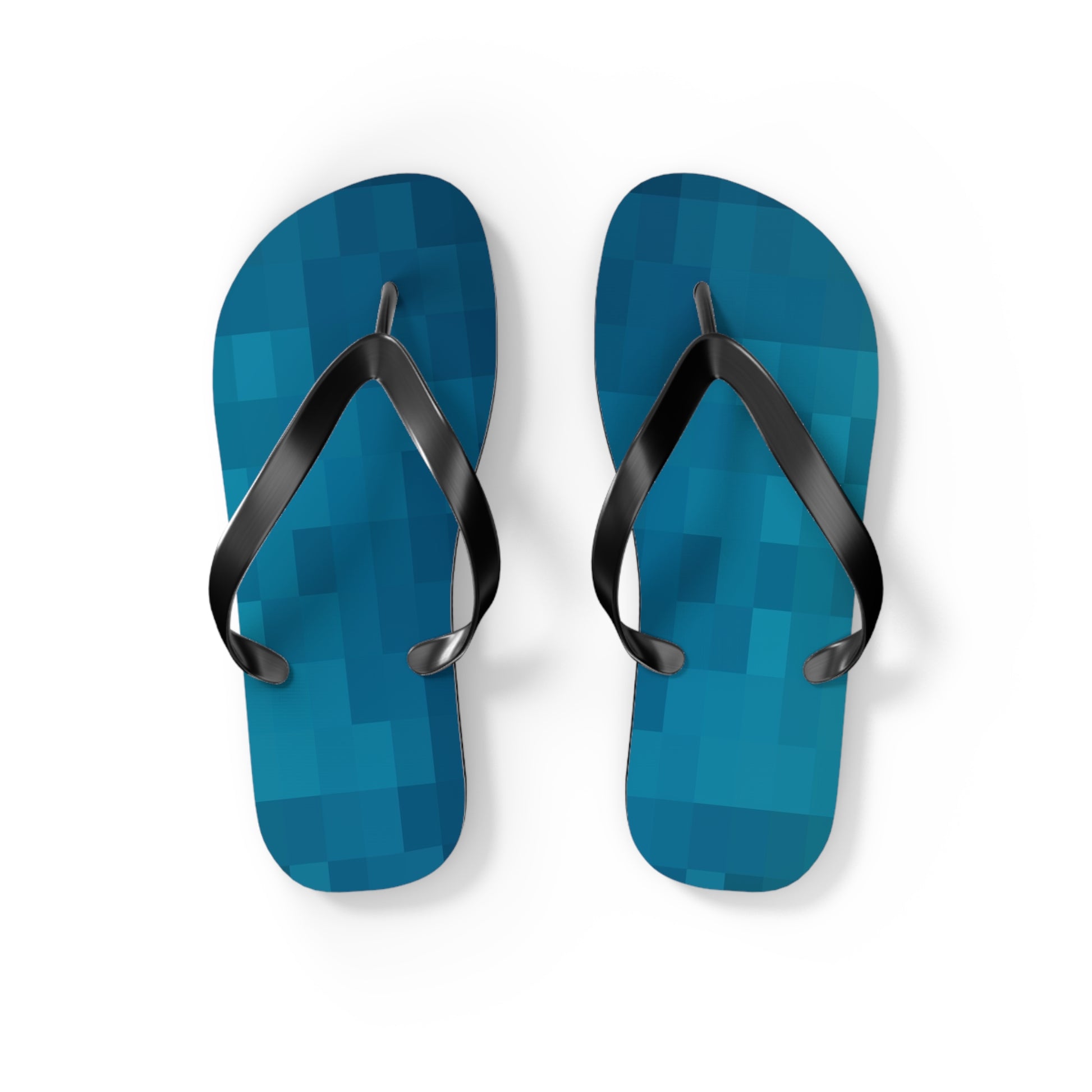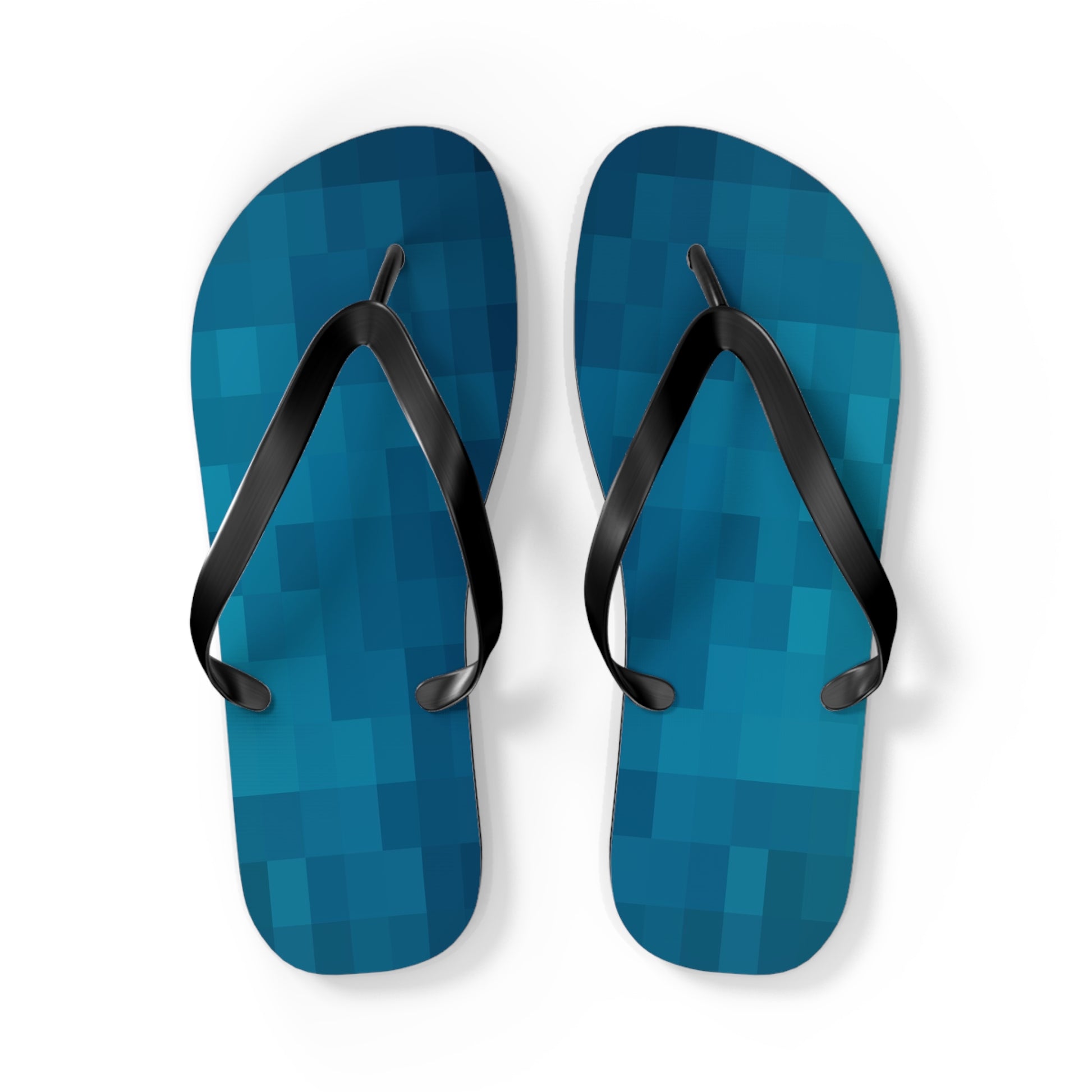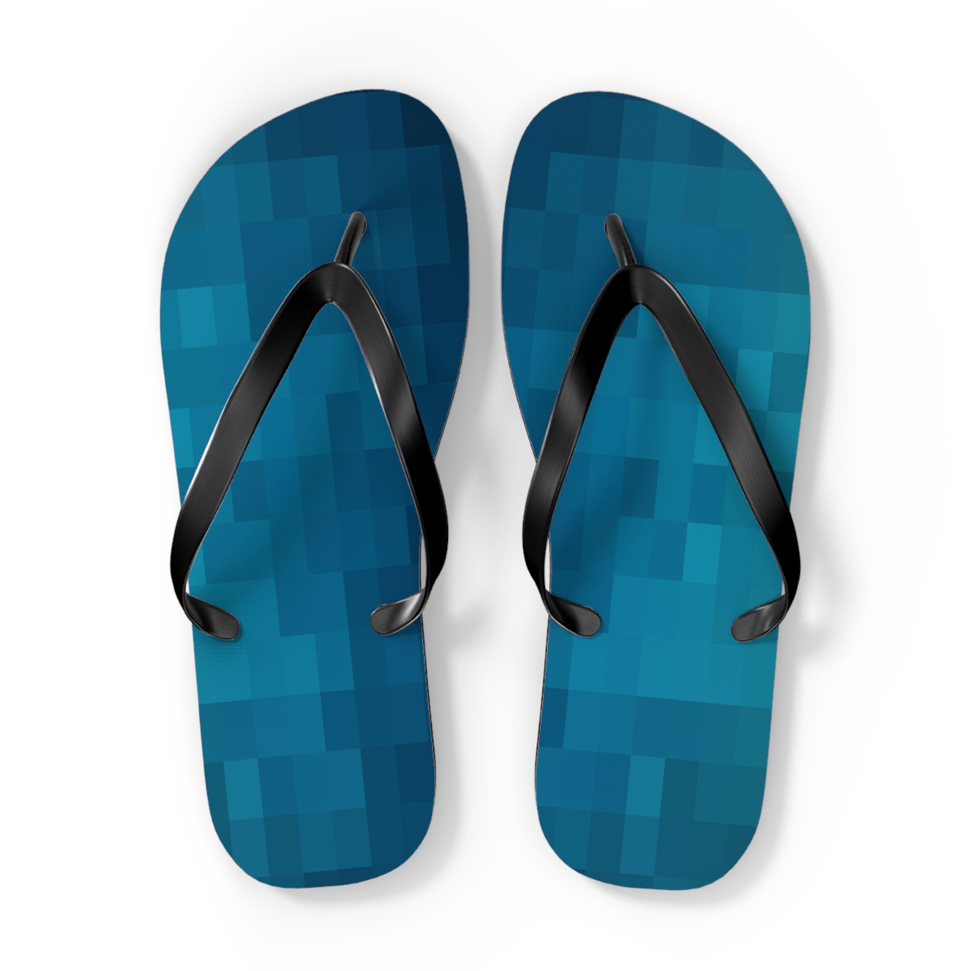 If you're looking for a pair of comfortable and stylish flip-flops to wear all day long during summer, look no further. Our 8-bit Blue Flip Flops are colorful and vibrant, and they're guaranteed to be a hit. Made with high-quality materials such as EVA, polyester, and PVC, they feature a 5/8" (15 mm) thick EVA sole with a textured bottom and a 100% polyester suede sole cover. The black PVC strap adds a touch of elegance to the design, which runs true to size.