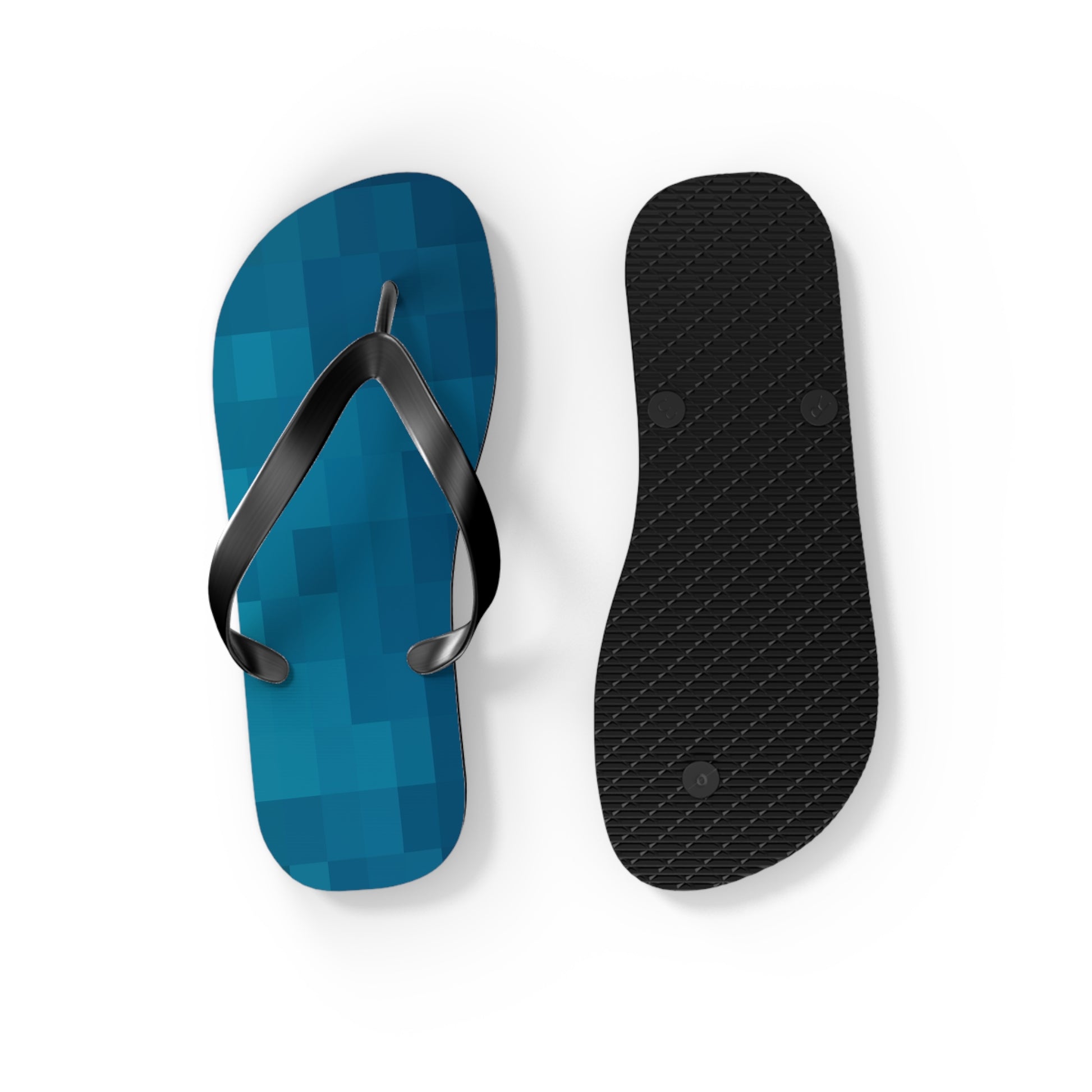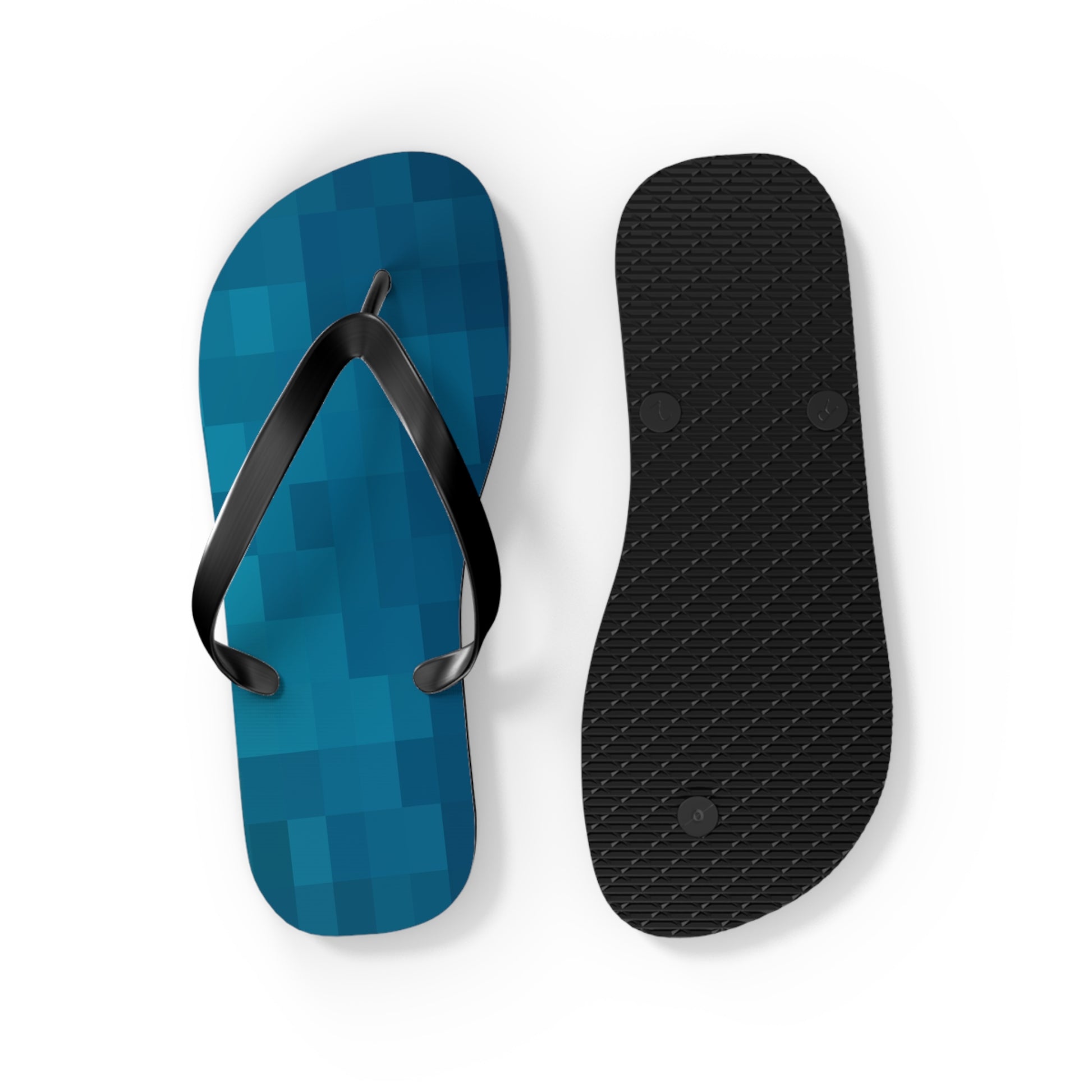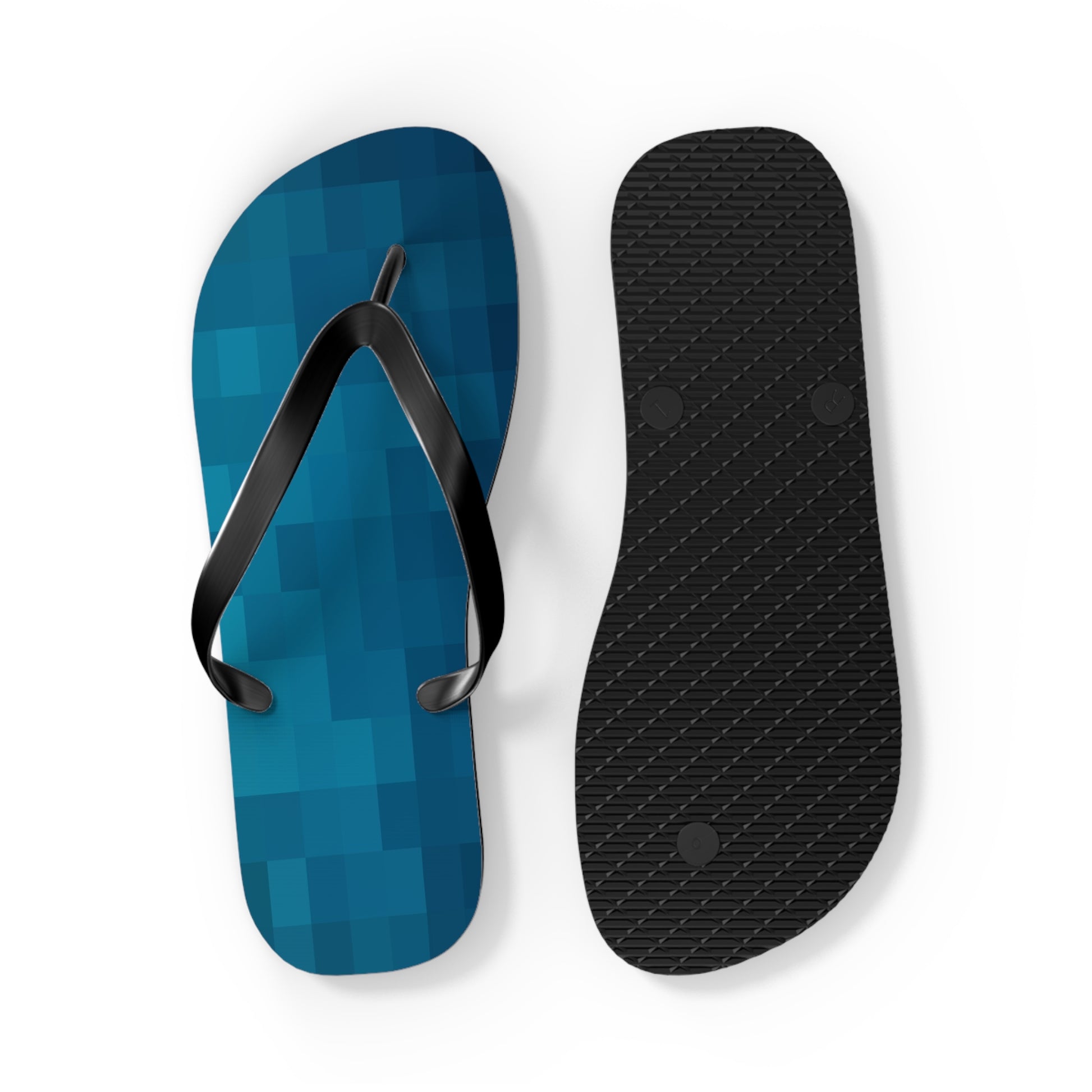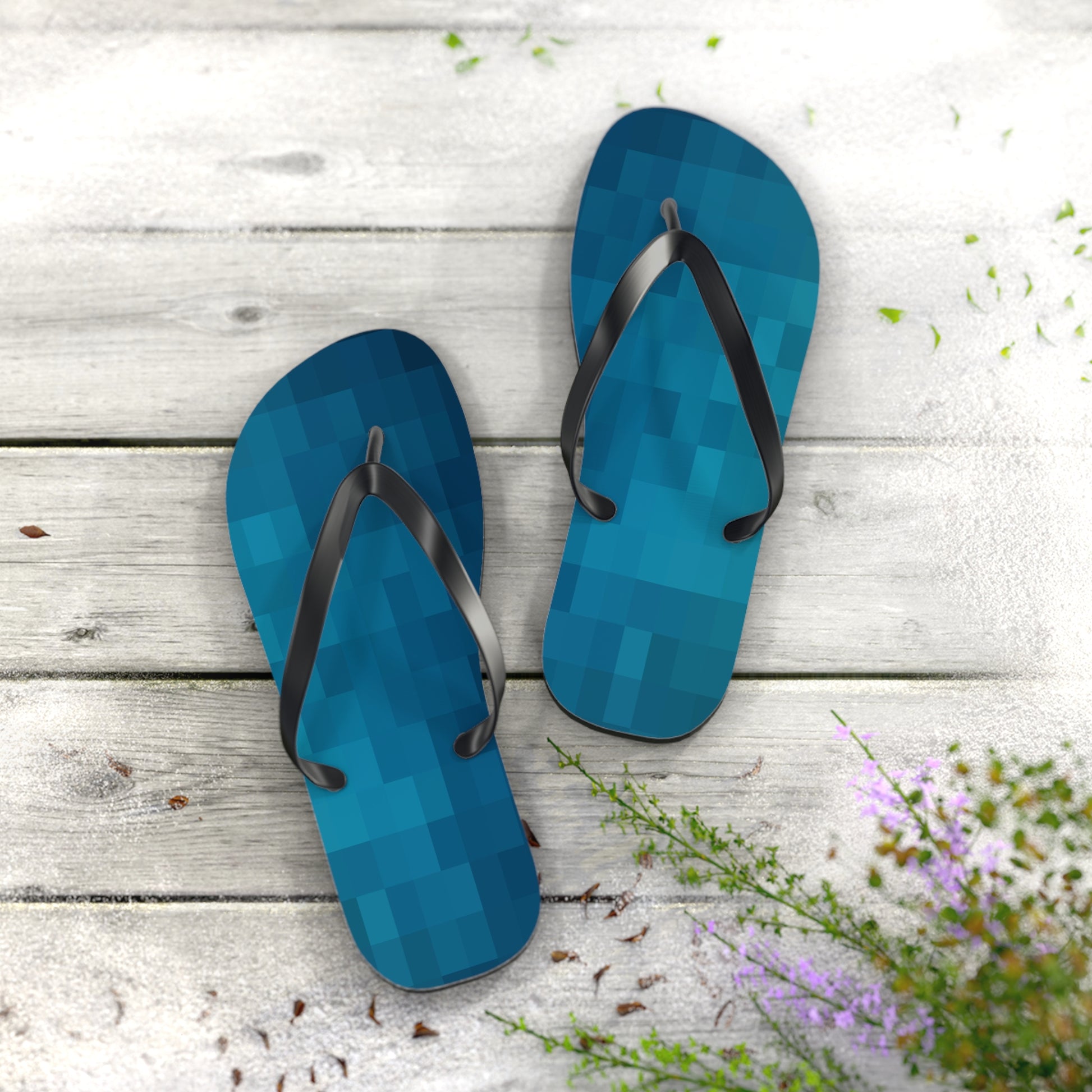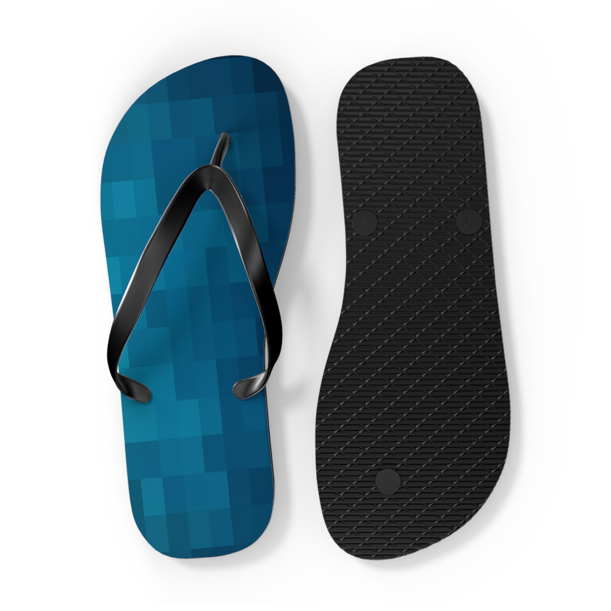 If you're looking for a pair of comfortable and stylish flip-flops to wear all day long during summer, look no further. Our 8-bit Blue Flip Flops are colorful and vibrant, and they're guaranteed to be a hit. Made with high-quality materials such as EVA, polyester, and PVC, they feature a 5/8" (15 mm) thick EVA sole with a textured bottom and a 100% polyester suede sole cover. The black PVC strap adds a touch of elegance to the design, which runs true to size.