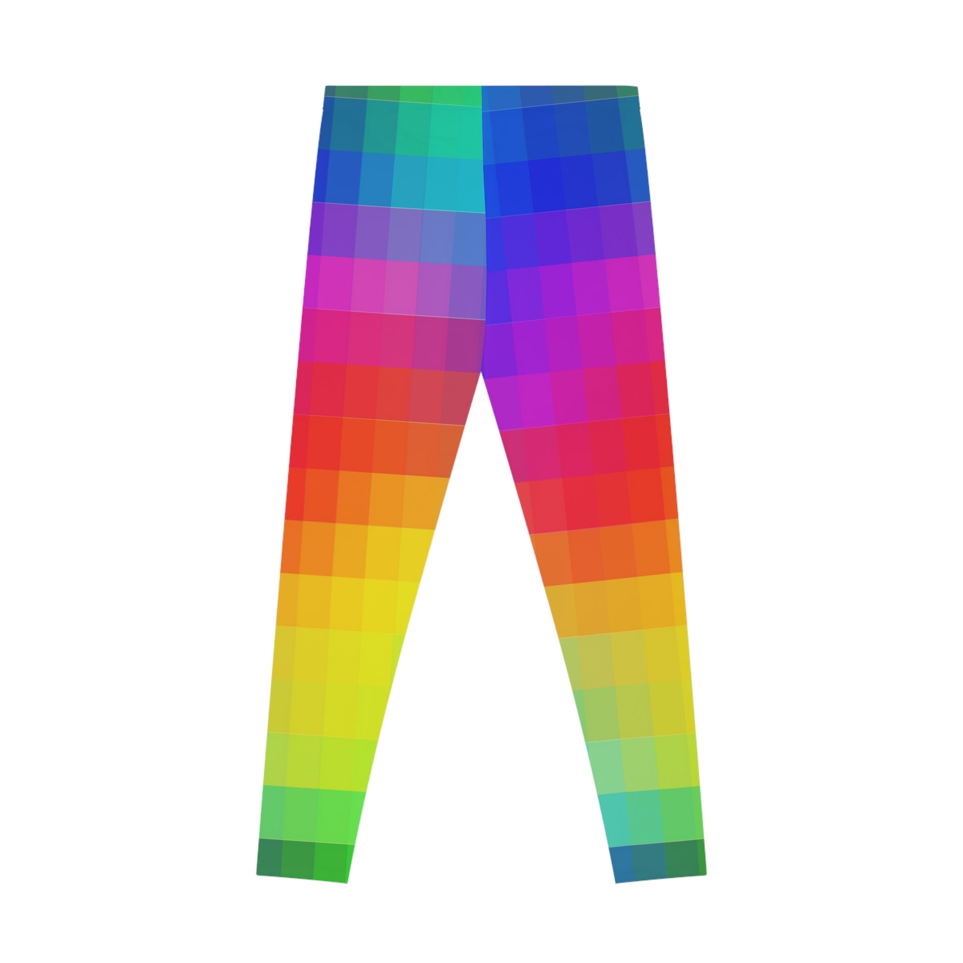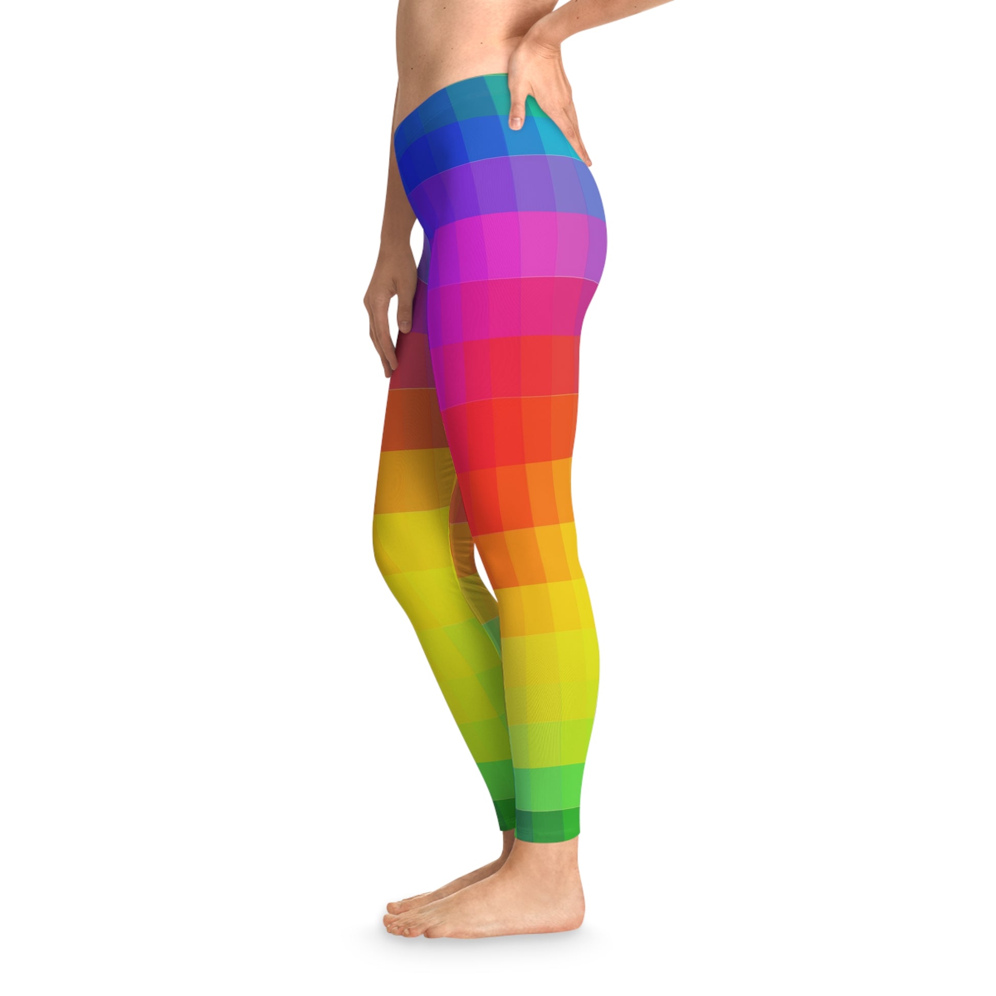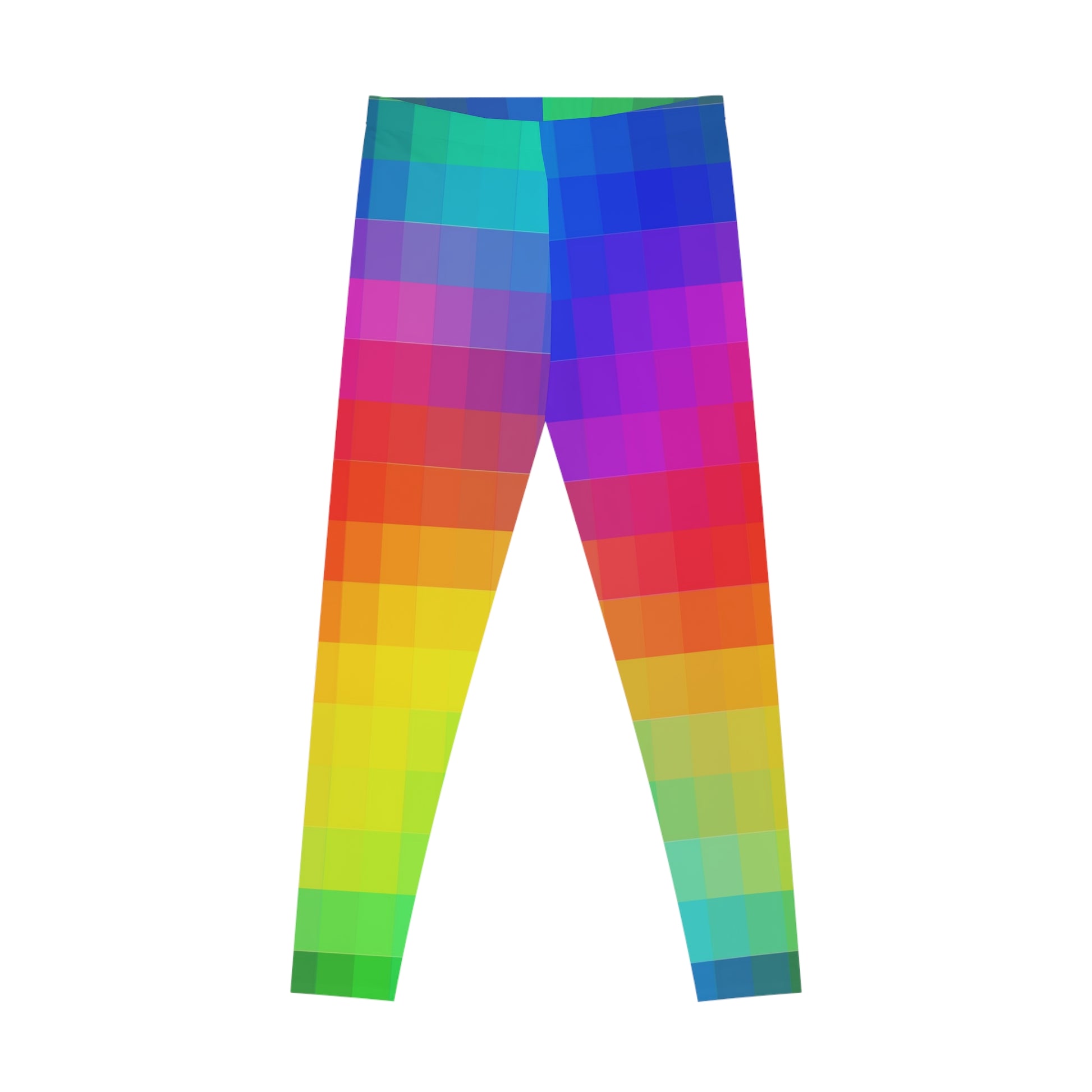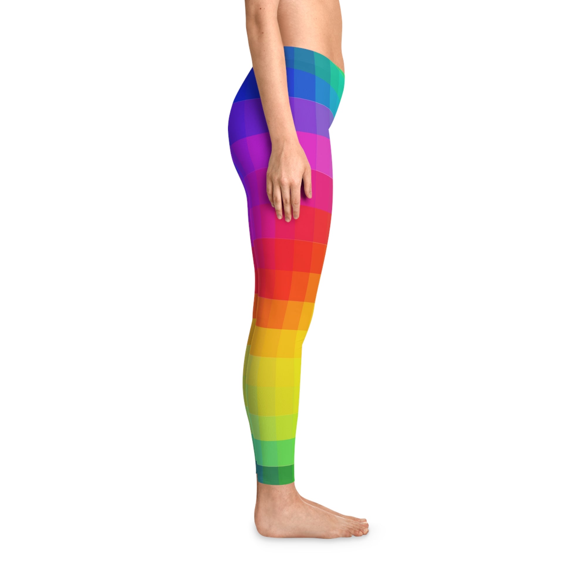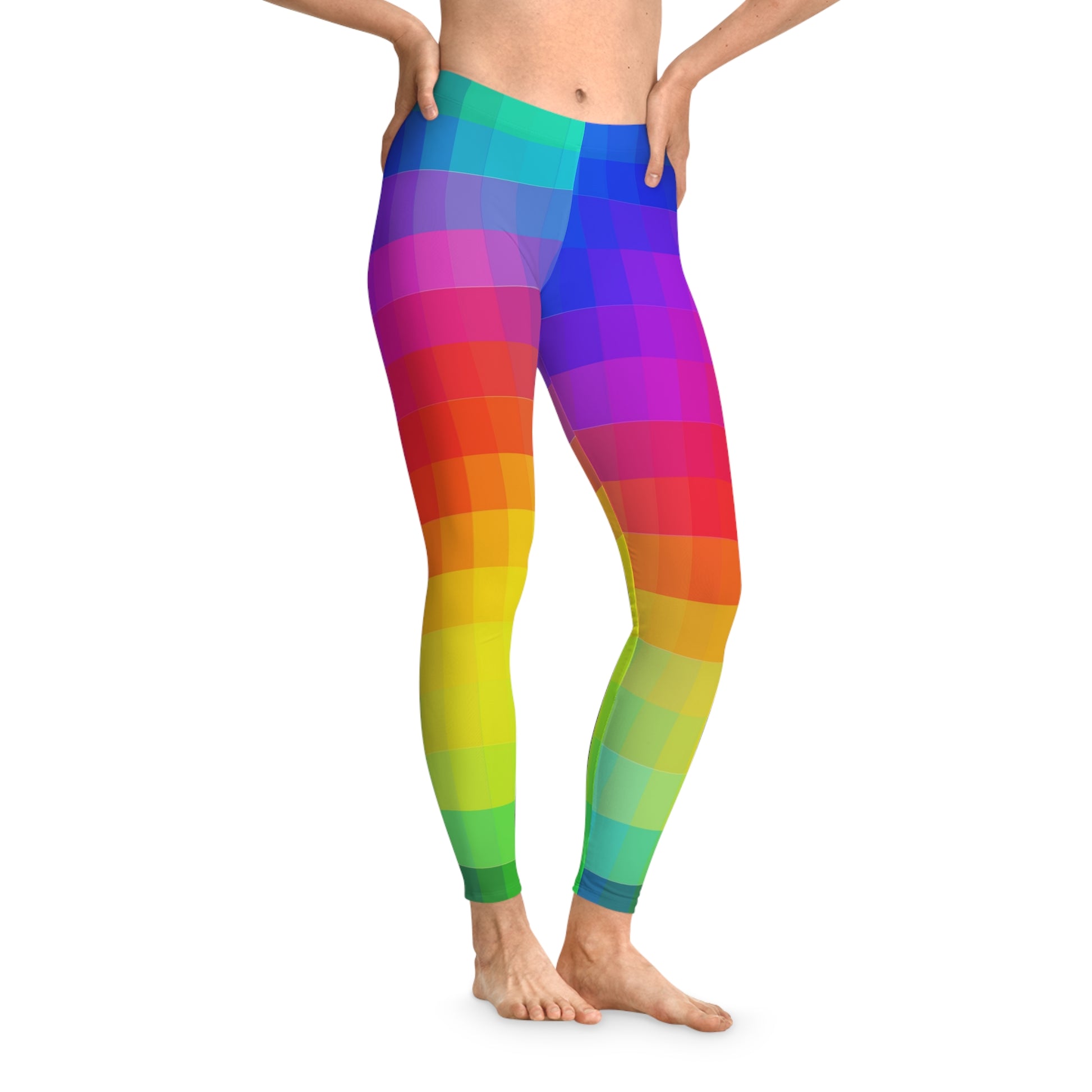 From home all the way to the gym, our 8-bit Rainbow leggings are gonna turn heads. With an ankle-high cut and a mid-waist fit, these leggings fit right into any yoga session, grocery shop run, or casual day out. Made with 88% polyester, 12% elastane, a stretchy fabric for a silhouette-complimenting fit, these leggings are assembled in the USA for total quality control.