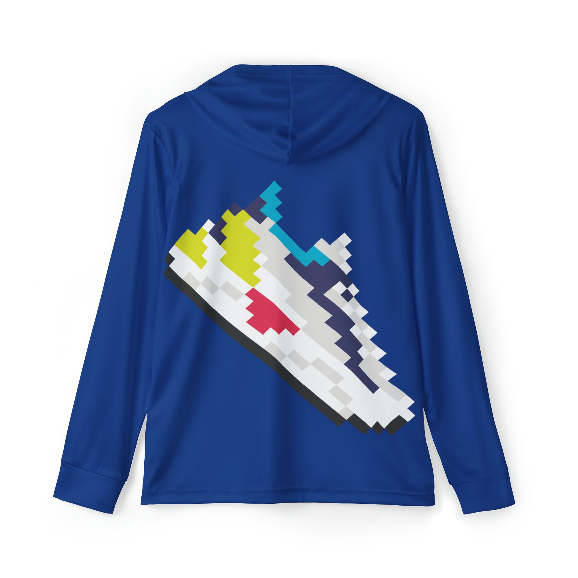 Our 8-bit Sneaker hooded swearshirt is the perfect mate for adventurers. Their UPF 50+ sun protection keeps harmful UVA and UVB rays at bay while its moisture-wicking properties keep the wearer dry and comfortable under peak performance conditions. Whether it's hiking, working out, cycling, running, or simply lounging on a casual day, our 8-bit Sneaker hooded sweatshirt remain breathable, stylish, and totally comfy.