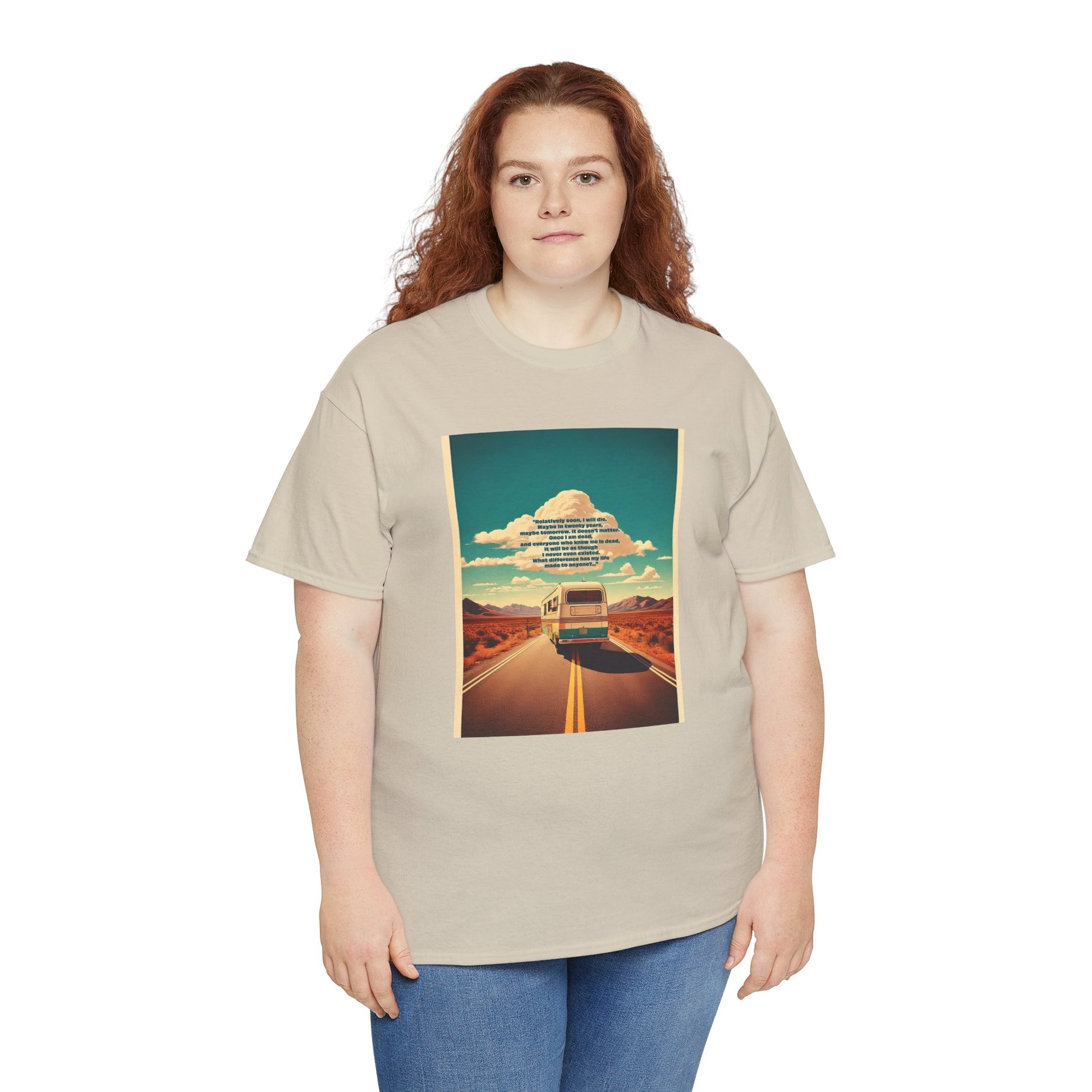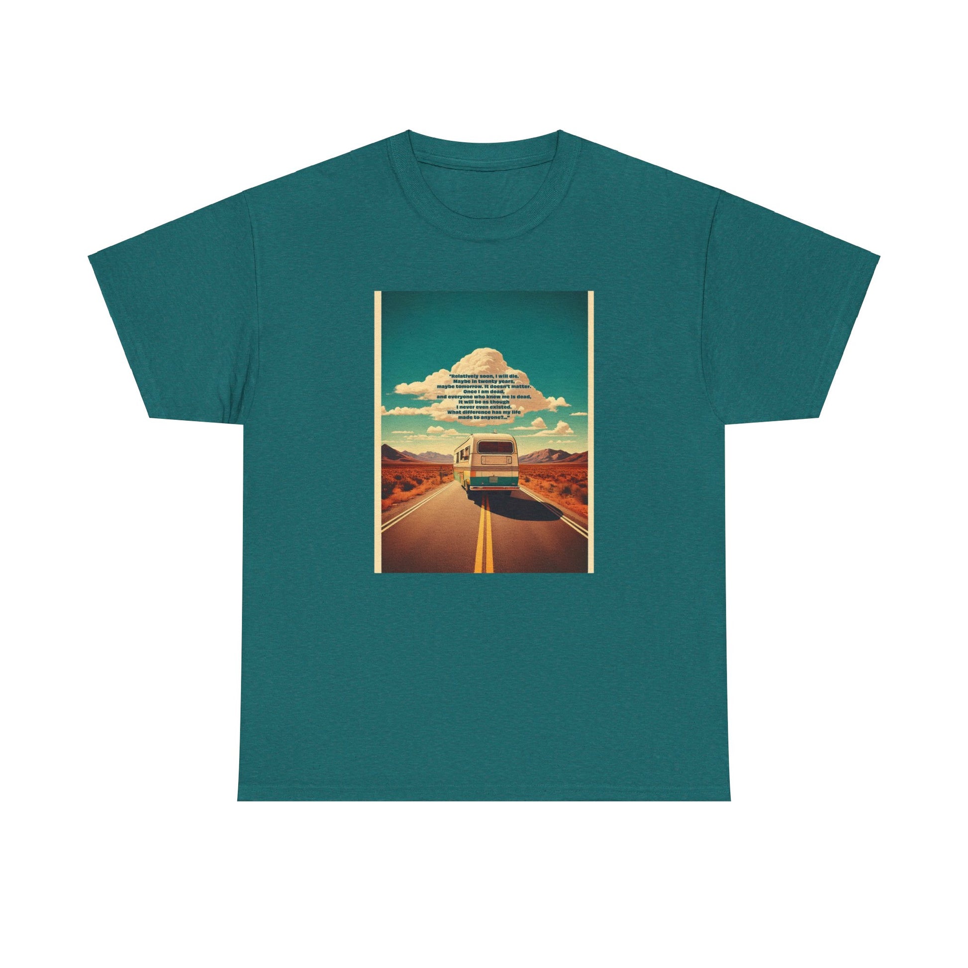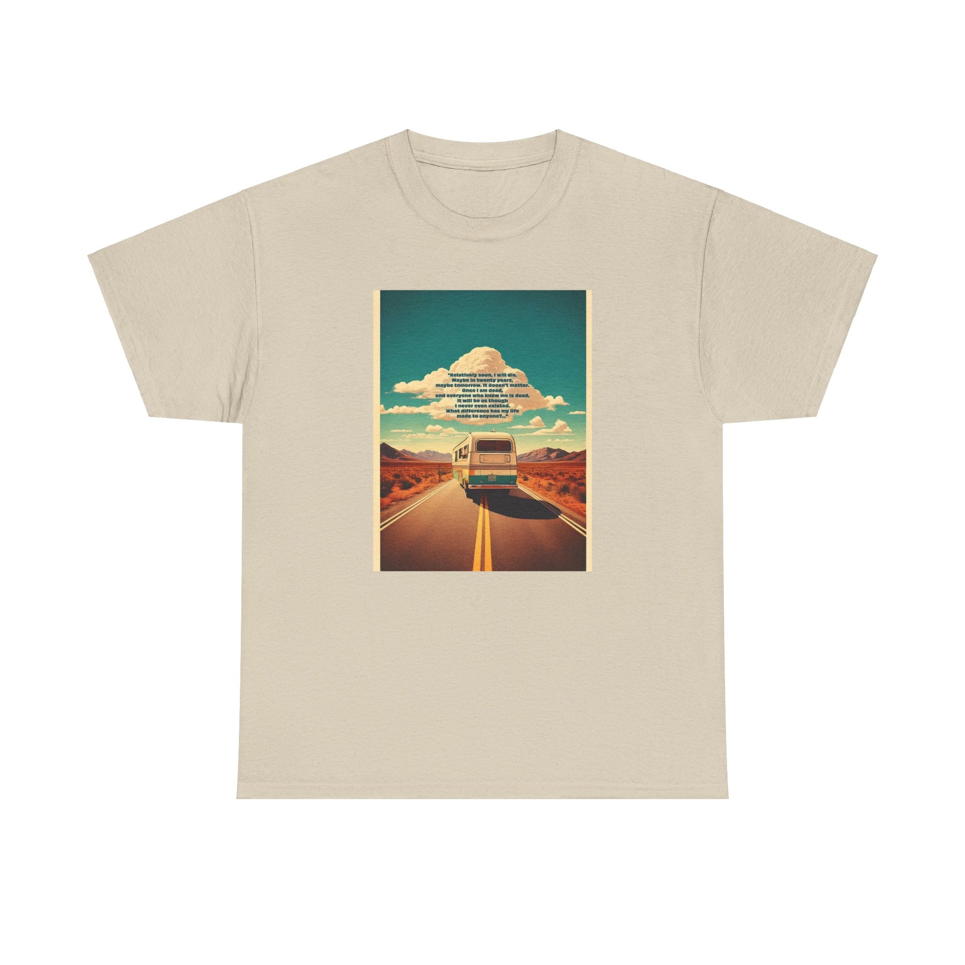 ✔ Design: Retro highway scene with an RV, cinematic aesthetics, and a thought-provoking quote