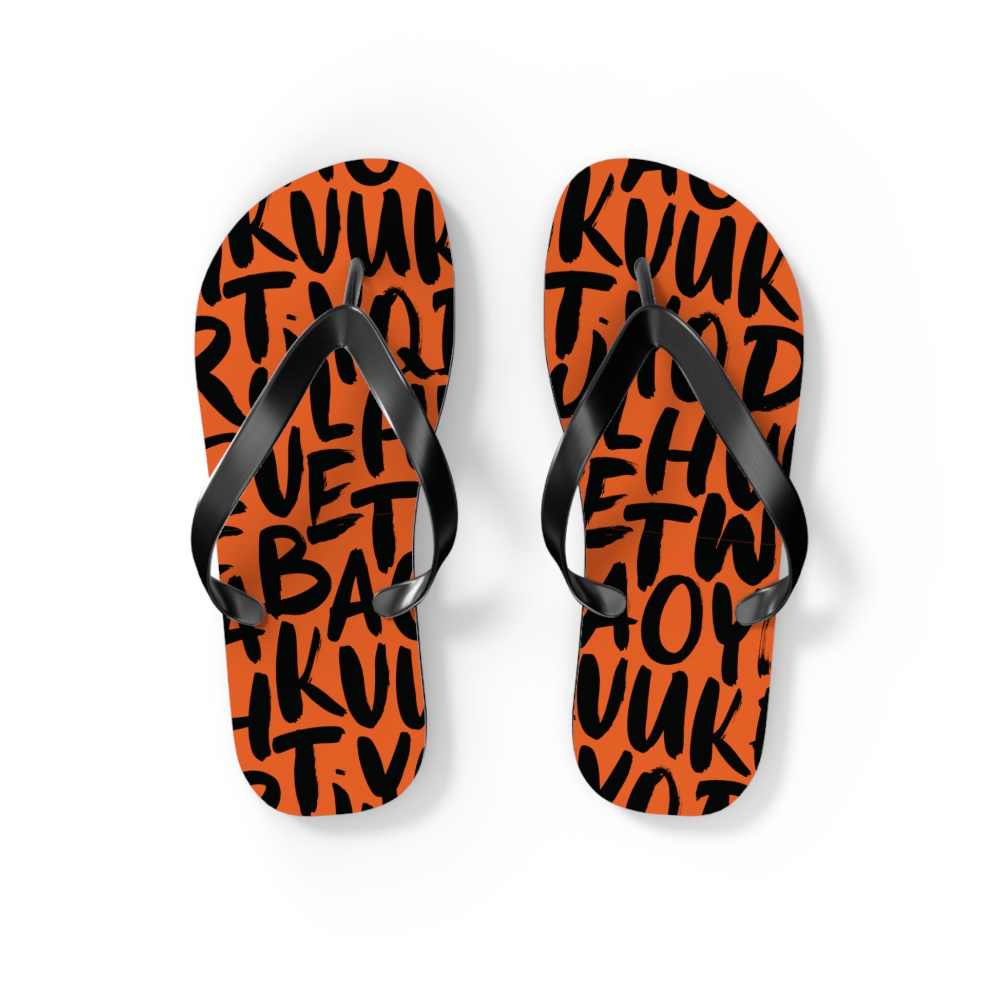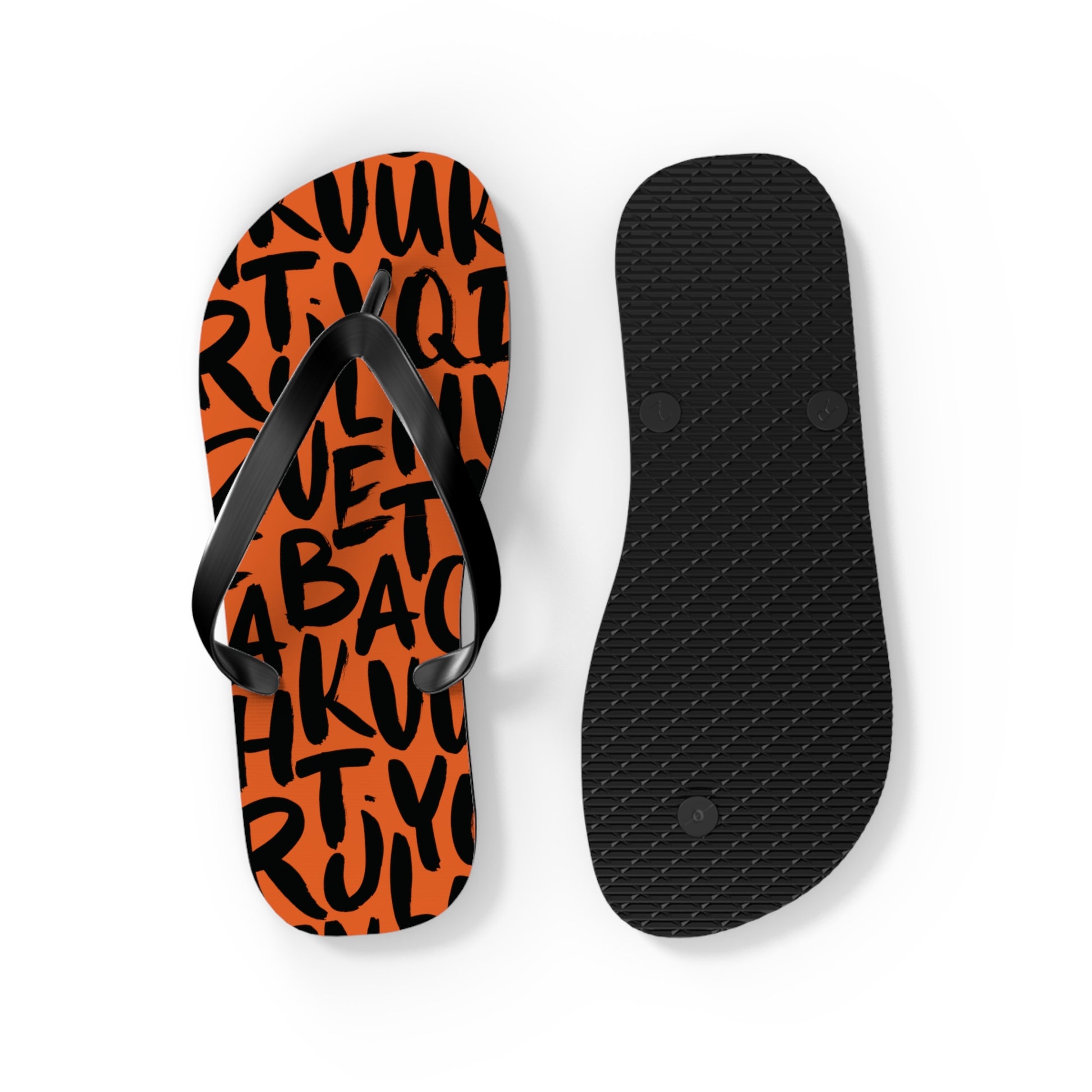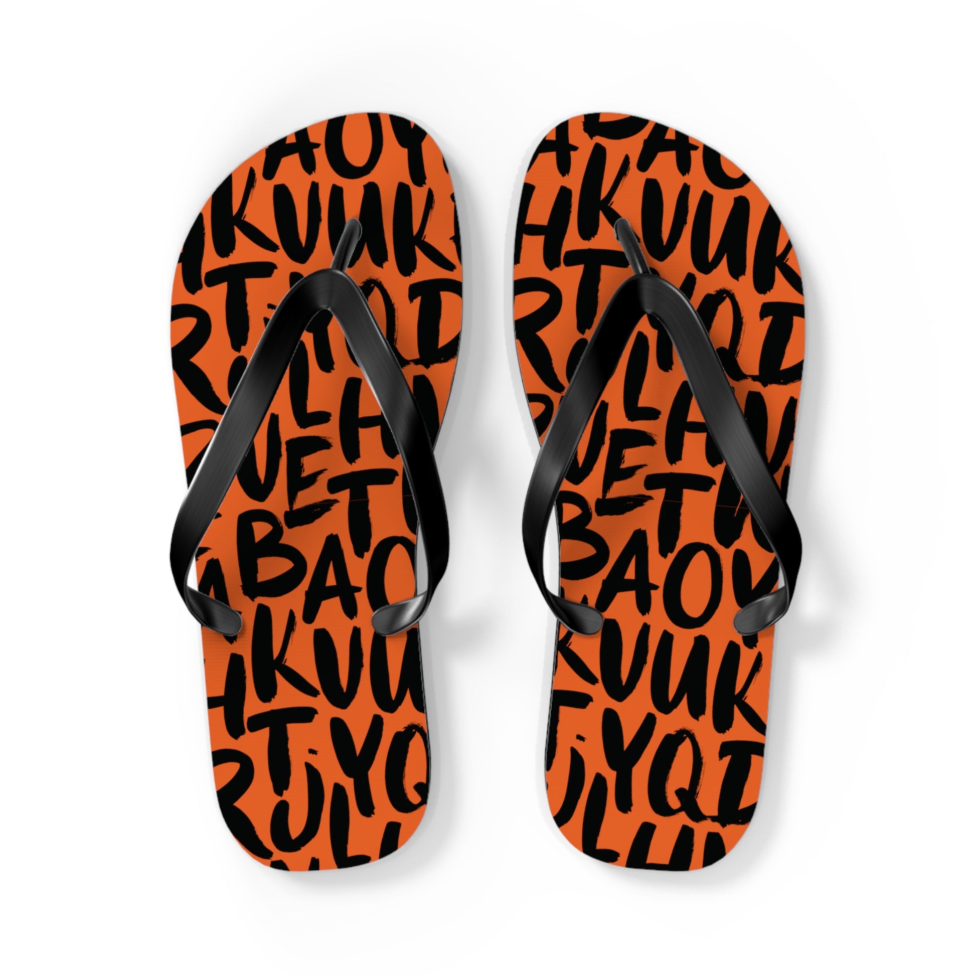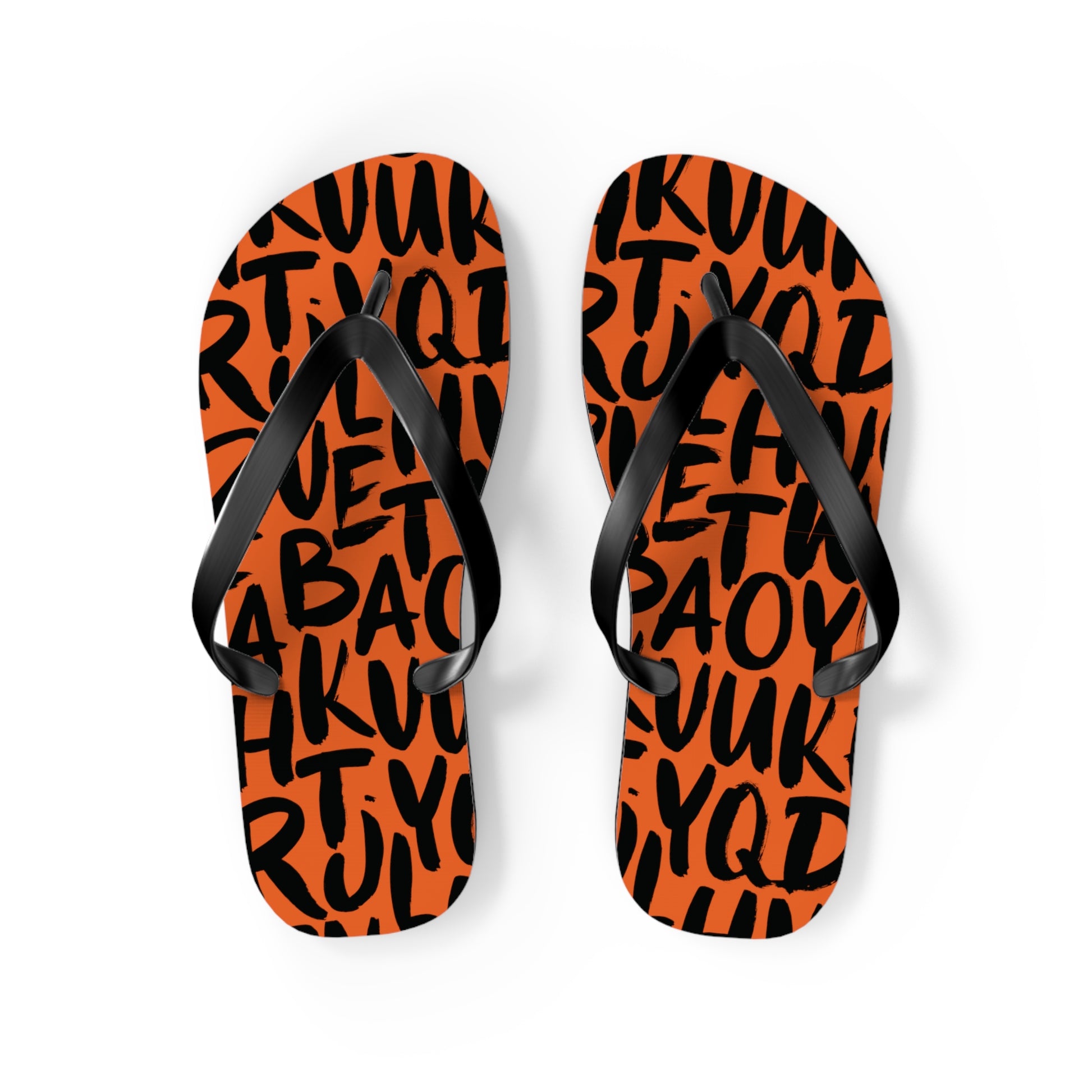 Introducing the Alphabet City Flip Flops, a vibrant tribute to NYC's iconic Alphabet City with bold black letters set against a striking bright orange background. These flip flops feature a 5/8" (15 mm) thick EVA sole with a textured bottom for superior traction and comfort. The 100% polyester suede sole cover provides a soft, premium feel, while the sleek black PVC strap adds a contemporary touch. Designed to capture the energetic essence and eclectic style of Alphabet City, these flip flops are perfect for those who want to step out with confidence and a splash of urban flair.
