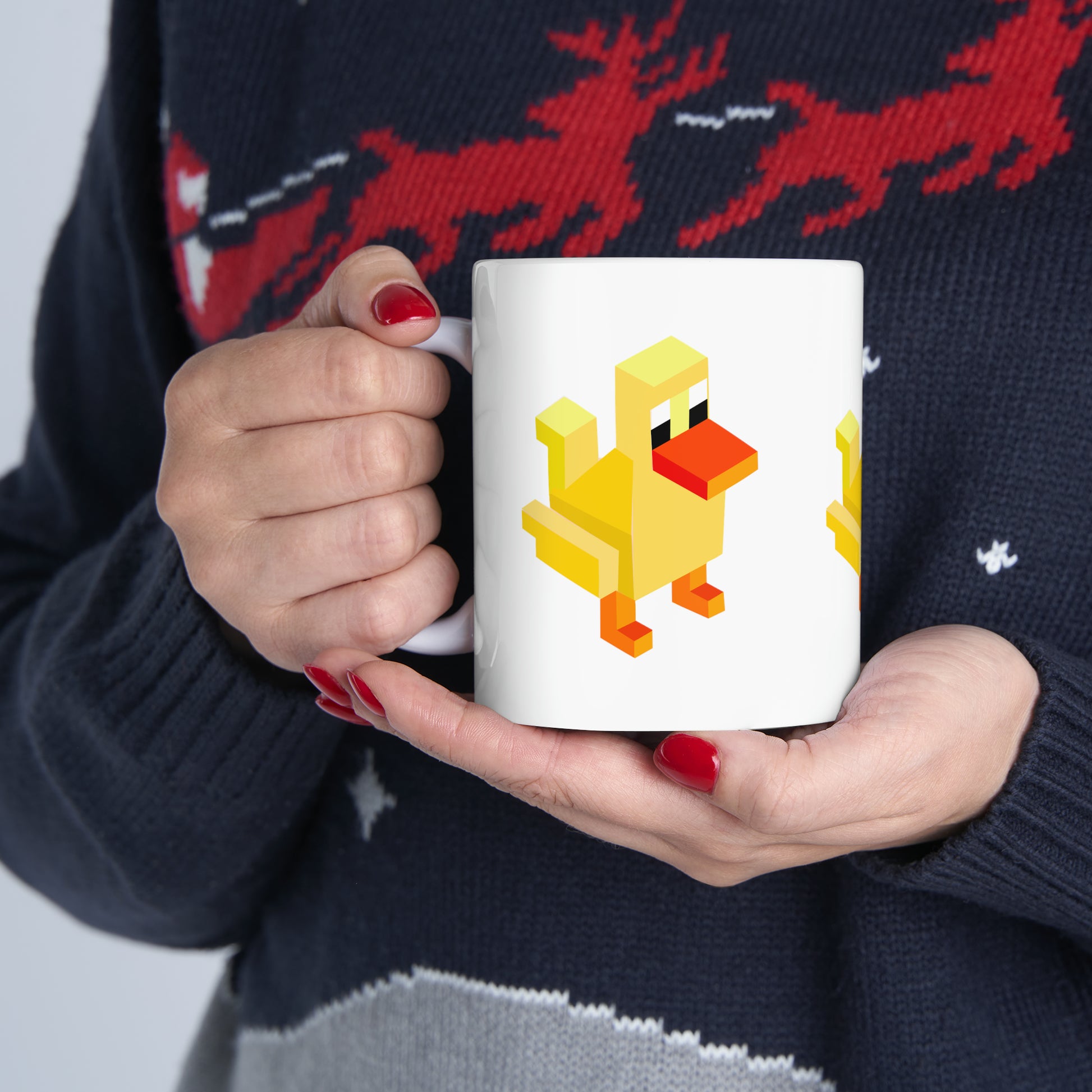 A playful mug to drink your coffee while working or gaming, or both. This colorful Arcade Duck mug is 11 oz and is made with durable white ceramic.