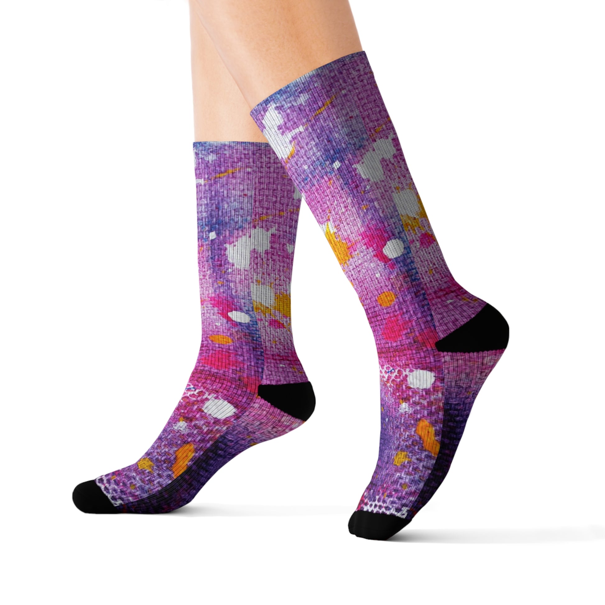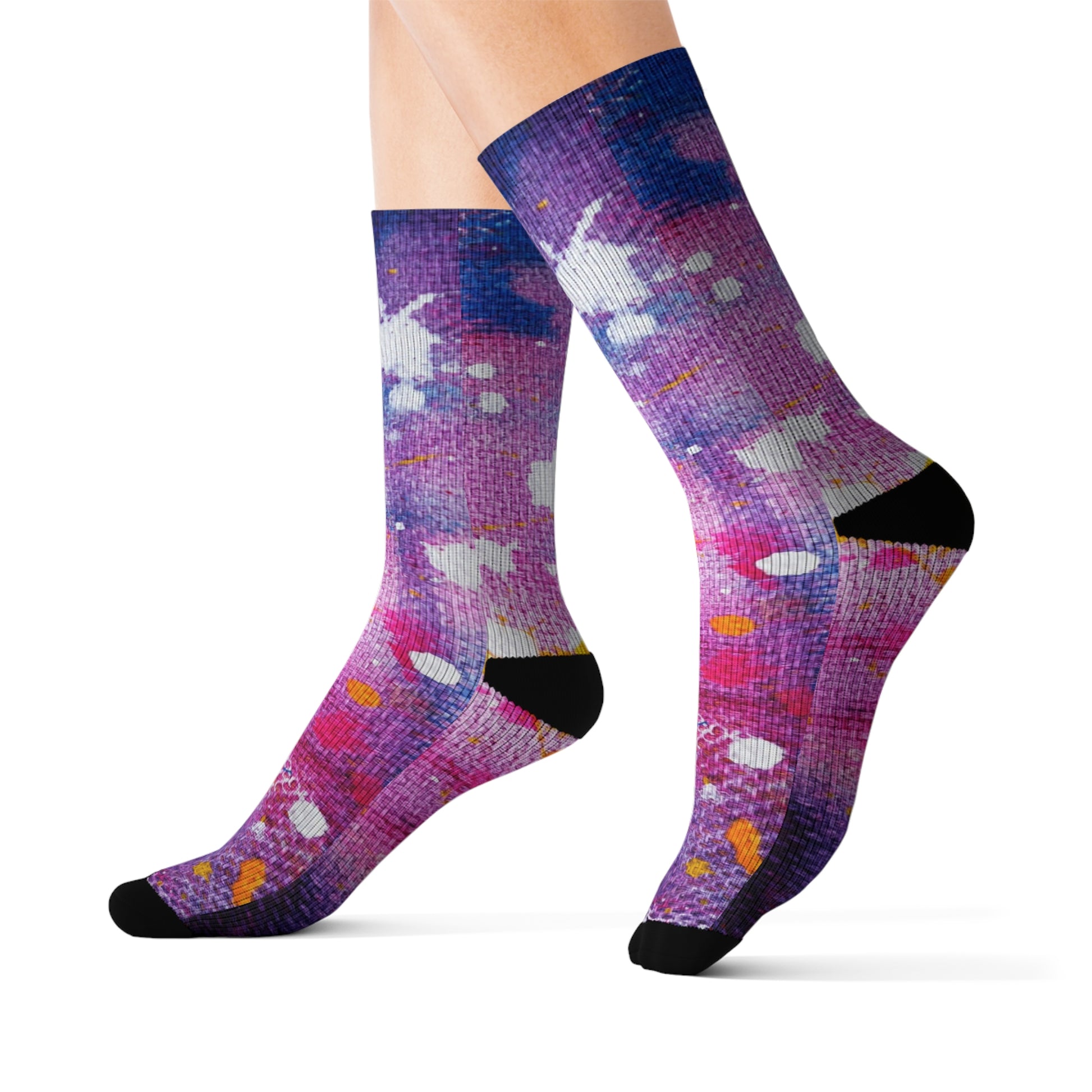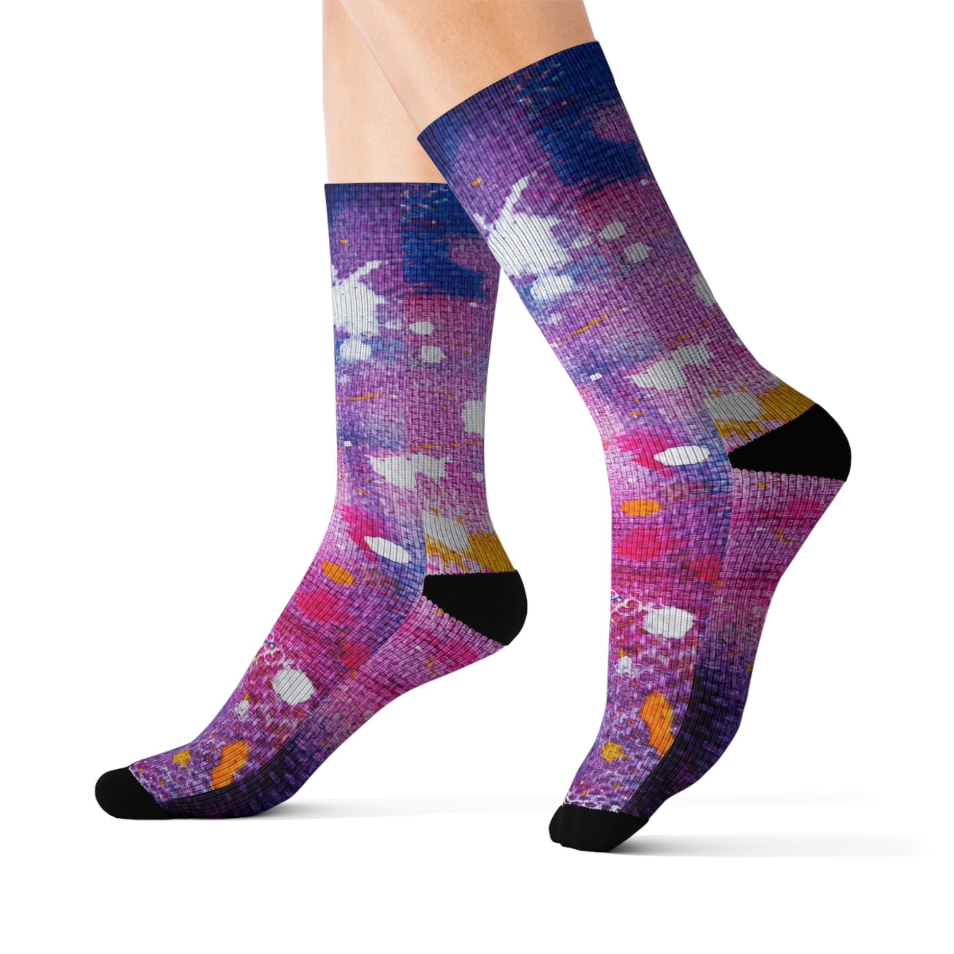 Elevate your wardrobe with a touch of artistic flair! Our artsy abstract pattern socks are designed for those who love to stand out. Made from a luxurious blend of 95% polyester and 5% spandex, these socks provide a comfortable and flexible fit. The unique abstract design brings a splash of creativity and sophistication to your outfit, making every step a masterpiece. Perfect for the art lover and the style enthusiast, these socks are your canvas to showcase individuality and boldness. Step into the world of abstract art and wear your creativity with pride!
