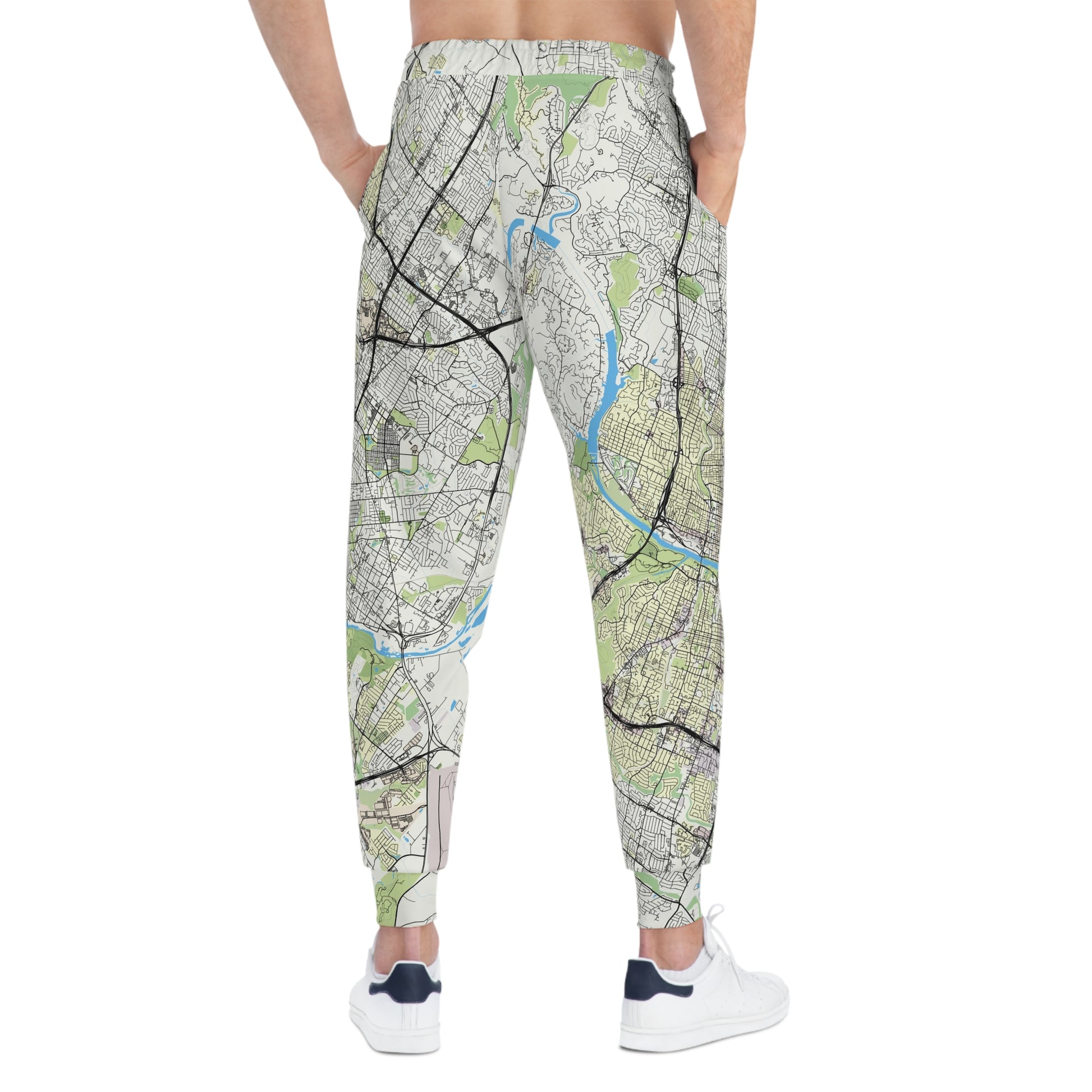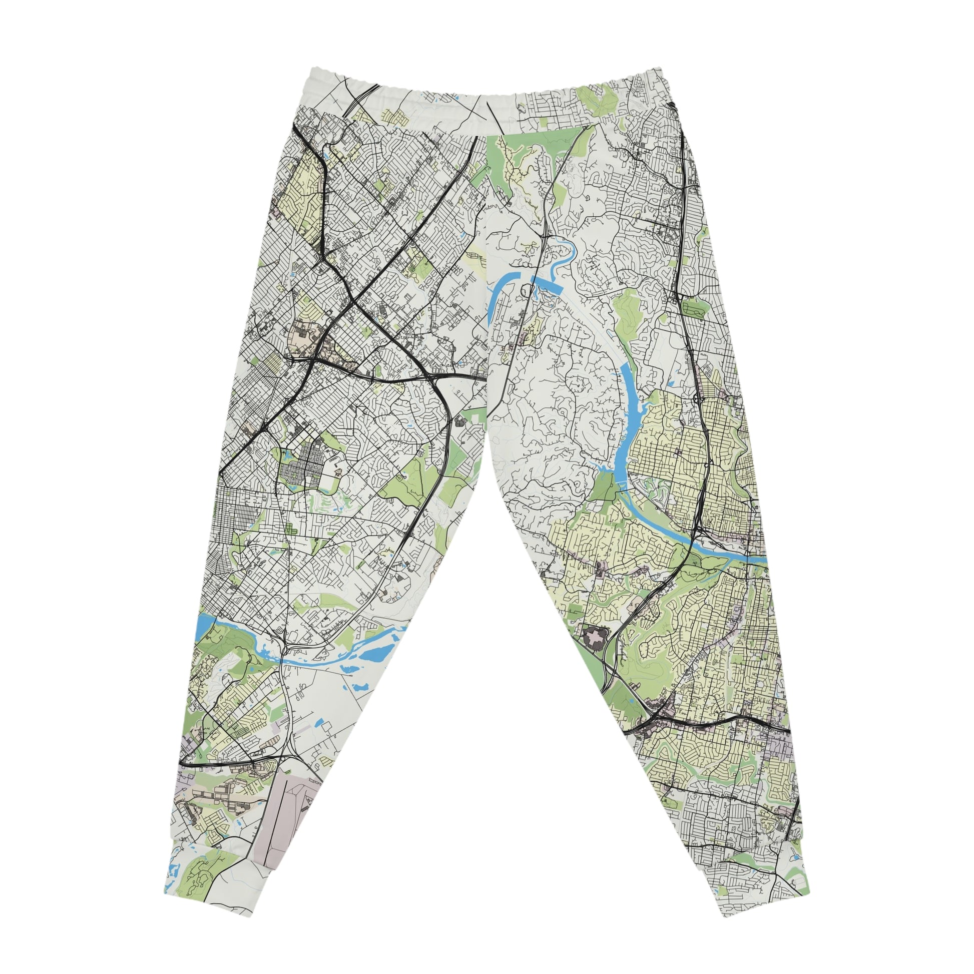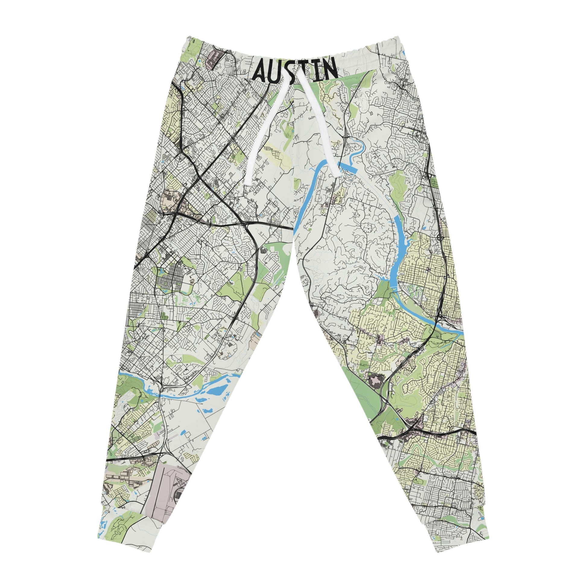 These Austin, Texas map joggers provide a casual and comfortable vibe, perfect for leisure or light exercise. Ideal for those who love Austin or want a unique twist on activewear. Great for lounging at home or running errands. Relevant for travelers, Texas enthusiasts, and those who appreciate unique map designs. Perfect for casual wear, travel days, lounging at home, or light workouts.