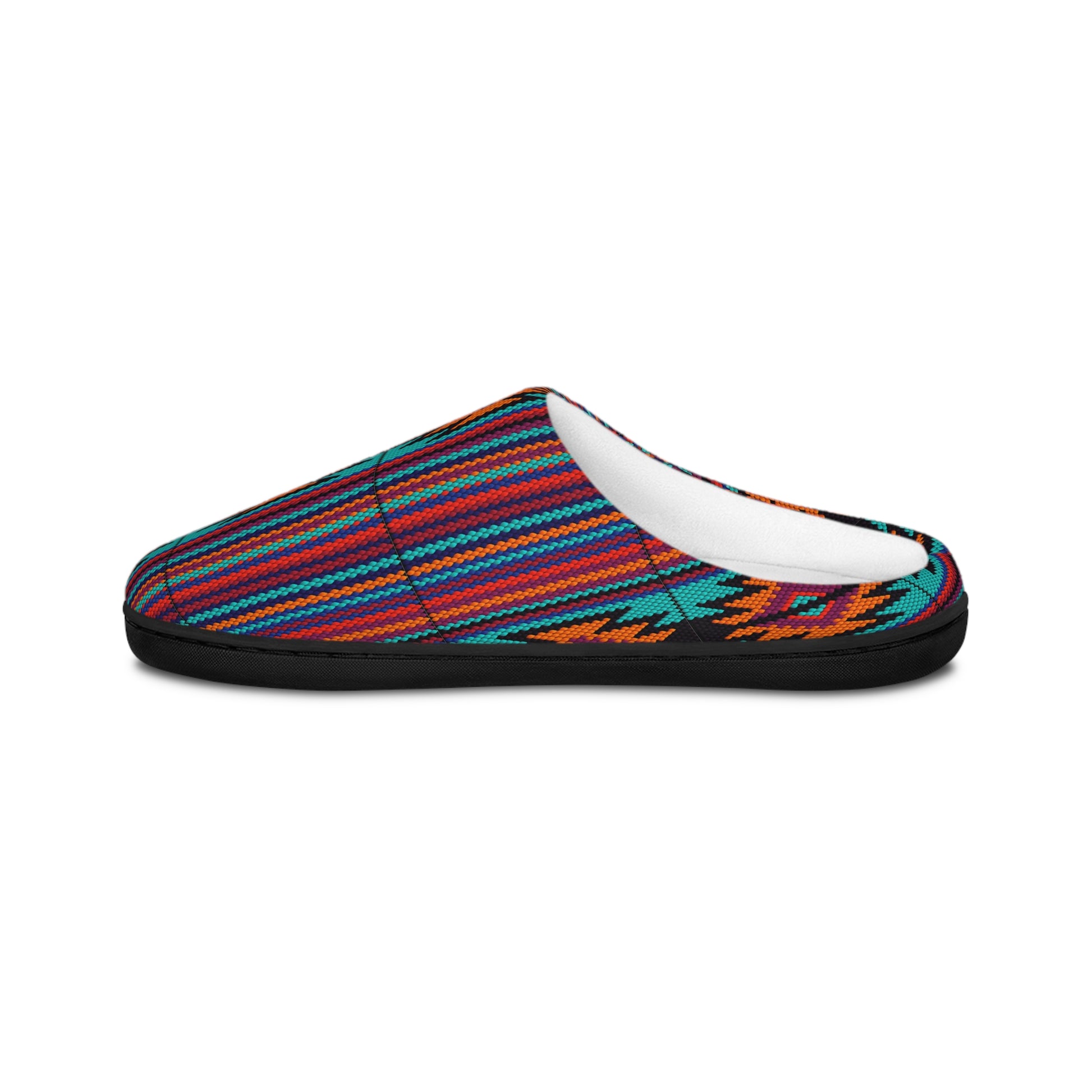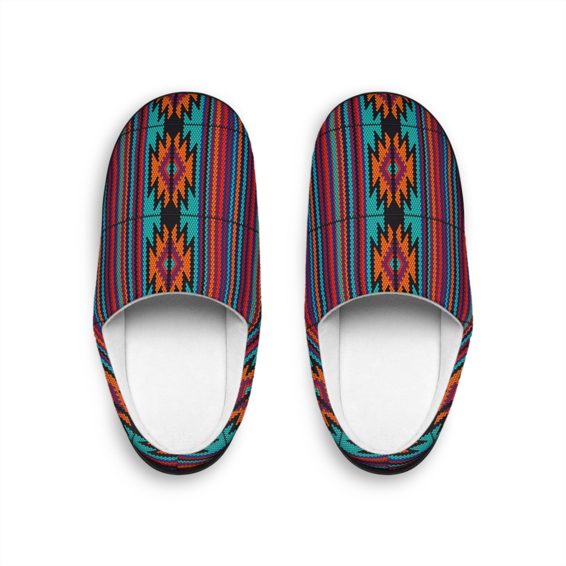 These Azteca Pattern Women's Slippers are cozy and stylish, perfect for lounging around the house. The flannel fleece fabric provides comfort and warmth, while the anti-slip textured outsole ensures safety on slick floors. Ideal for women looking for a fashionable and practical indoor footwear option.