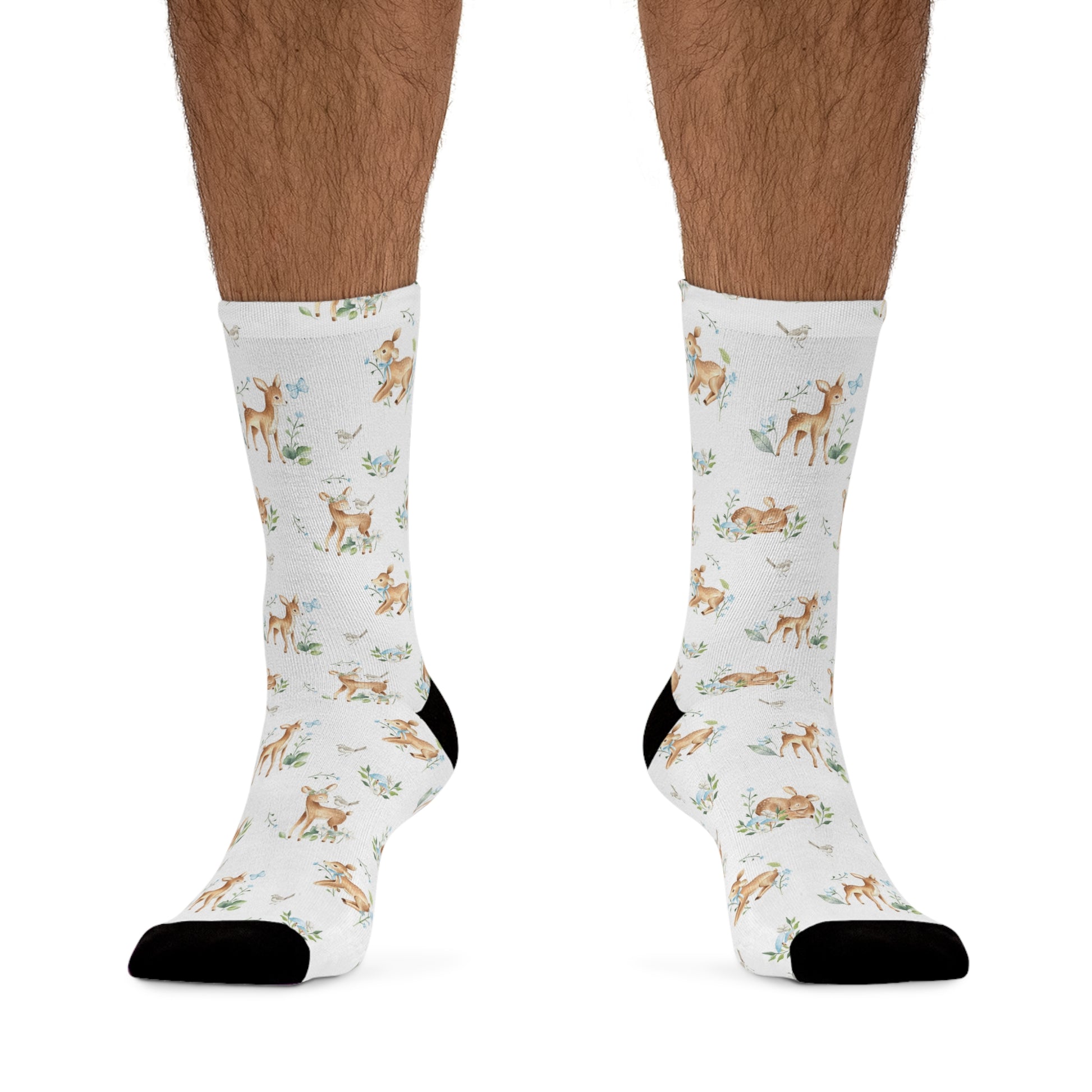 One size fits all, from Women’s size 5 to Men’s size 12, so everyone can enjoy a bit of forest charm. Whether you’re relaxing at home or exploring the great outdoors, these socks are the perfect companion. Embrace your wild side with Bambi Crew Socks! 🌳🦋