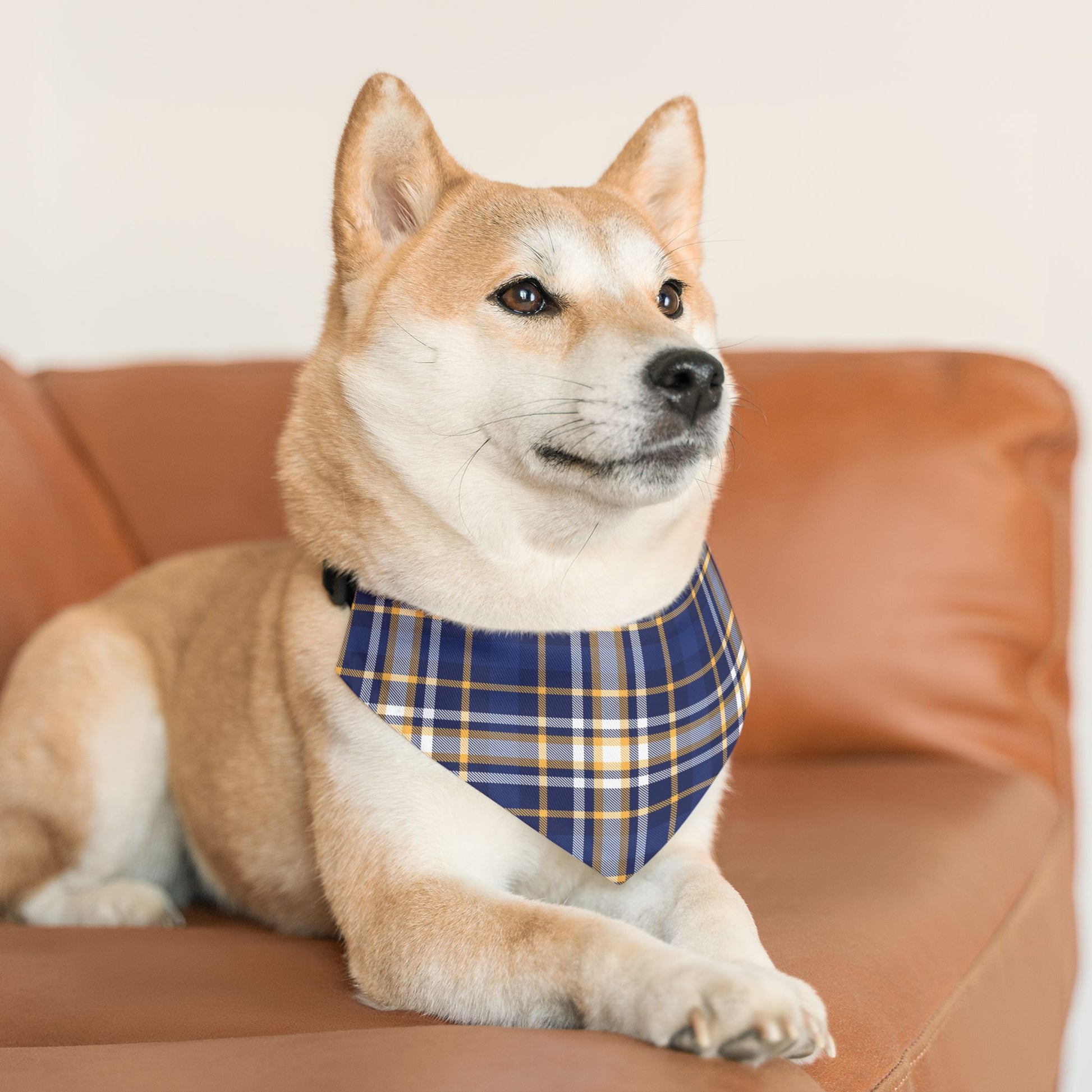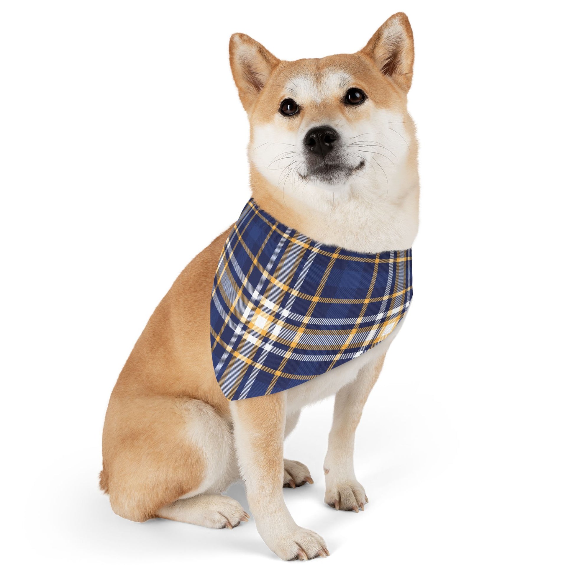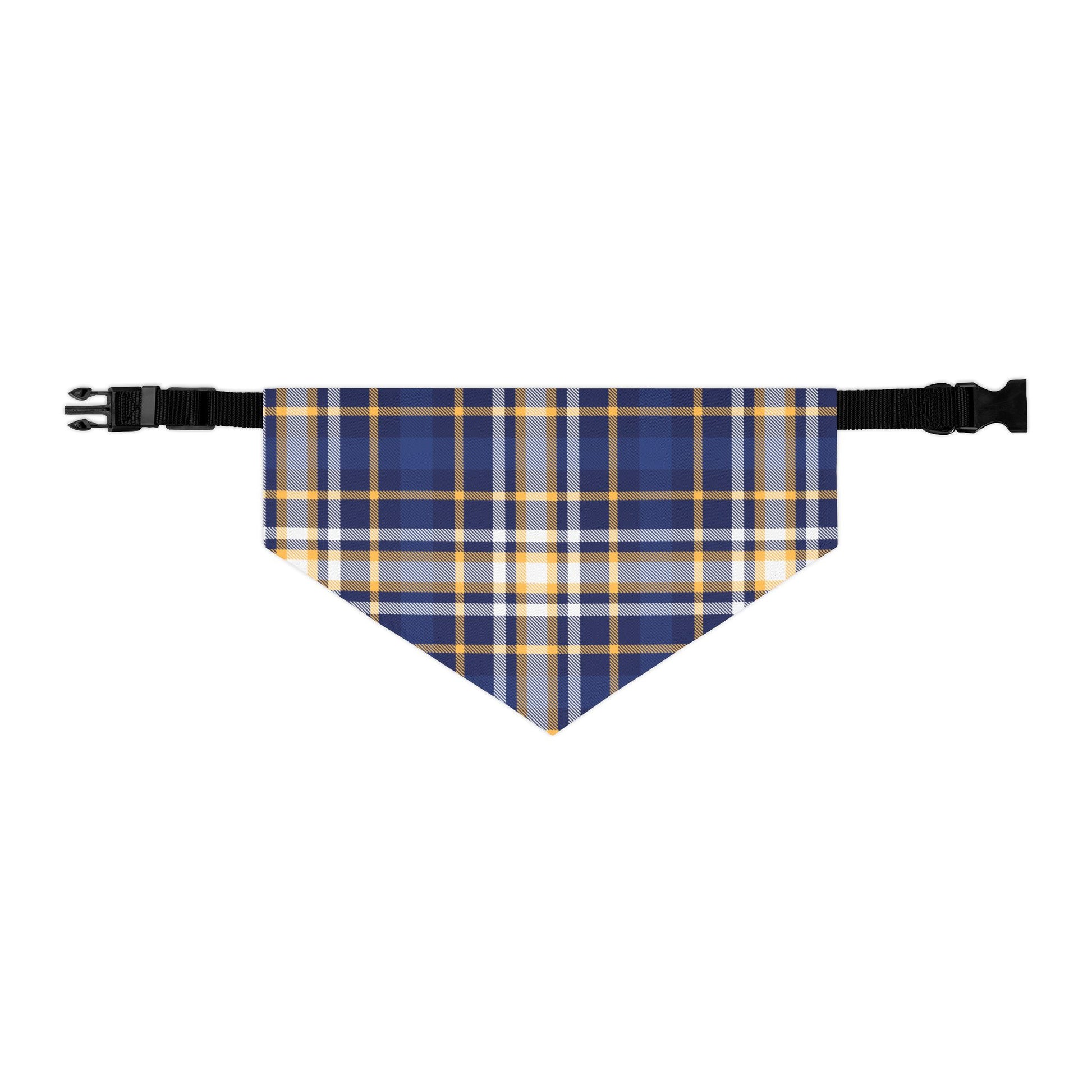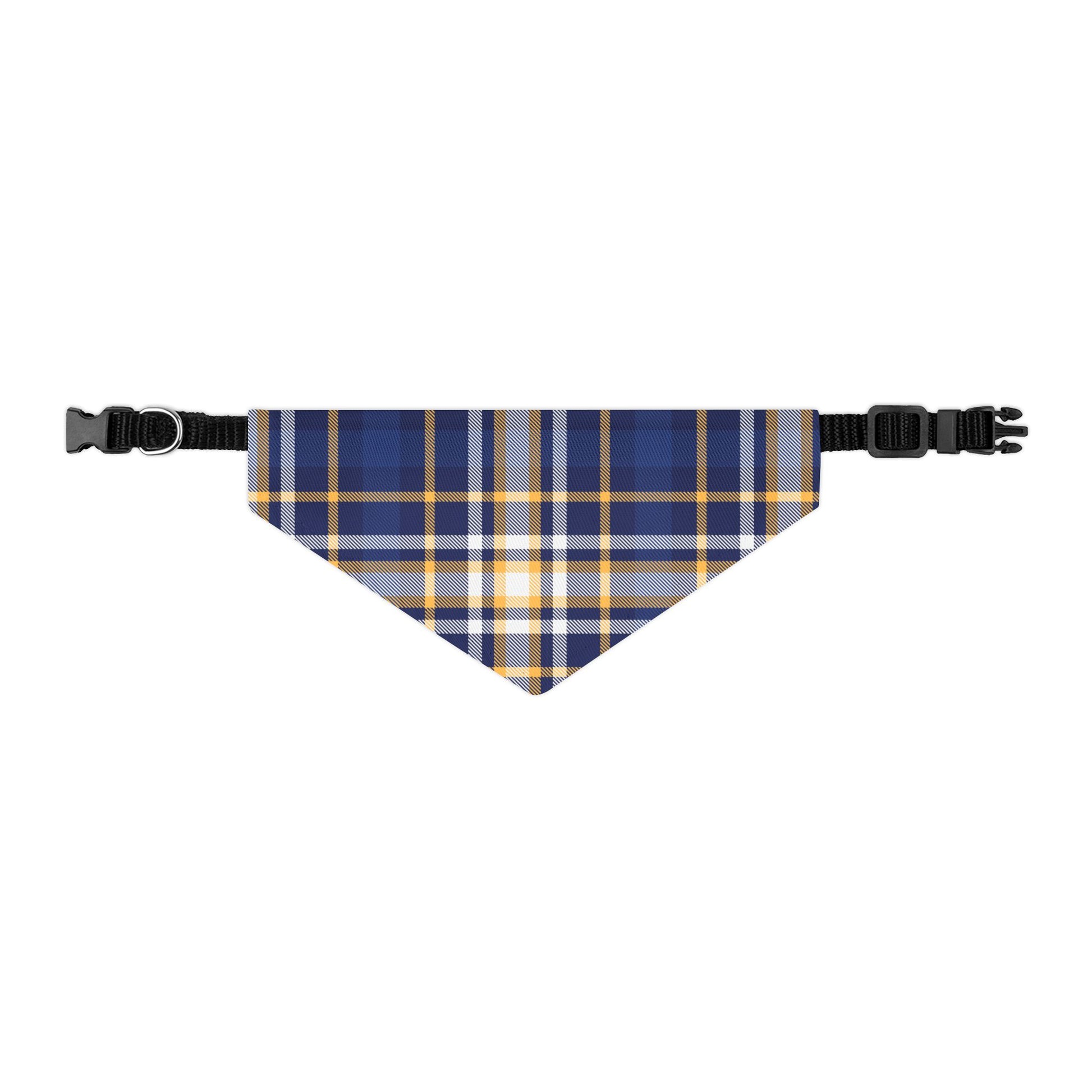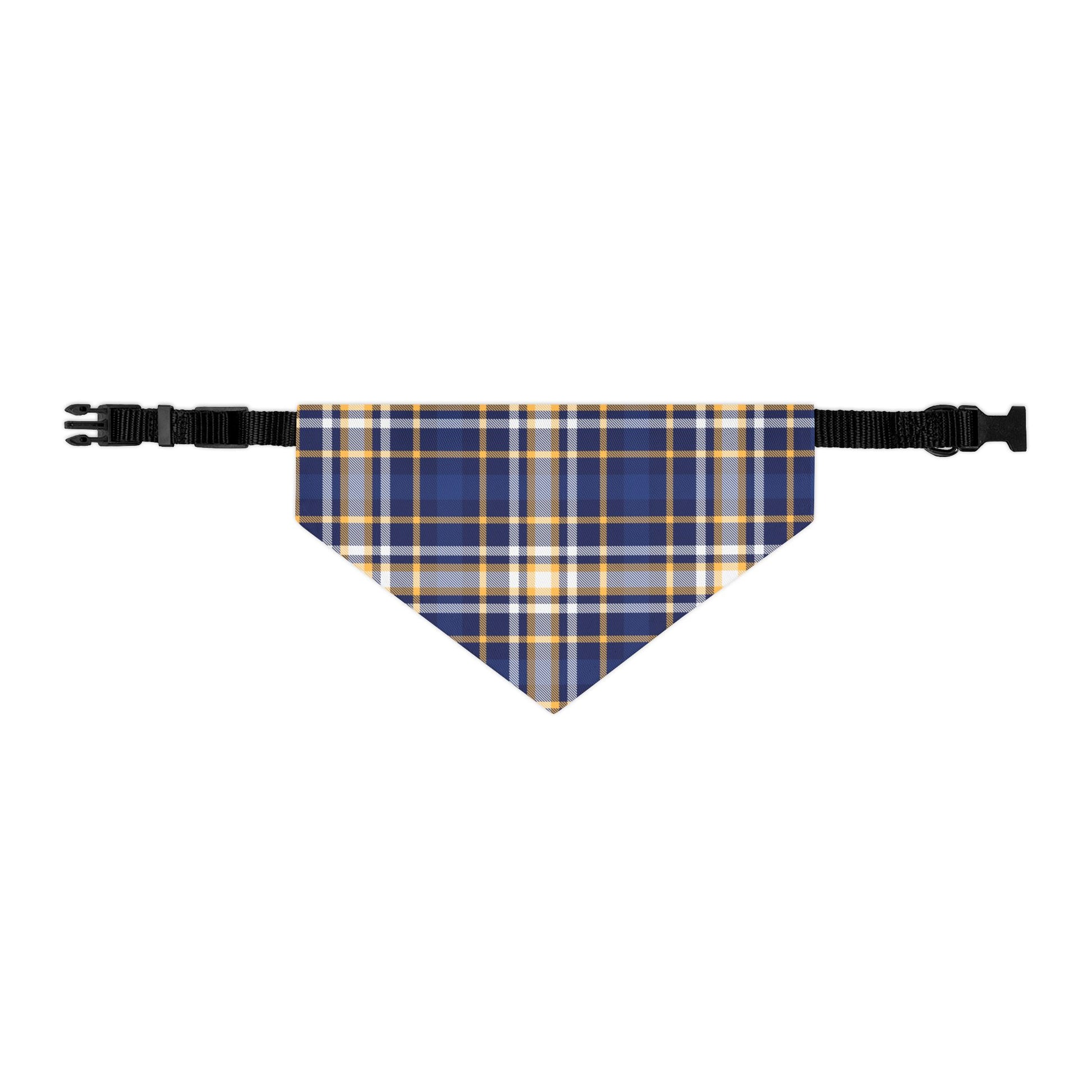 This Pet Bandana features a classic Blue Plaid Pattern, giving off a cozy and timeless vibe. Perfect for pet owners looking to add a stylish accessory to their furry friend's wardrobe, especially during the holiday season or for special occasions.