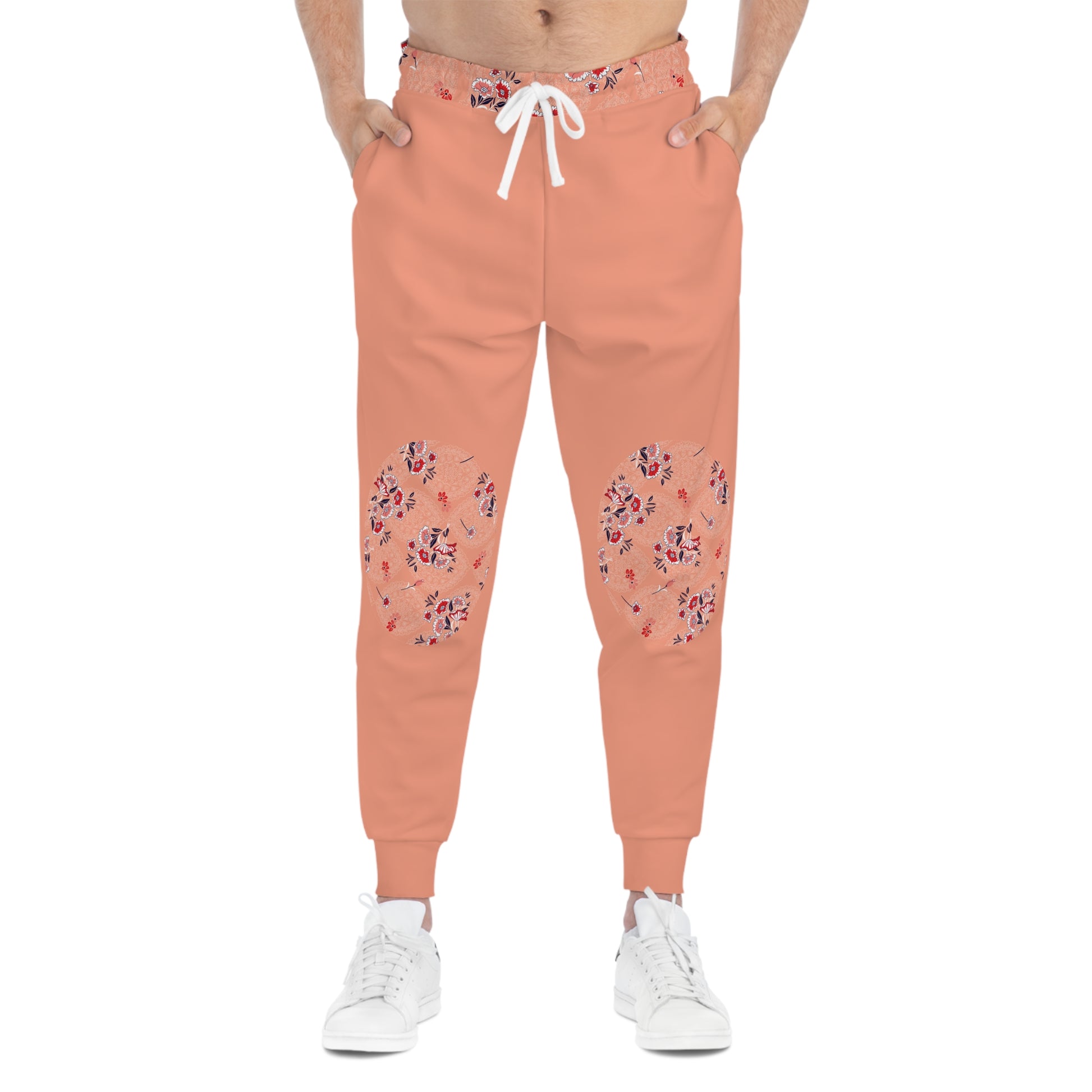 Stay cozy and chic with these unisex lightweight joggers, featuring a soft blush tone paired with delicate floral knee patches for a subtle yet stylish twist. Made from breathable, ultra-soft fabric, these joggers blend comfort and elegance effortlessly. Whether you're lounging at home, running errands, or adding a feminine flair to your streetwear look, the Blush Bloom Joggers bring a perfect balance of charm and relaxation to your everyday wardrobe.