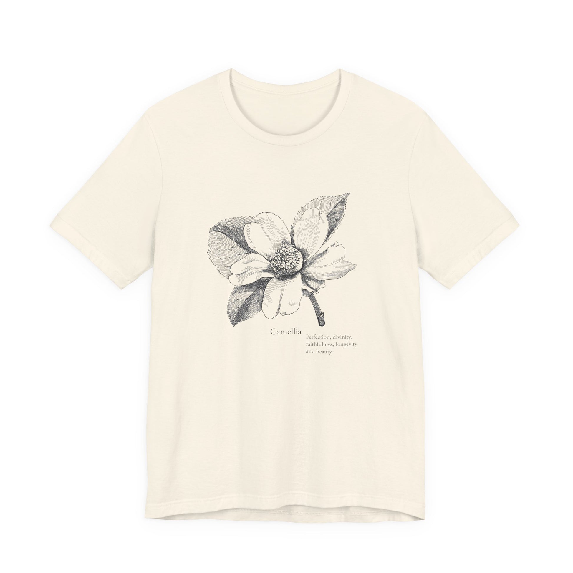 Camellia flowers are symbol of beauty, longevity, heroism, and love around the globe. Our Camellia T-shirt is just a little homage to this beautiful flower. Made with 100% soft cotton is easy to layer, and breathable, this T-shirt is perfect for active and leisure wear.