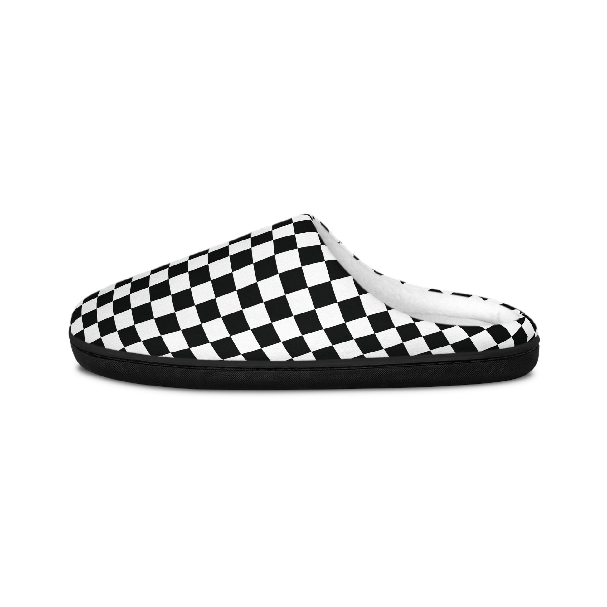 Step into effortless style and unmatched comfort with the Checkmate Comfort Slippers. Featuring a bold black-and-white checkered design, these slippers bring a retro-cool edge to your everyday lounging. Made from 100% polyester flannel fleece fabric, they offer a plush, ultra-soft feel while ensuring lasting durability. The flexible rubber outsole provides excellent grip and anti-slip support, making them perfect for cozy indoor wear. Designed for convenience, the removable insole allows for easy cleaning and quick drying. Whether you're unwinding at home or making a statement with your off-duty style, these slippers are your perfect go-to for laid-back luxury.