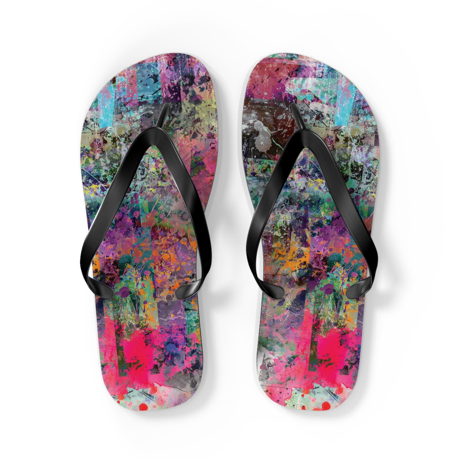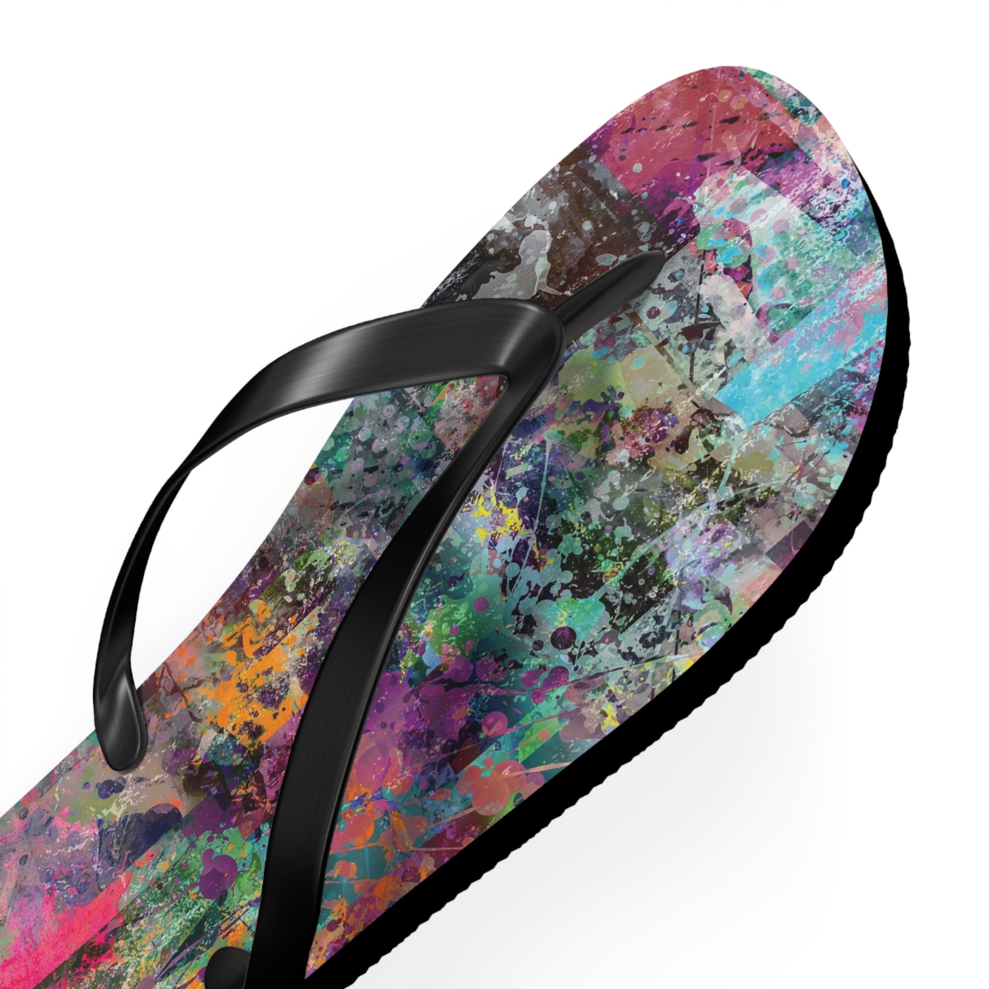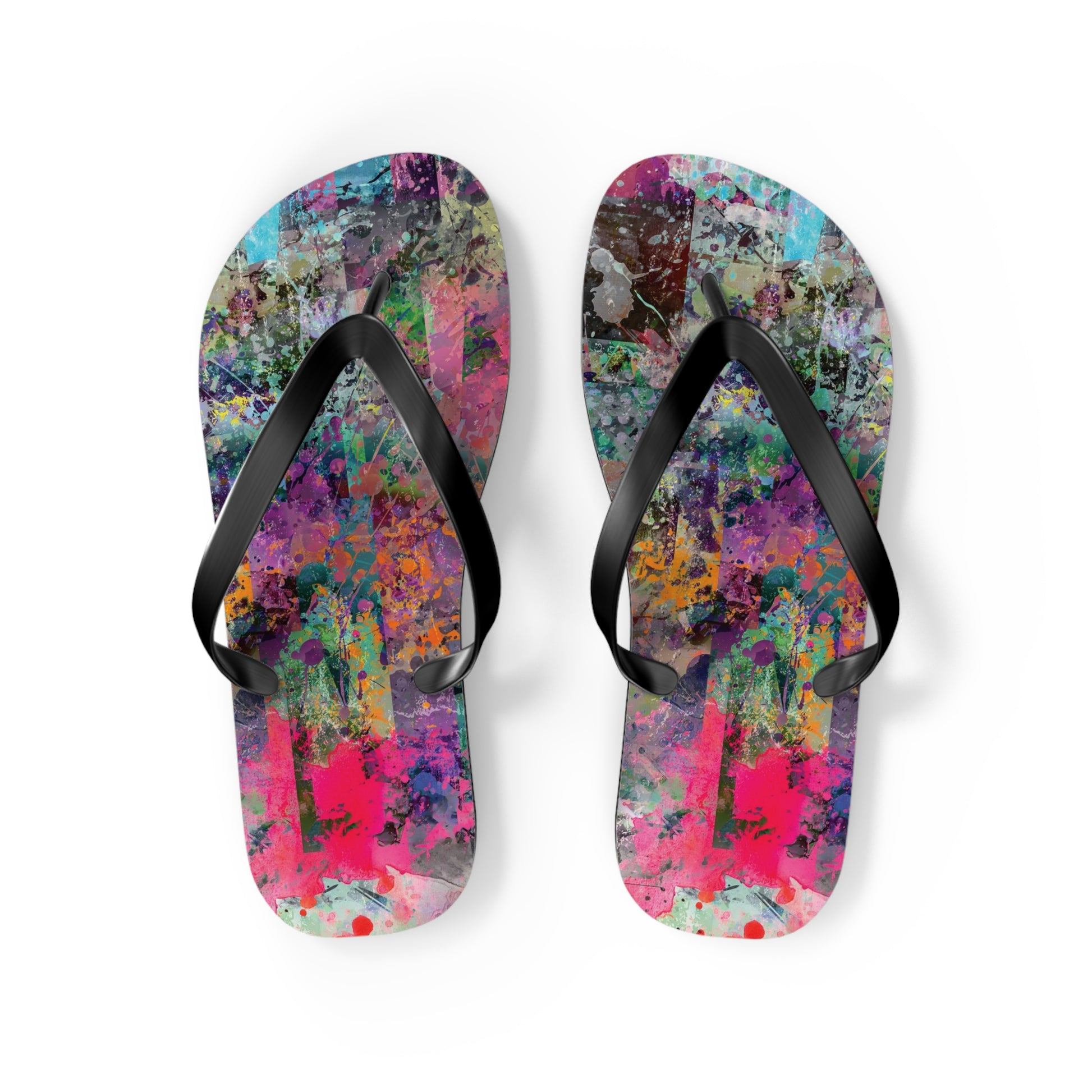 Introducing the Chelsea Flip Flops, where vibrant abstract art meets unparalleled comfort. These flip flops are adorned with a striking, colorful abstract artwork pattern that pays homage to the dynamic art galleries of NYC’s Chelsea neighborhood. Featuring a 5/8" (15 mm) thick EVA sole with a textured bottom, they provide excellent grip and durability for all-day wear. The 100% polyester suede sole cover adds a luxurious touch, while the bold black PVC strap ensures a sleek, modern finish. Perfect for art enthusiasts and city explorers alike, the Chelsea Flip Flops bring a splash of creativity to every step, celebrating the rich artistic spirit of one of New York’s most renowned art districts.