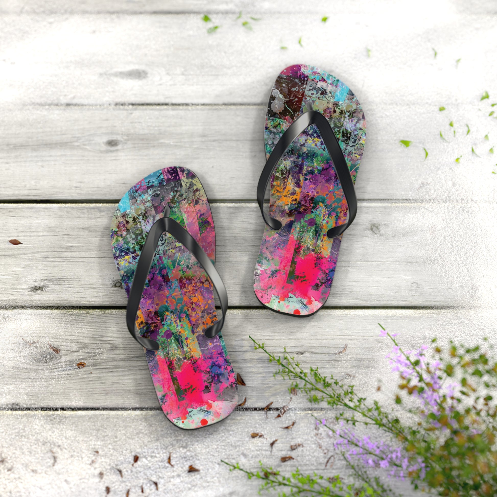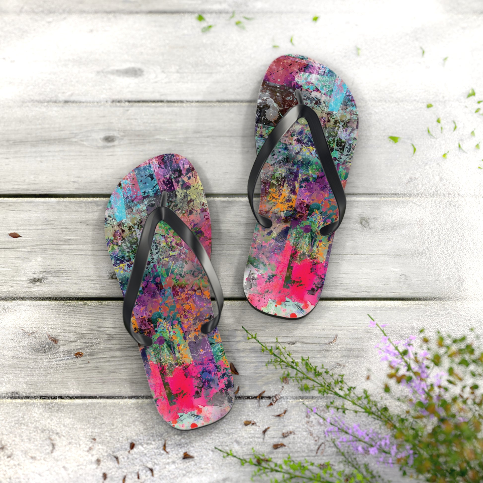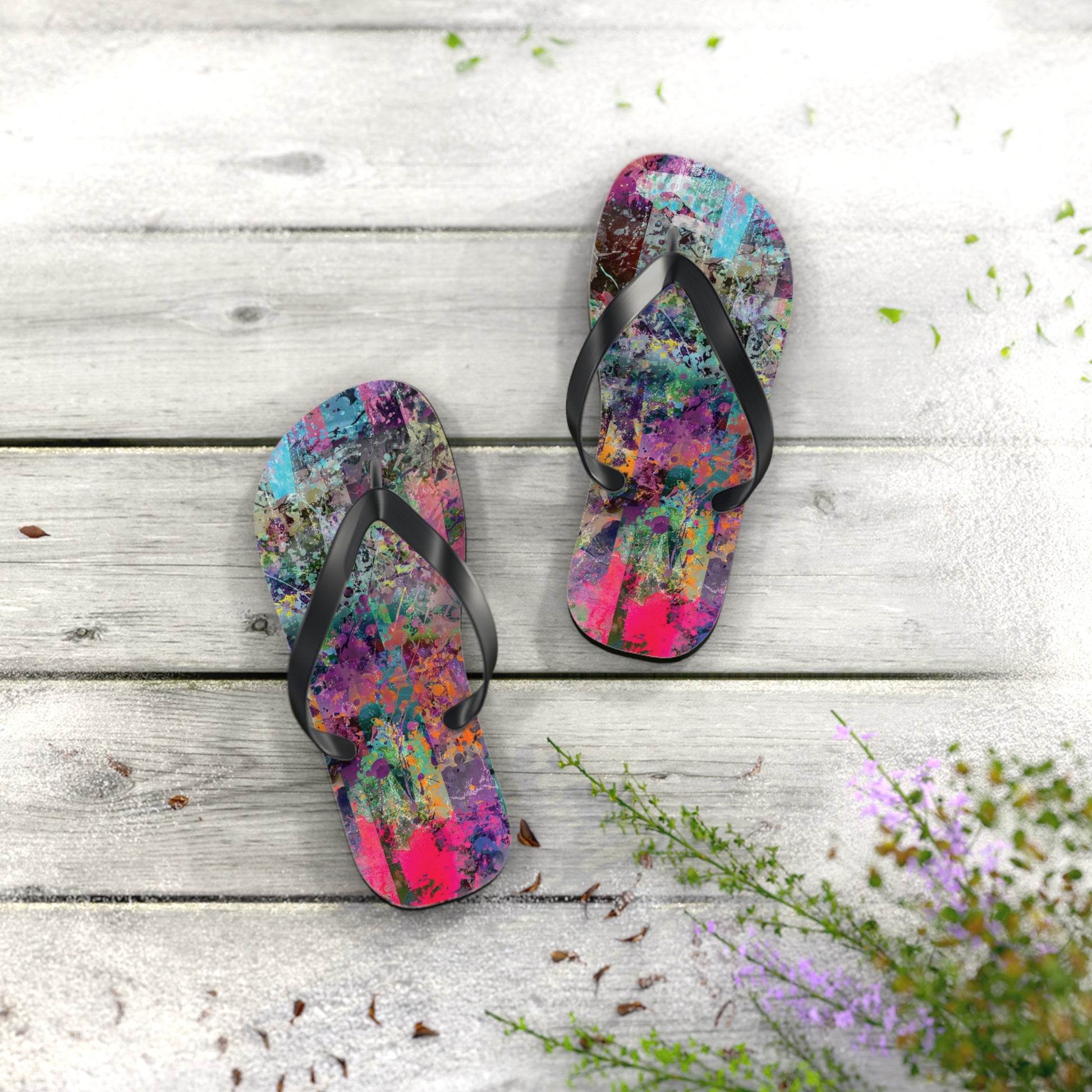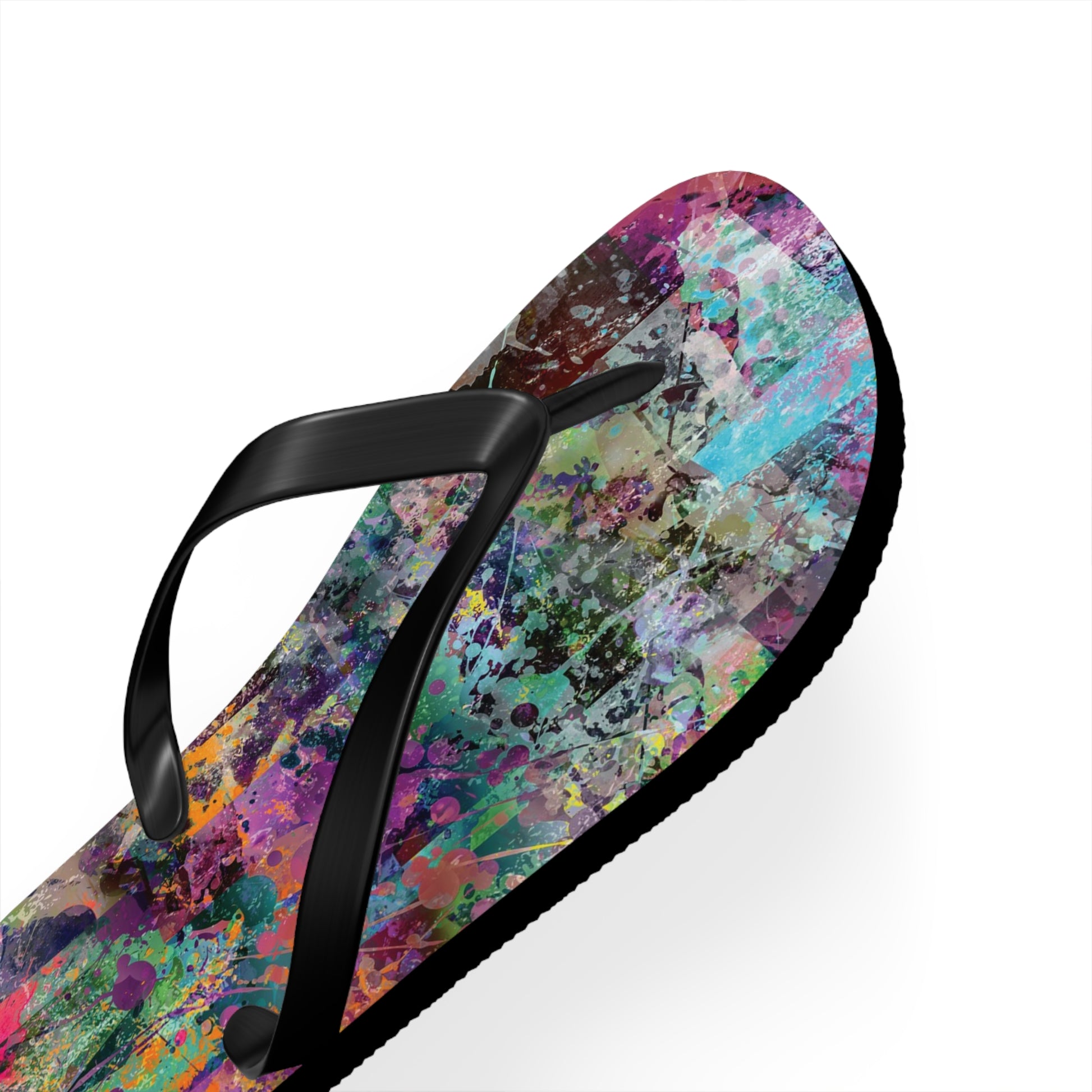 Introducing the Chelsea Flip Flops, where vibrant abstract art meets unparalleled comfort. These flip flops are adorned with a striking, colorful abstract artwork pattern that pays homage to the dynamic art galleries of NYC’s Chelsea neighborhood. Featuring a 5/8" (15 mm) thick EVA sole with a textured bottom, they provide excellent grip and durability for all-day wear. The 100% polyester suede sole cover adds a luxurious touch, while the bold black PVC strap ensures a sleek, modern finish. Perfect for art enthusiasts and city explorers alike, the Chelsea Flip Flops bring a splash of creativity to every step, celebrating the rich artistic spirit of one of New York’s most renowned art districts.