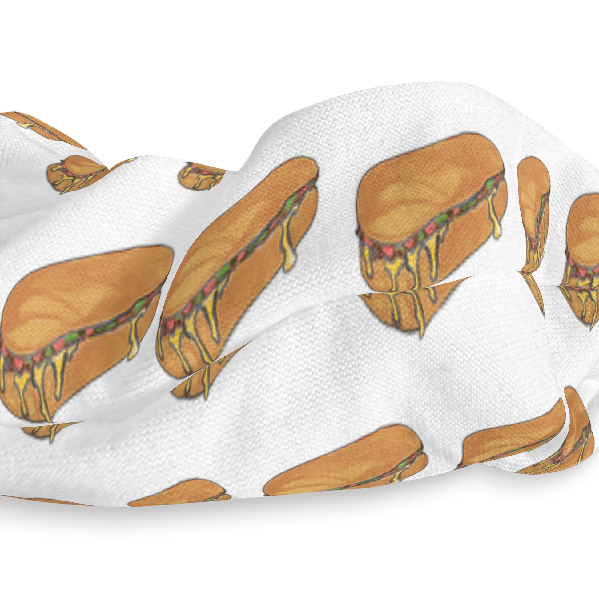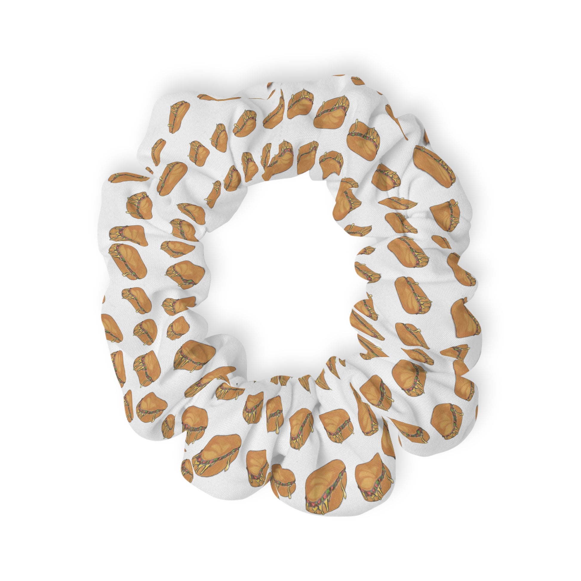 Introducing The Chopped Cheese Scrunchie from our New Yorker collection! This soft and stretchy scrunchie is designed with added elastic for extra support, making it perfect for all hair types. The original hand-drawn design captures the essence of the New York classic, and adds a cool and trendy touch to any outfit. Made from 100% polyester jersey knit fabric, this scrunchie is not only stylish but also durable. Whether you're running errands or hitting the town, The Chopped Cheese Scrunchie is the perfect accessory to elevate your look.
