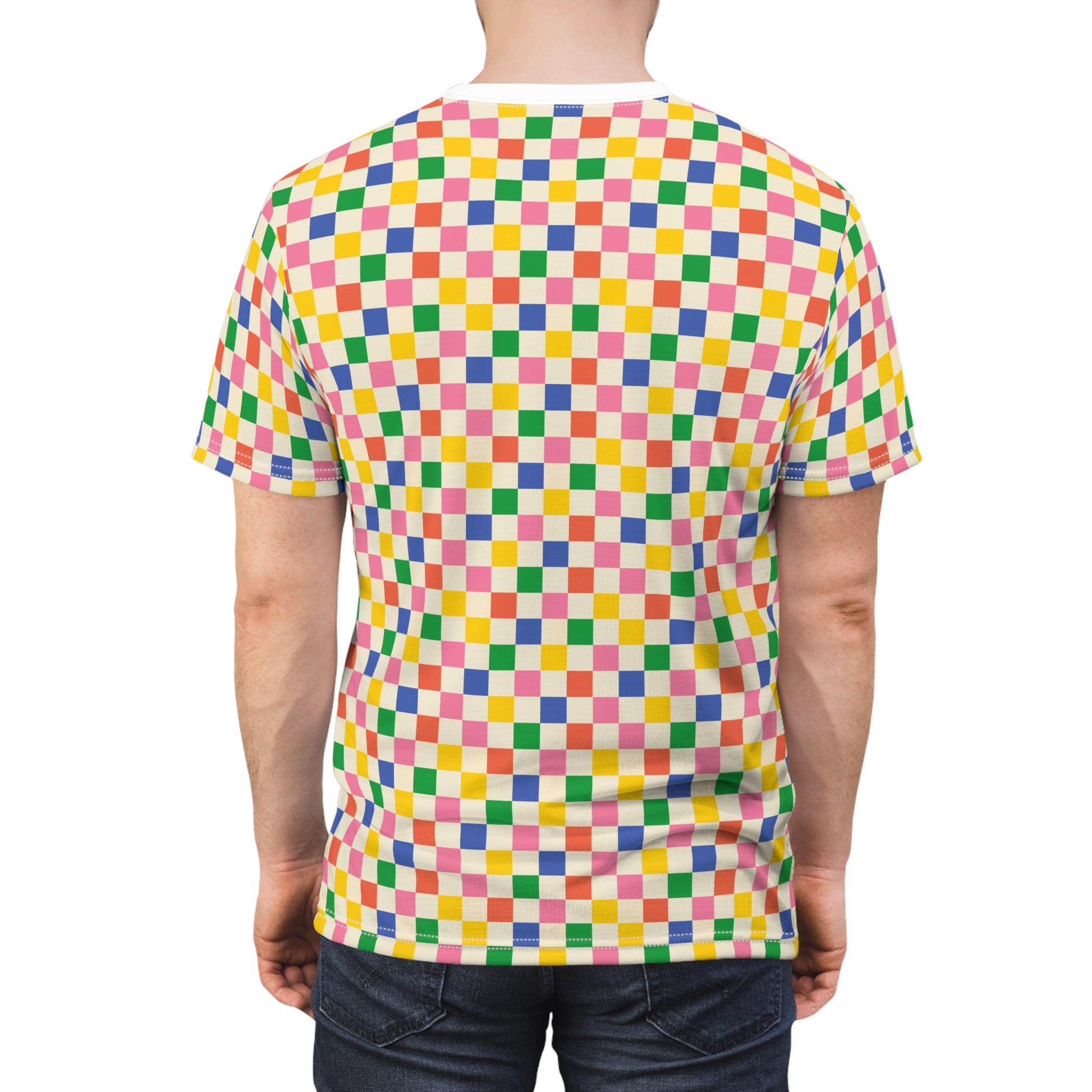 Make a statement with the Colored Squares T-Shirt, featuring a lively, geometric checkerboard pattern bursting with vibrant hues. This bold, eye-catching design is perfect for anyone who loves unique, artistic fashion. The breathable, lightweight fabric ensures all-day comfort, making it ideal for casual outings, streetwear styling, or festival fashion. Whether you’re a fan of colorful aesthetics, retro-inspired designs, or just want to stand out, this geometric print tee is the perfect addition to your wardrobe.