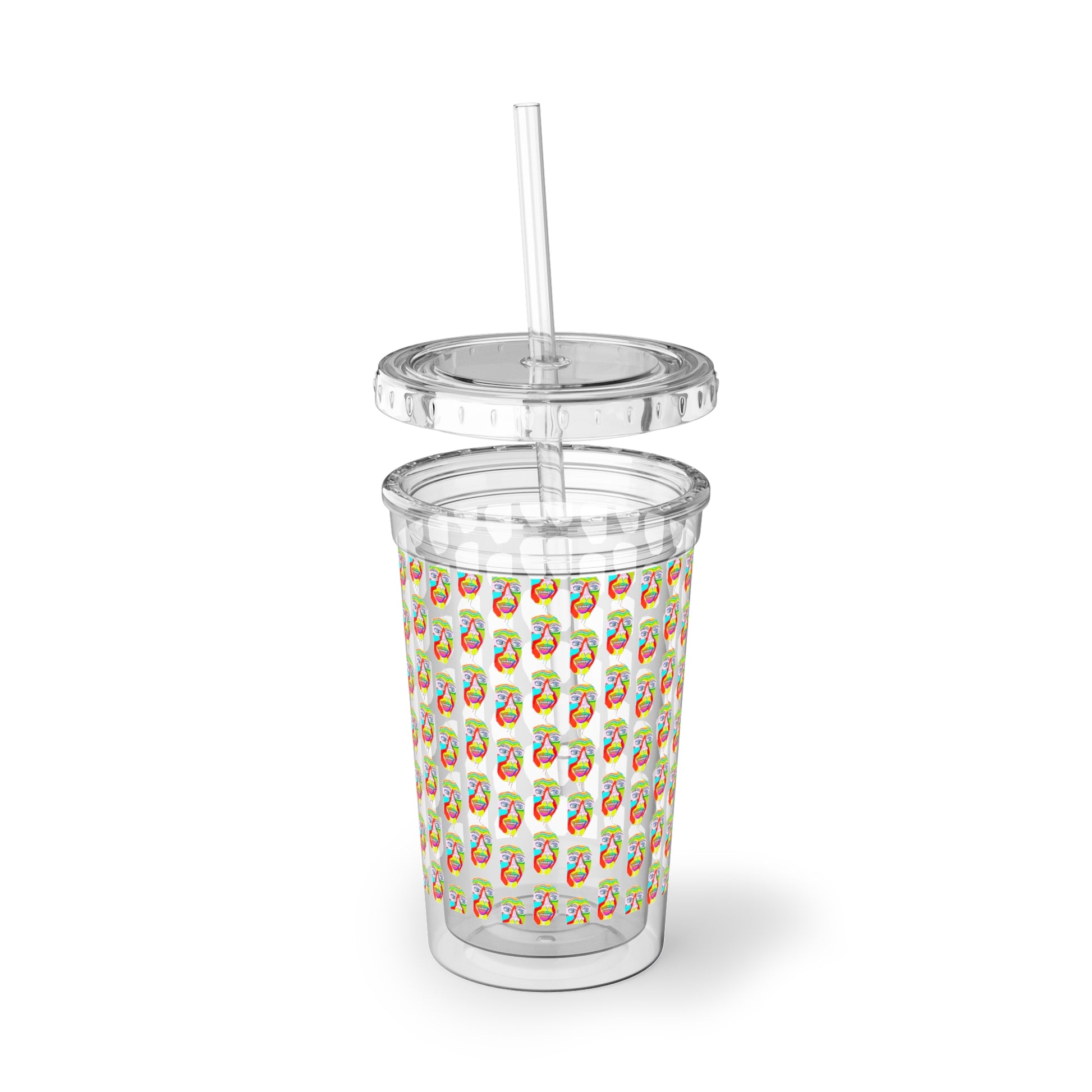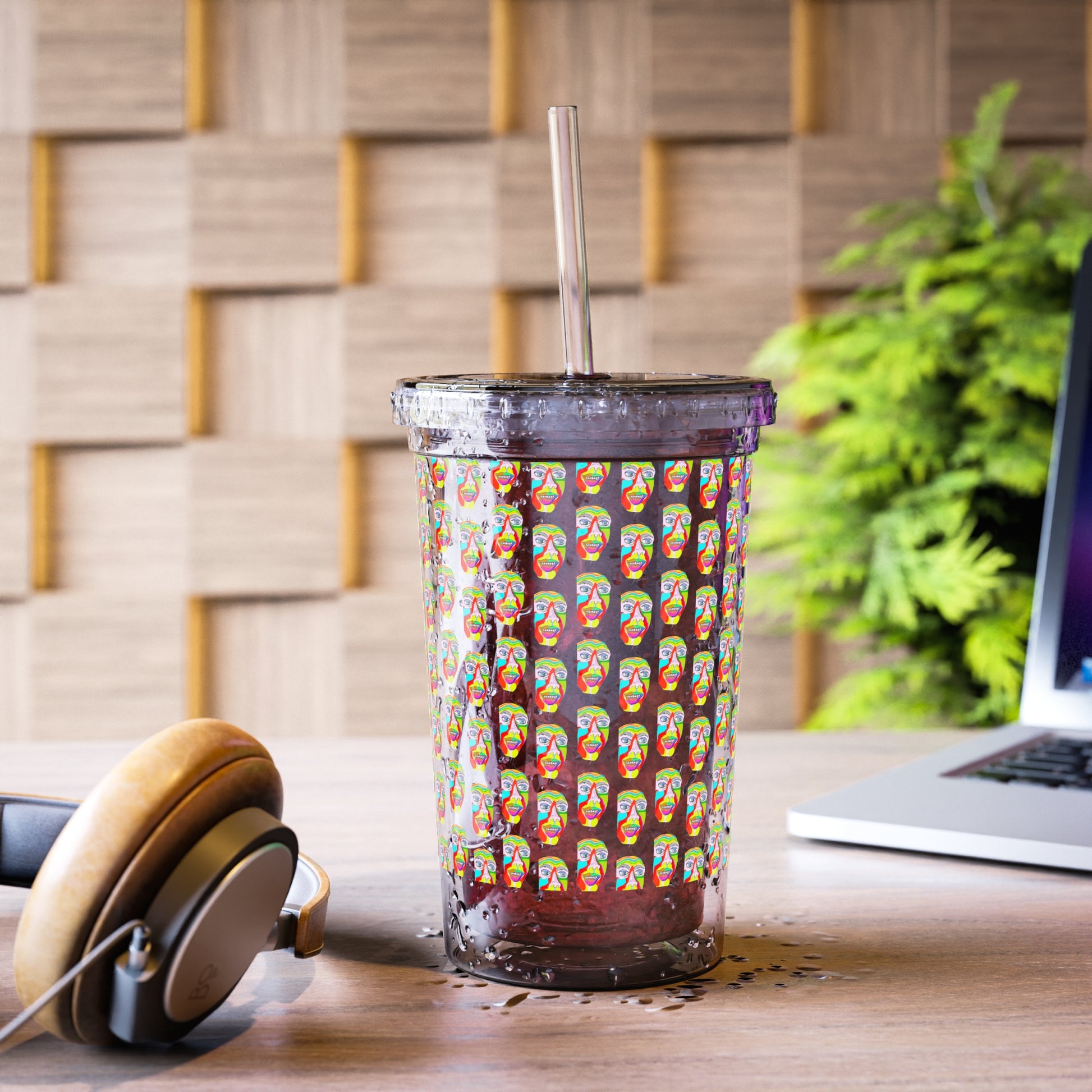 Introducing the Colorfest double-wall insulated acrylic cup from our Aggressive collection! This 16oz (0.473 l) cup is perfect for grabbing your favorite beverages on the go. The double-wall insulation will keep cold drinks cold for 24 hours and hot drinks hot for 12 hours, making it ideal for any weather. Plus, the BPA-free plastic lid and straw ensure safe and worry-free sipping. With its cool, artsy, urban design, this unique cup will be your new favorite go-to for staying hydrated throughout the day.