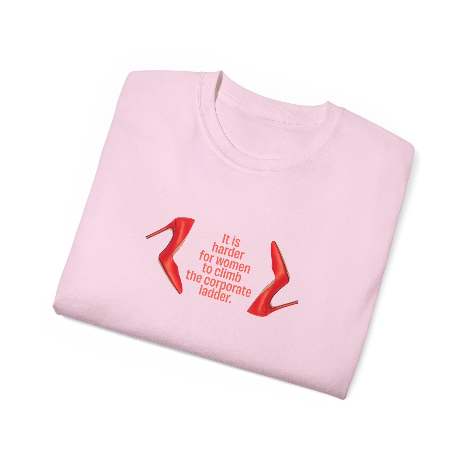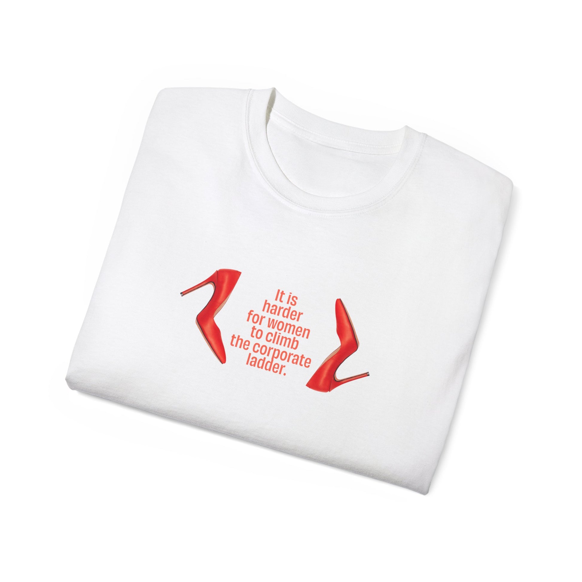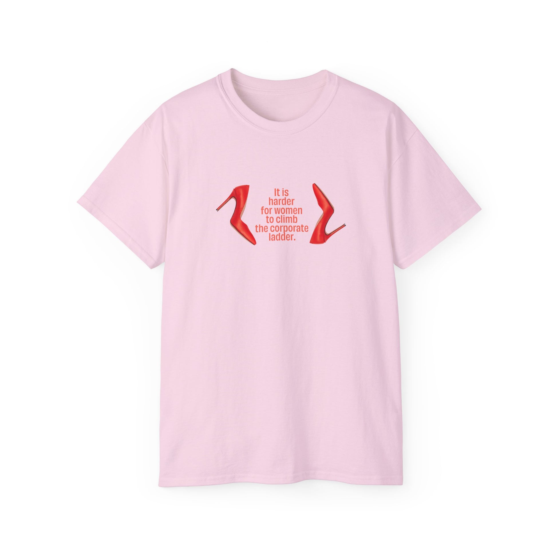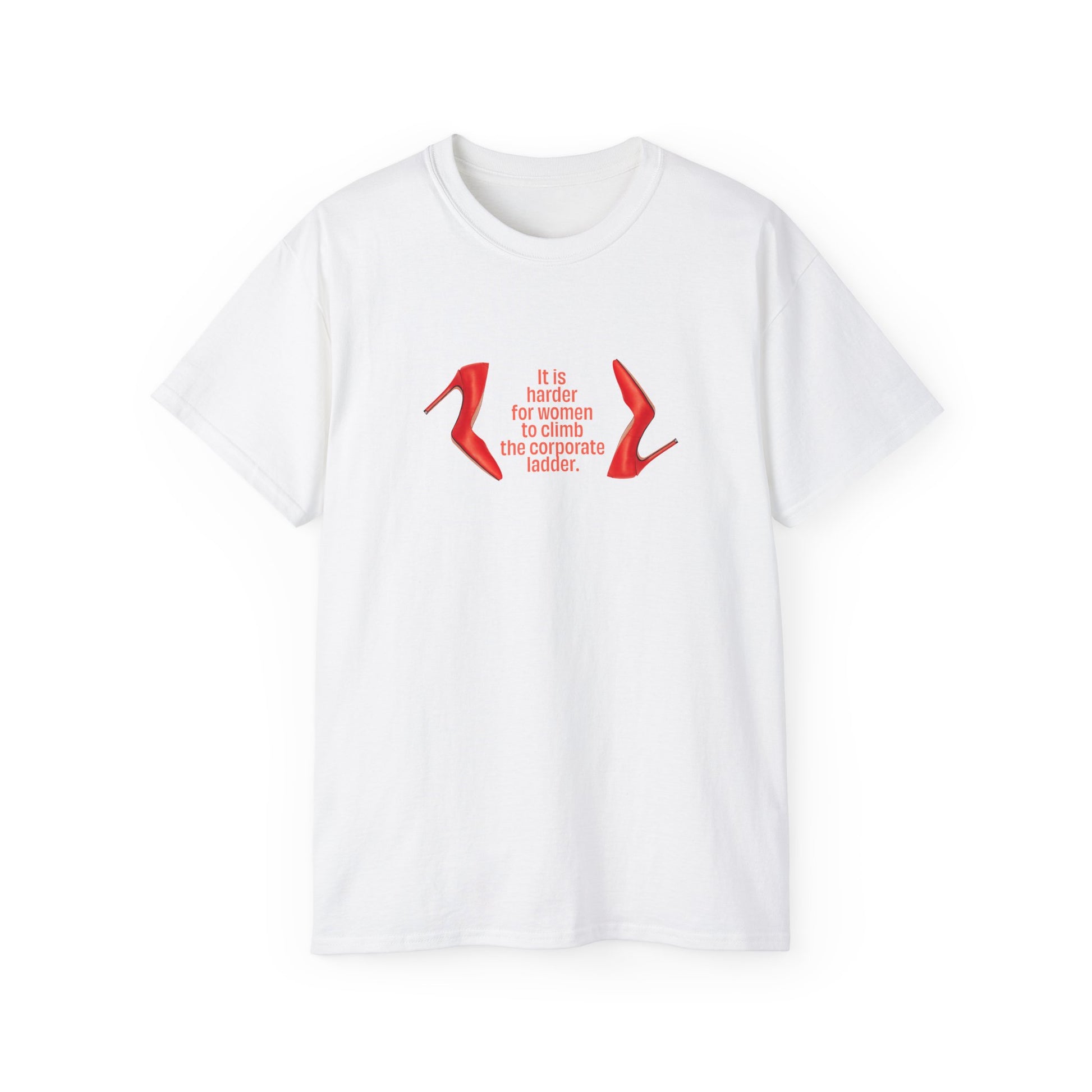It is harder for women to climb the corporate ladder; women made up merely 8.2% of the CEO positions at S&P 500 companies in 2023. But, not all are bad news; the numbers are changing, and women executives at the 3,000 largest publicly traded companies in the U.S. may reach parity with men in senior leadership positions sometime between 2030 and 2037, according to S&P Global Market Intelligence. So get comfortable and keep up the fight. Our "Corporate Ladder" T-shirt is made with high-quality cotton for improved elasticity and comfort.
