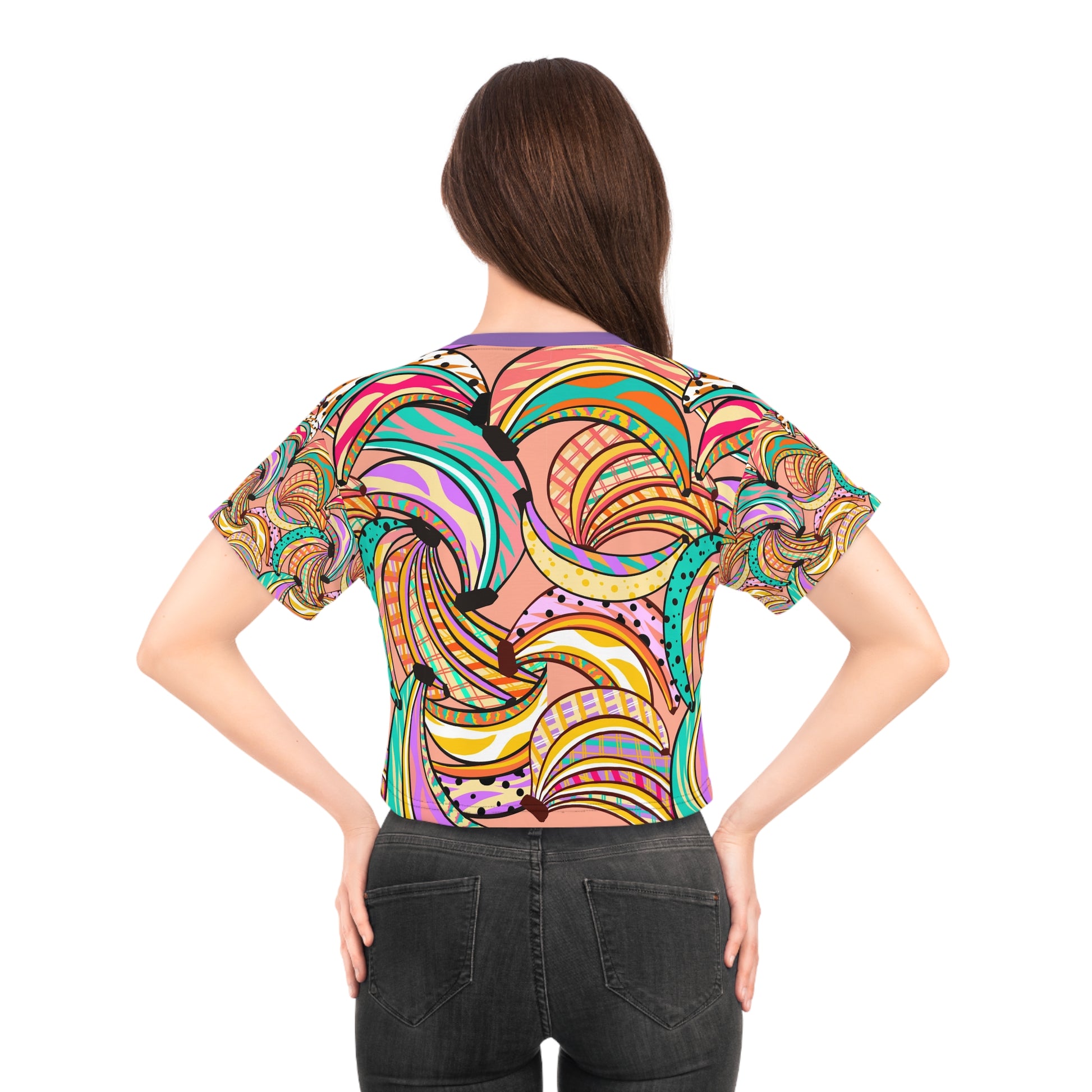 Unleash your wild side with the Crazy Bananas Crop Tee, a vibrant and playful statement piece designed for those who love bold fashion. Featuring an energetic, multi-colored banana print with eclectic patterns, this short-sleeve crop top is perfect for fun-loving trendsetters. The soft, breathable fabric ensures a comfortable fit, making it ideal for casual outings, music festivals, and summer adventures. Stand out in style and embrace the tropical vibes with this eye-catching design.