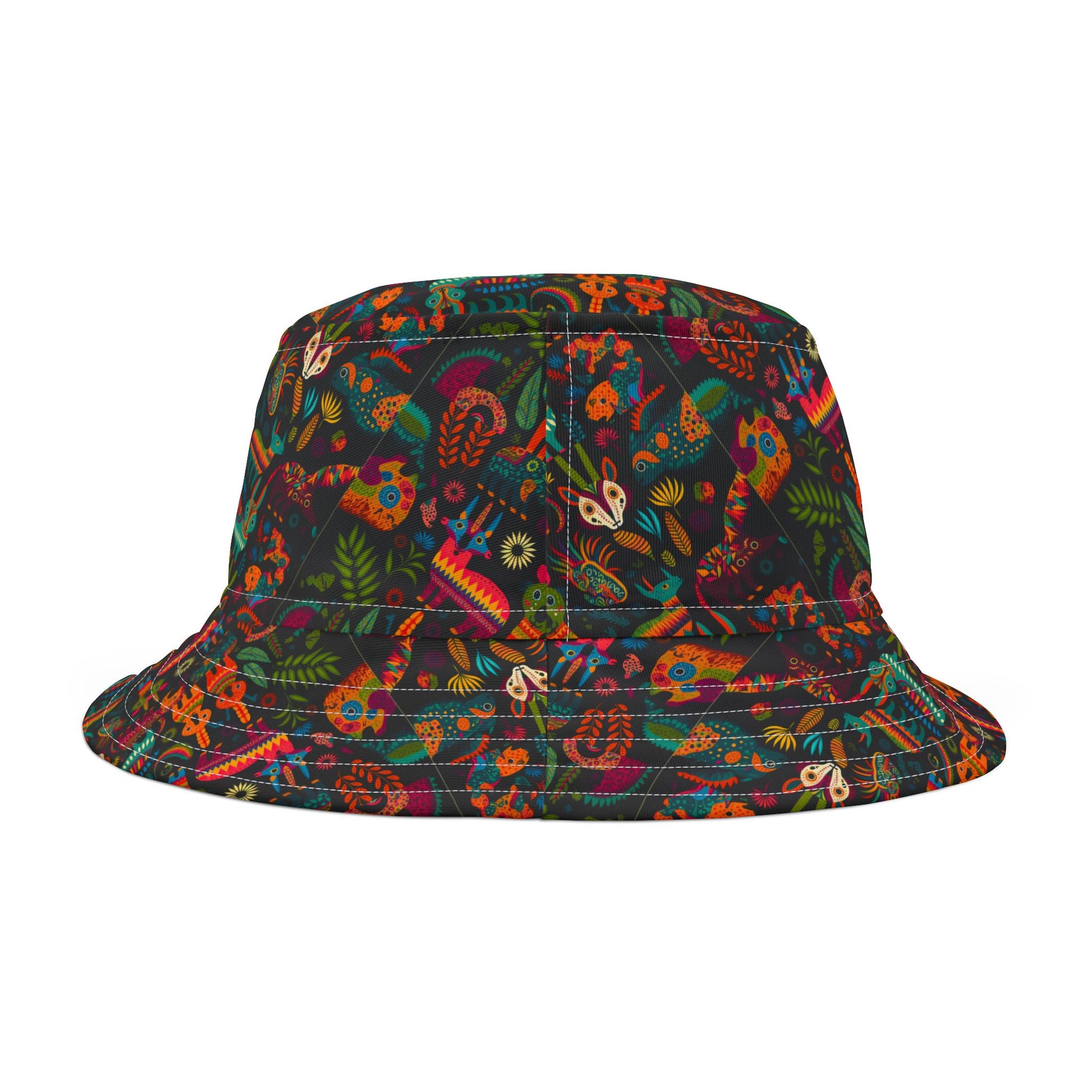 This Dia de los Muertos Mexican Icons Artwork bucket hat exudes a festive and cultural vibe, perfect for those who love traditional Mexican art. It is a great accessory for anyone looking to add a unique touch to their outfit, whether for a festival or everyday wear. Relevant for Dia de los Muertos celebrations and art enthusiasts.