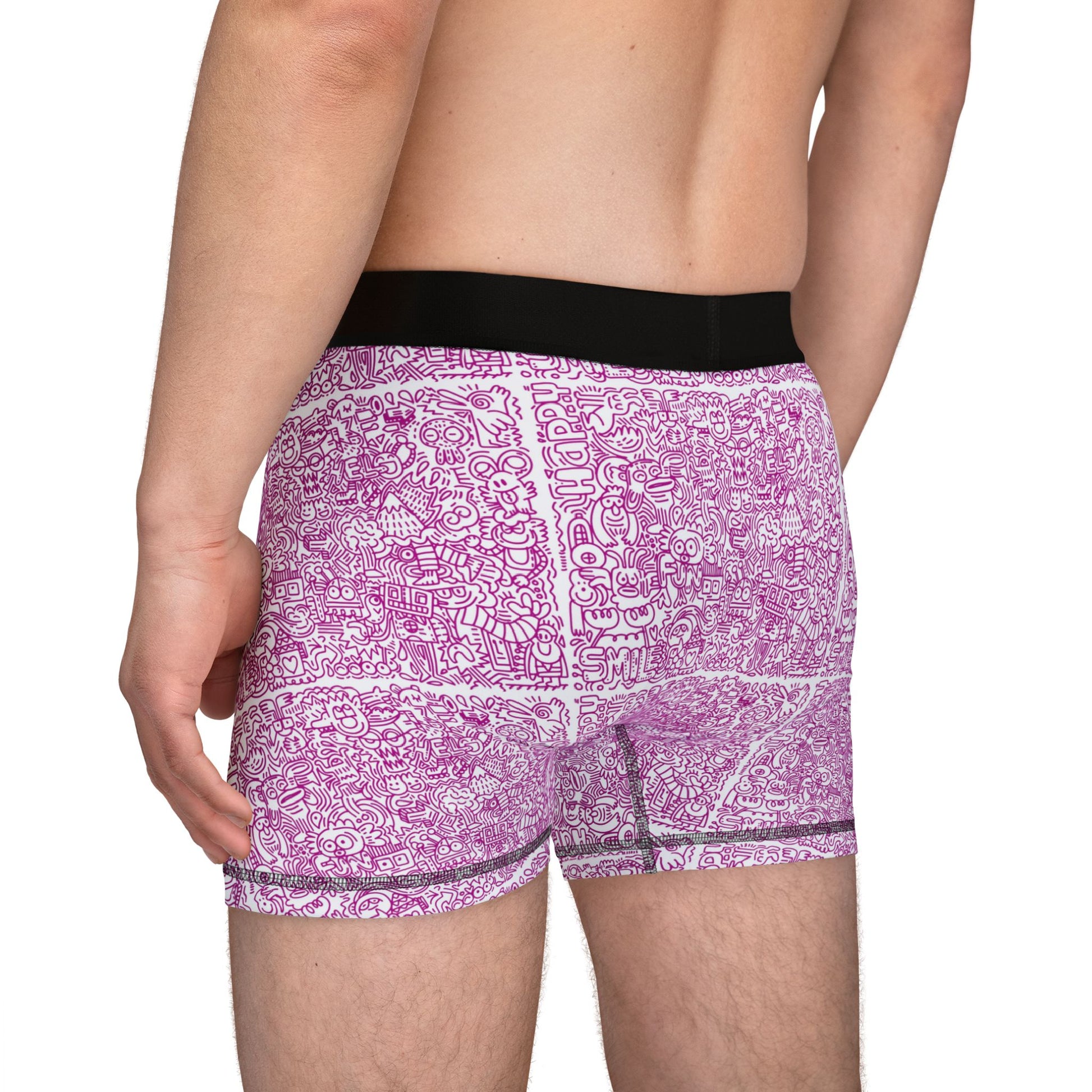 Step up your style with the Doodle Men’s Boxers. Covered in an intricate all-over scribble print, these boxers bring playful artistry to your everyday essentials. Crafted from 92% polyester and 8% spandex, they deliver lightweight stretch and breathable comfort with a medium fabric weight of 6.5 oz/yd² (210 g/m²). A sleek black waistband balances the bold doodle design while ensuring a snug, supportive fit. Perfect for art lovers, creatives, and anyone who enjoys unique style, these boxers let you showcase your personality with every wear.