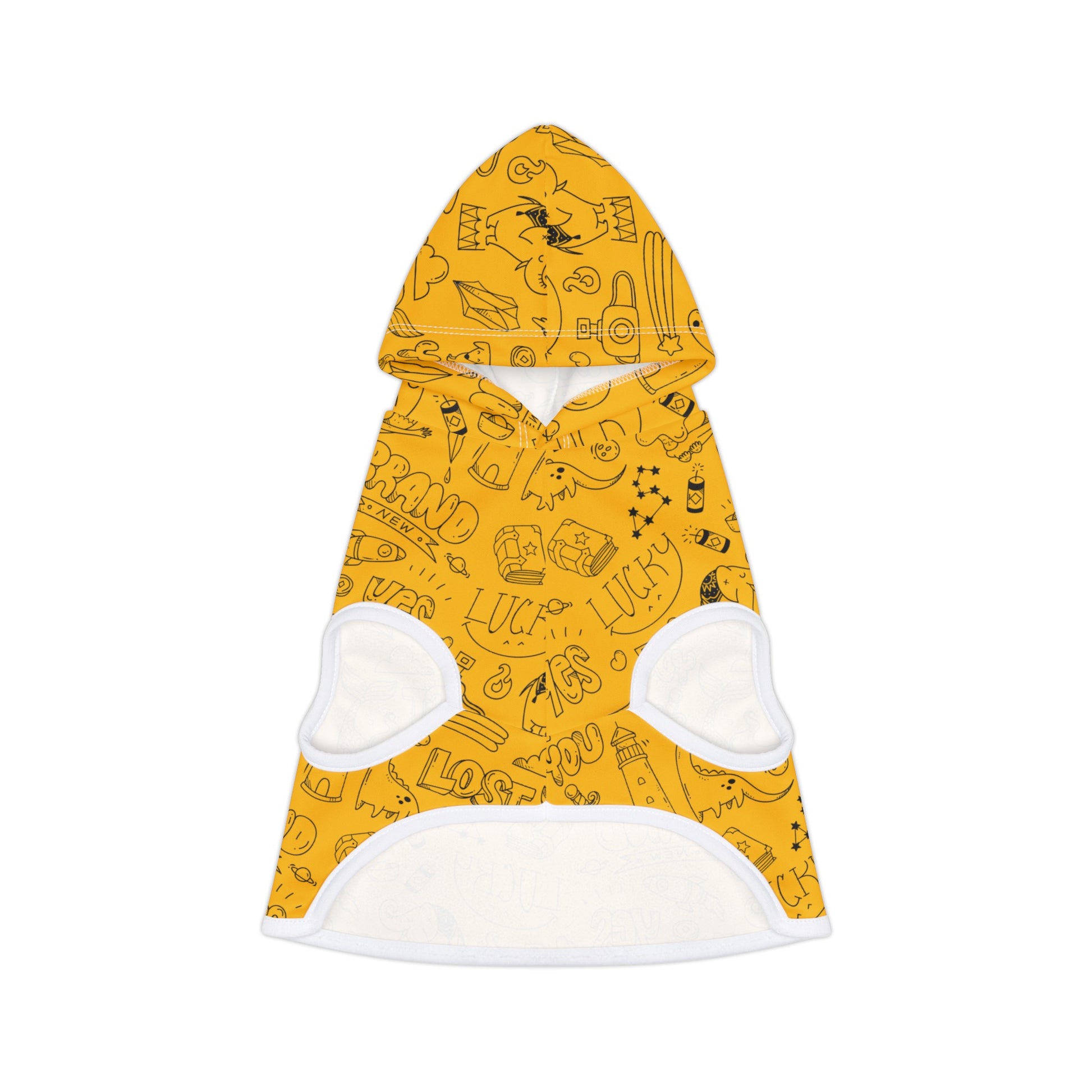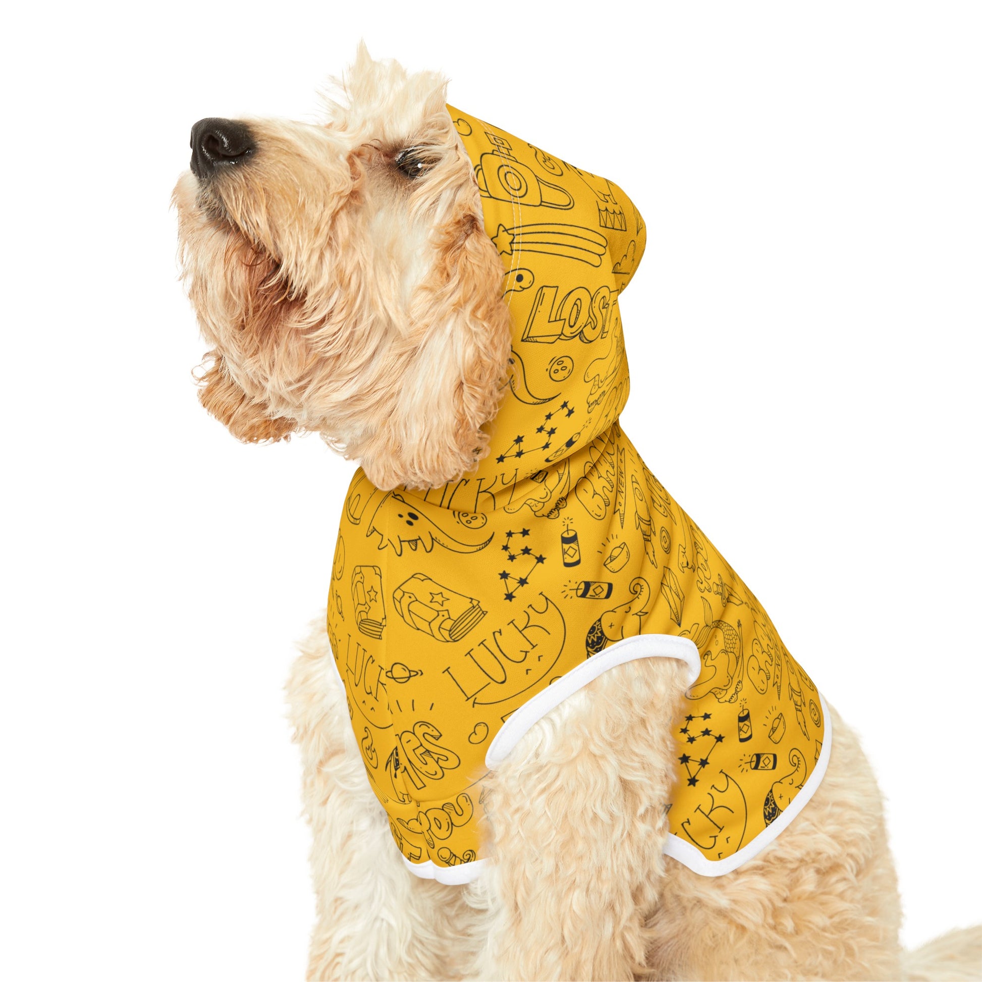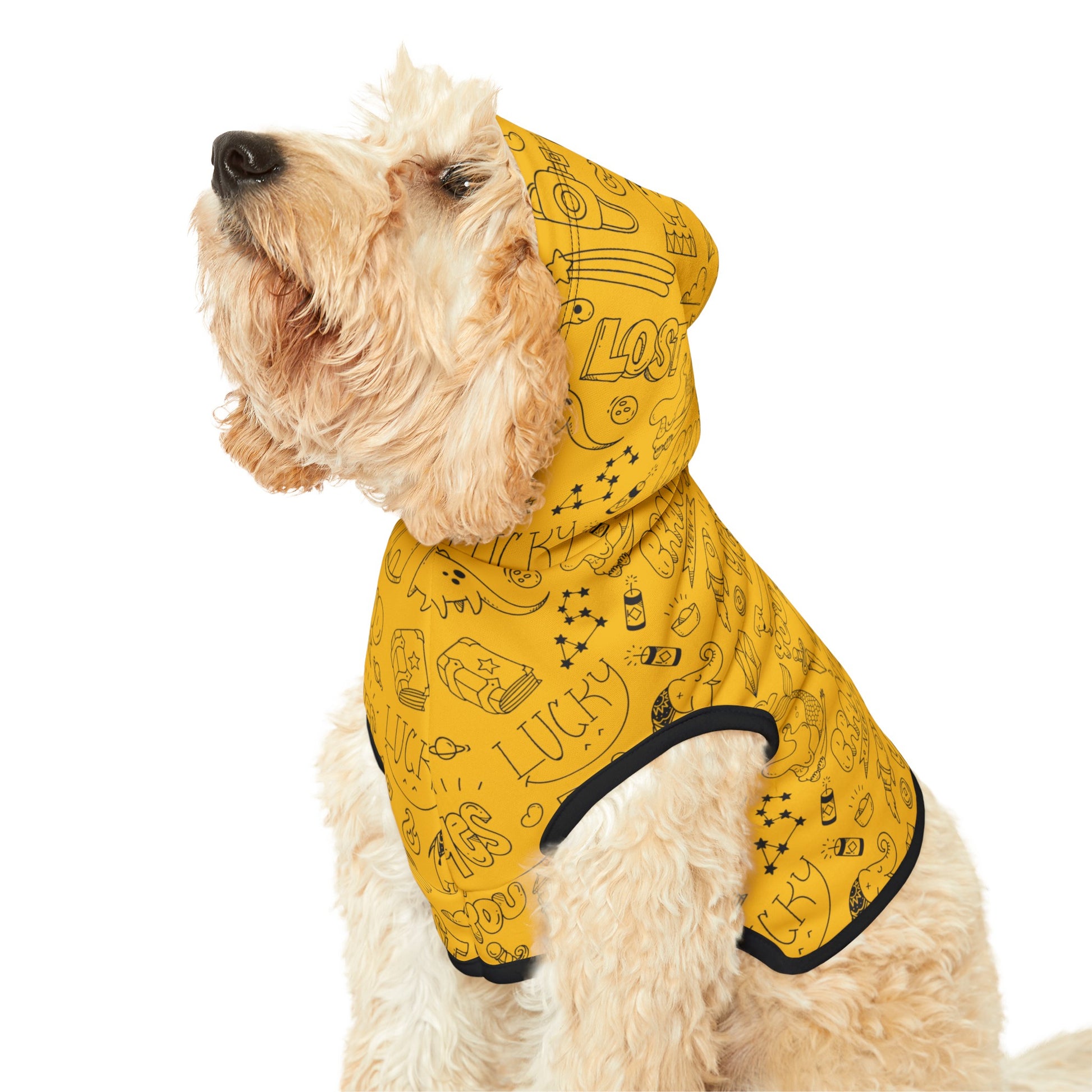 Elevate your pet's style with our Doodles Print Pet Hoodie, crafted from 100% soft polyester for ultimate comfort. This vibrant hoodie features an exclusive doodles design, adjustable drawstring hood, and elastic cuffs for a perfect fit. Ideal for any occasion, it's machine washable for easy maintenance. Keep your furry friend cozy and fashionable with this adorable, durable hoodie!