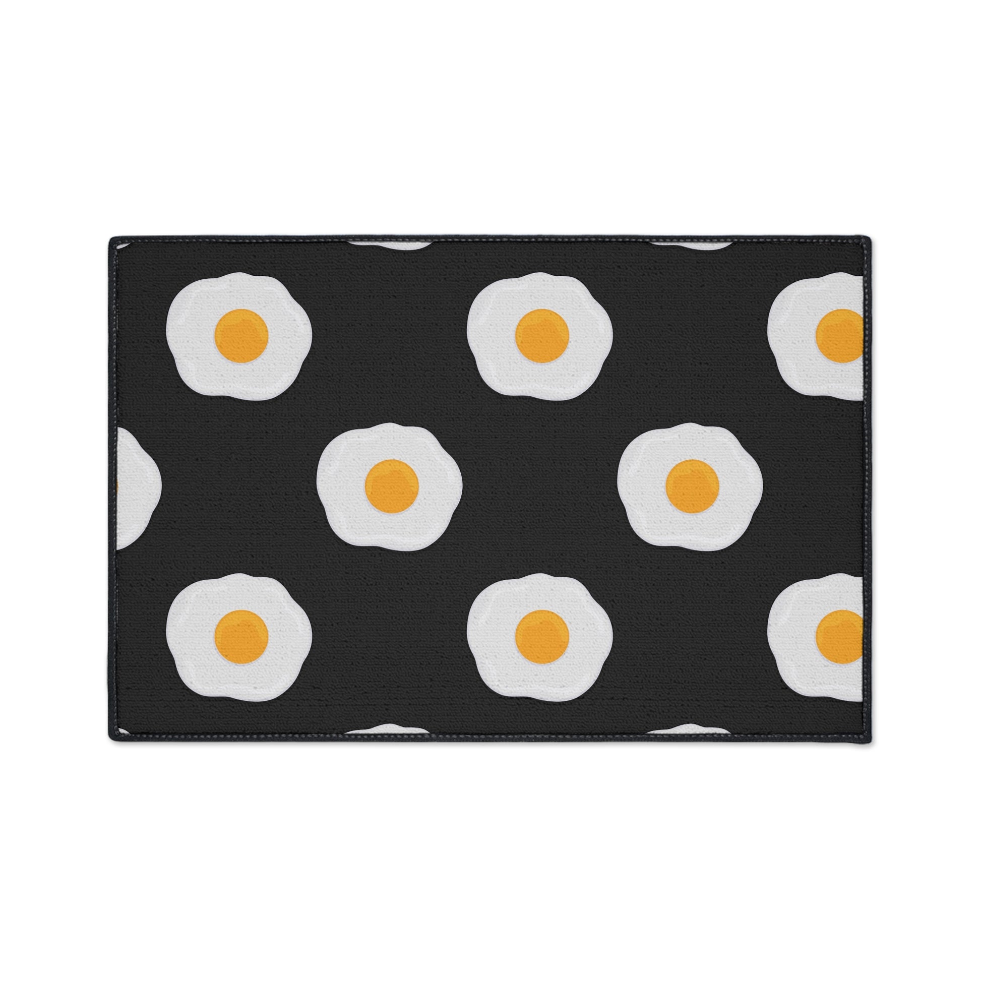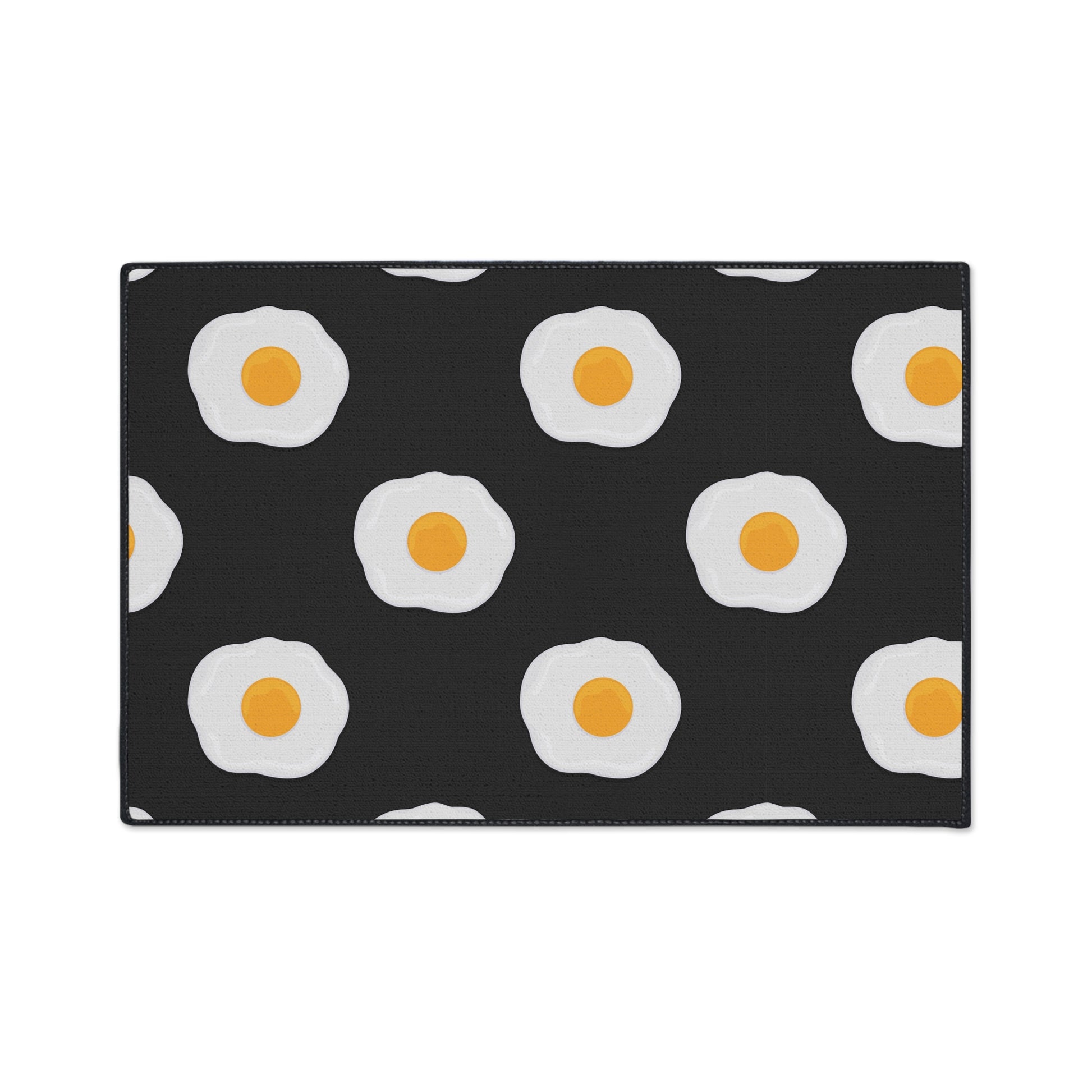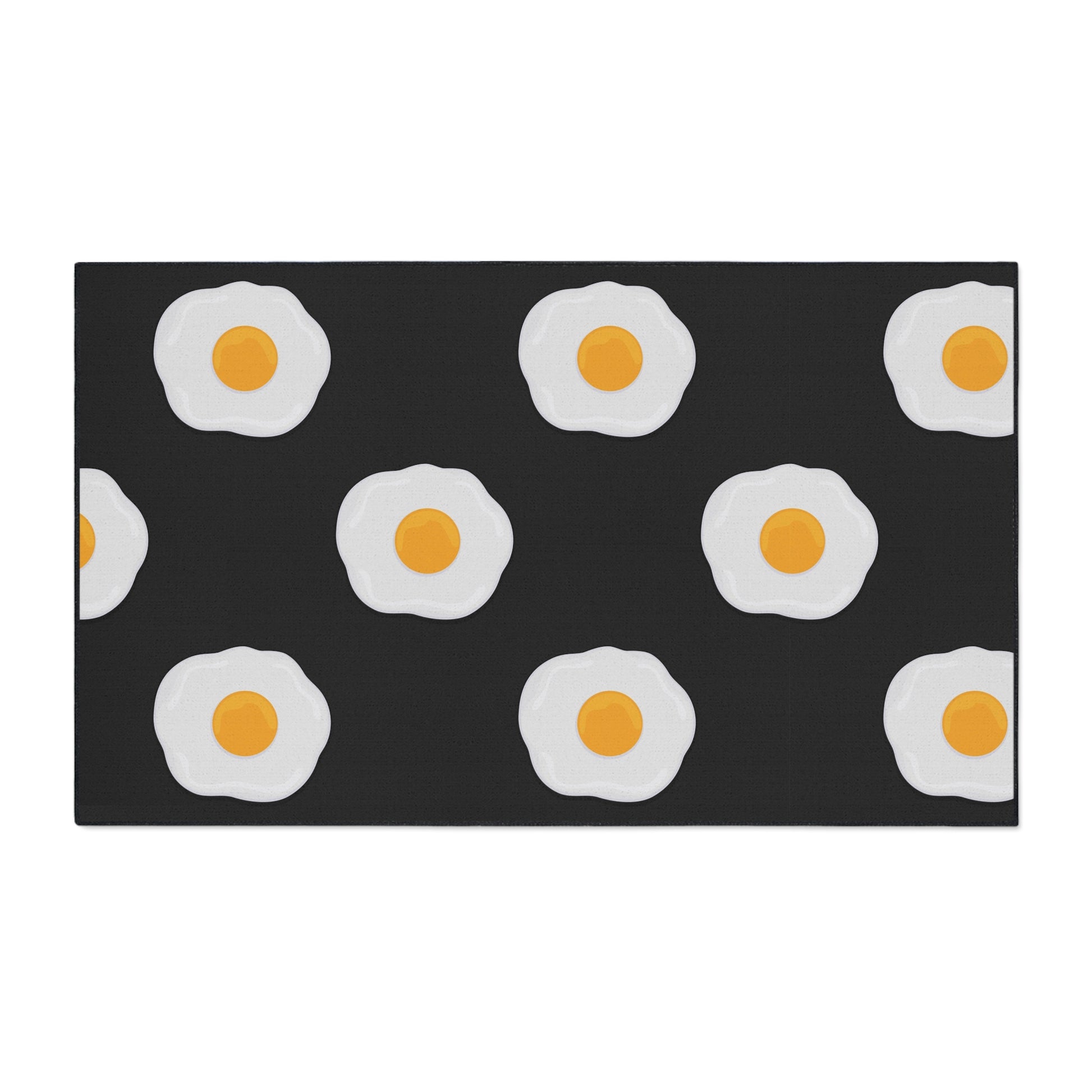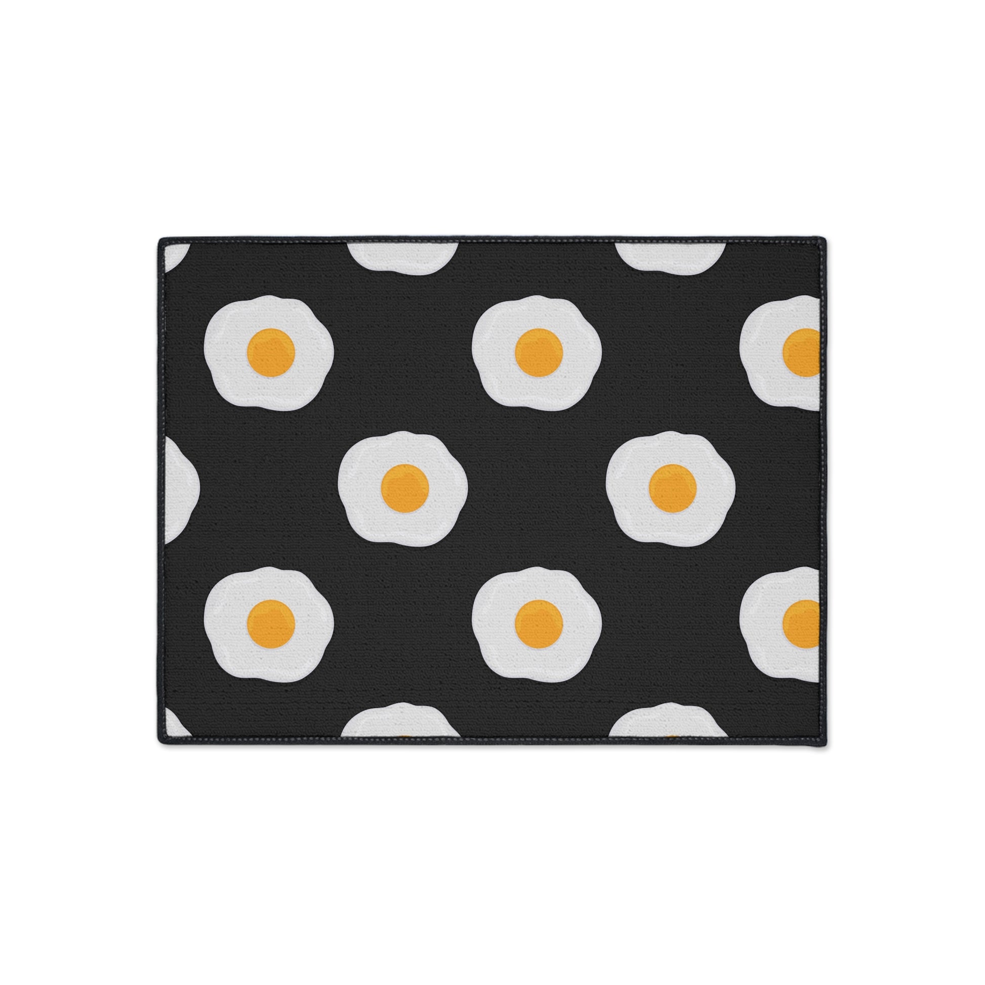 Add a touch of fun and functionality to your kitchen with the Eggstravaganza Non-Slip Kitchen Mat. Made from 100% durable polyester, this mat features a playful pattern of sunny side up eggs on a sleek black background. Its non-slip backing ensures safety and stability, making it perfect for busy kitchens. Easy to clean and maintain, the Eggstravaganza mat combines style and practicality to enhance your cooking space.