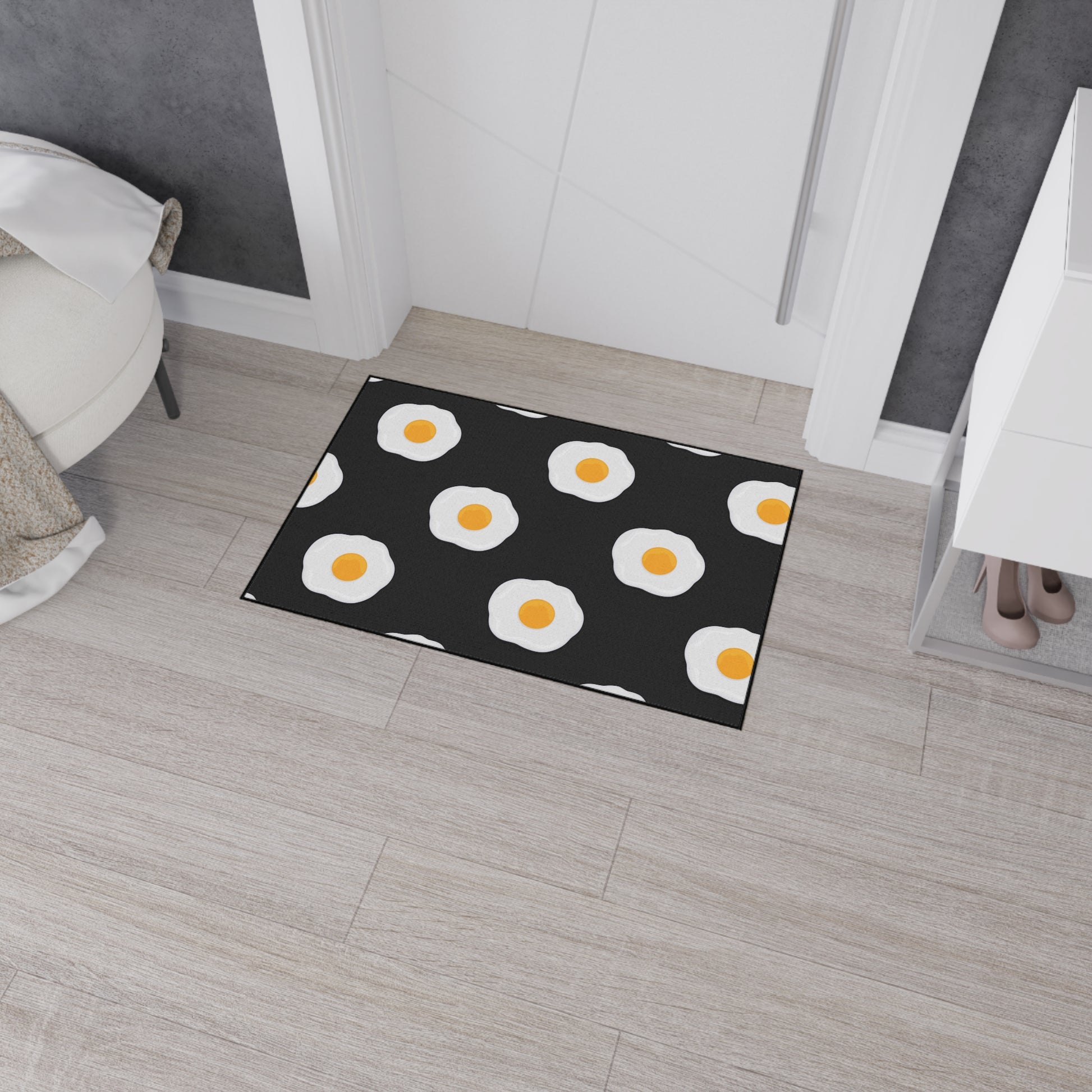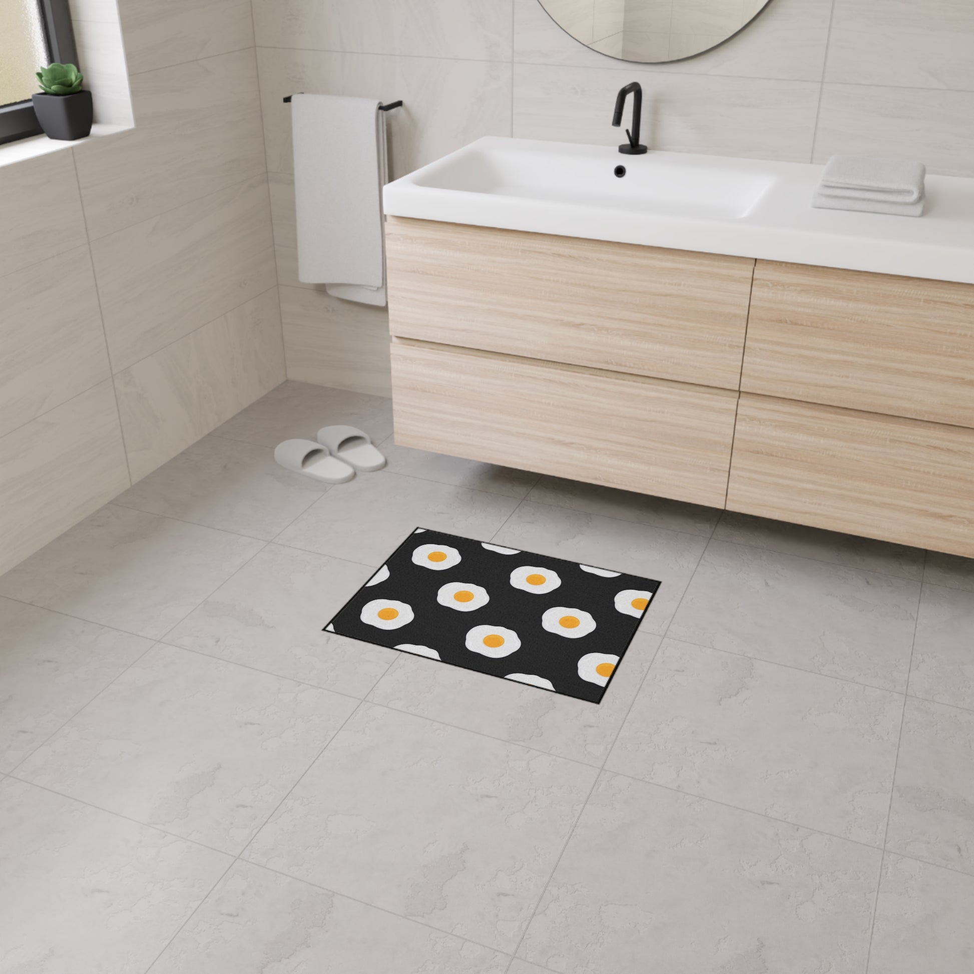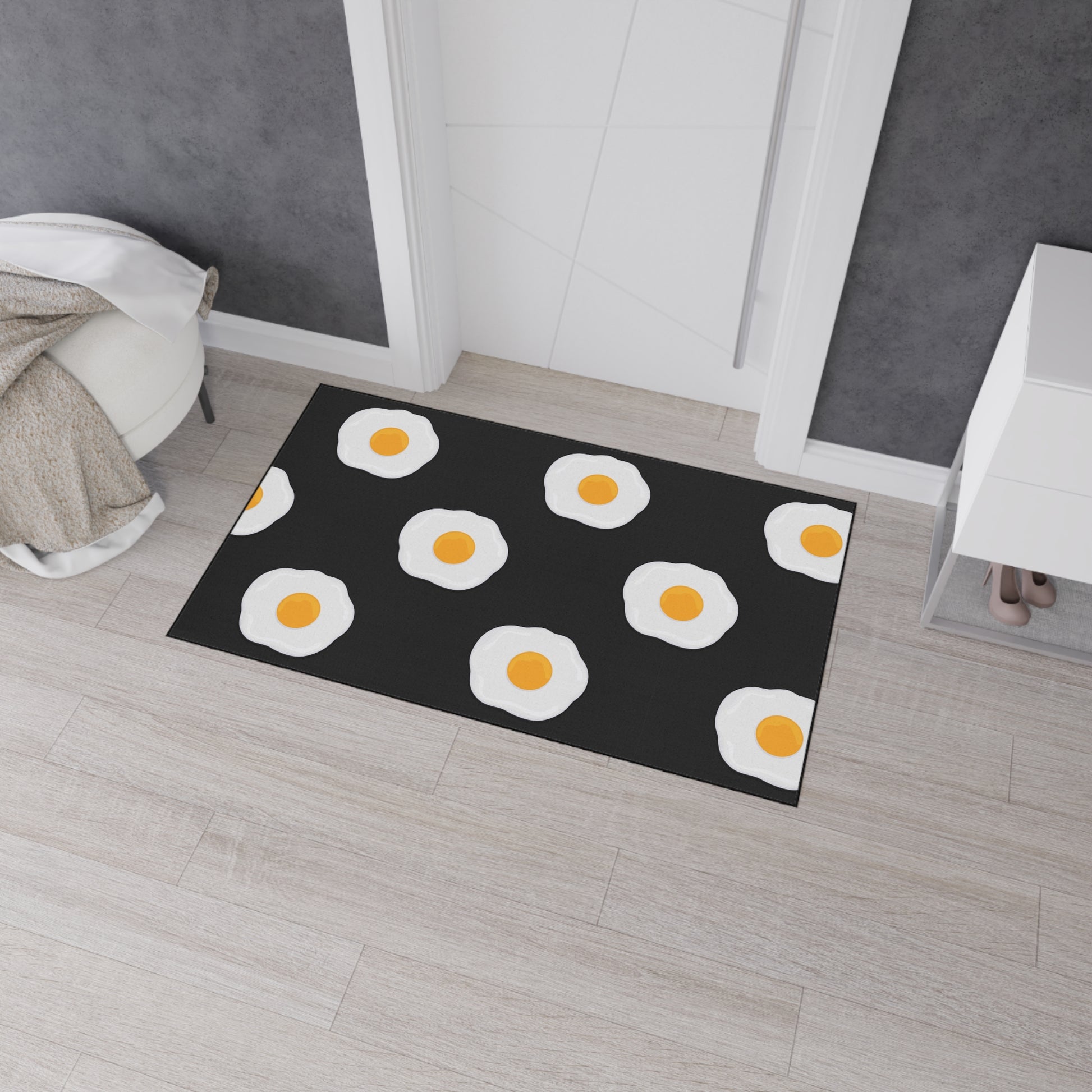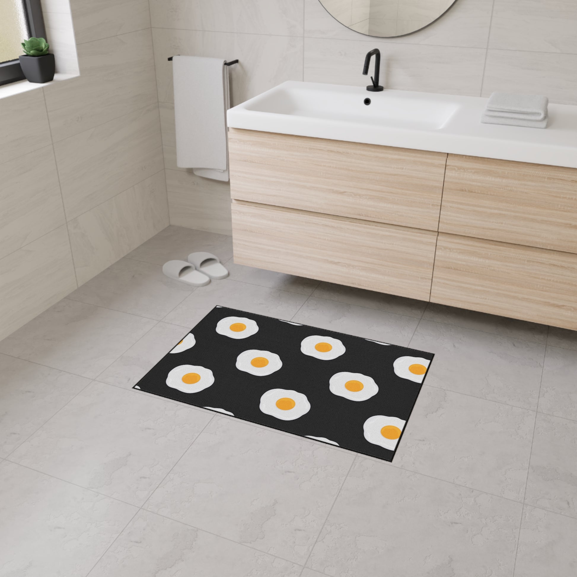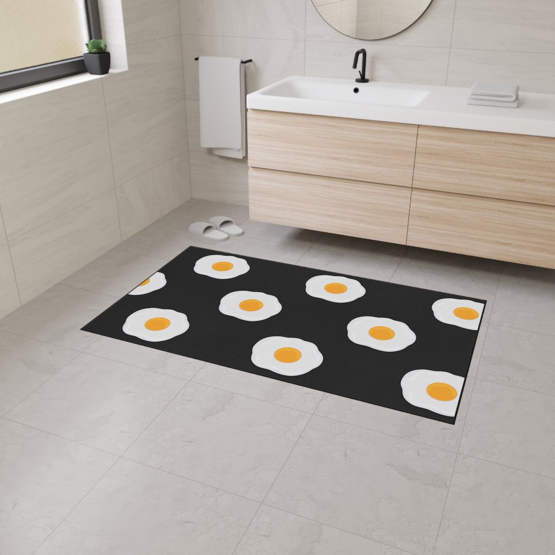 Add a touch of fun and functionality to your kitchen with the Eggstravaganza Non-Slip Kitchen Mat. Made from 100% durable polyester, this mat features a playful pattern of sunny side up eggs on a sleek black background. Its non-slip backing ensures safety and stability, making it perfect for busy kitchens. Easy to clean and maintain, the Eggstravaganza mat combines style and practicality to enhance your cooking space.