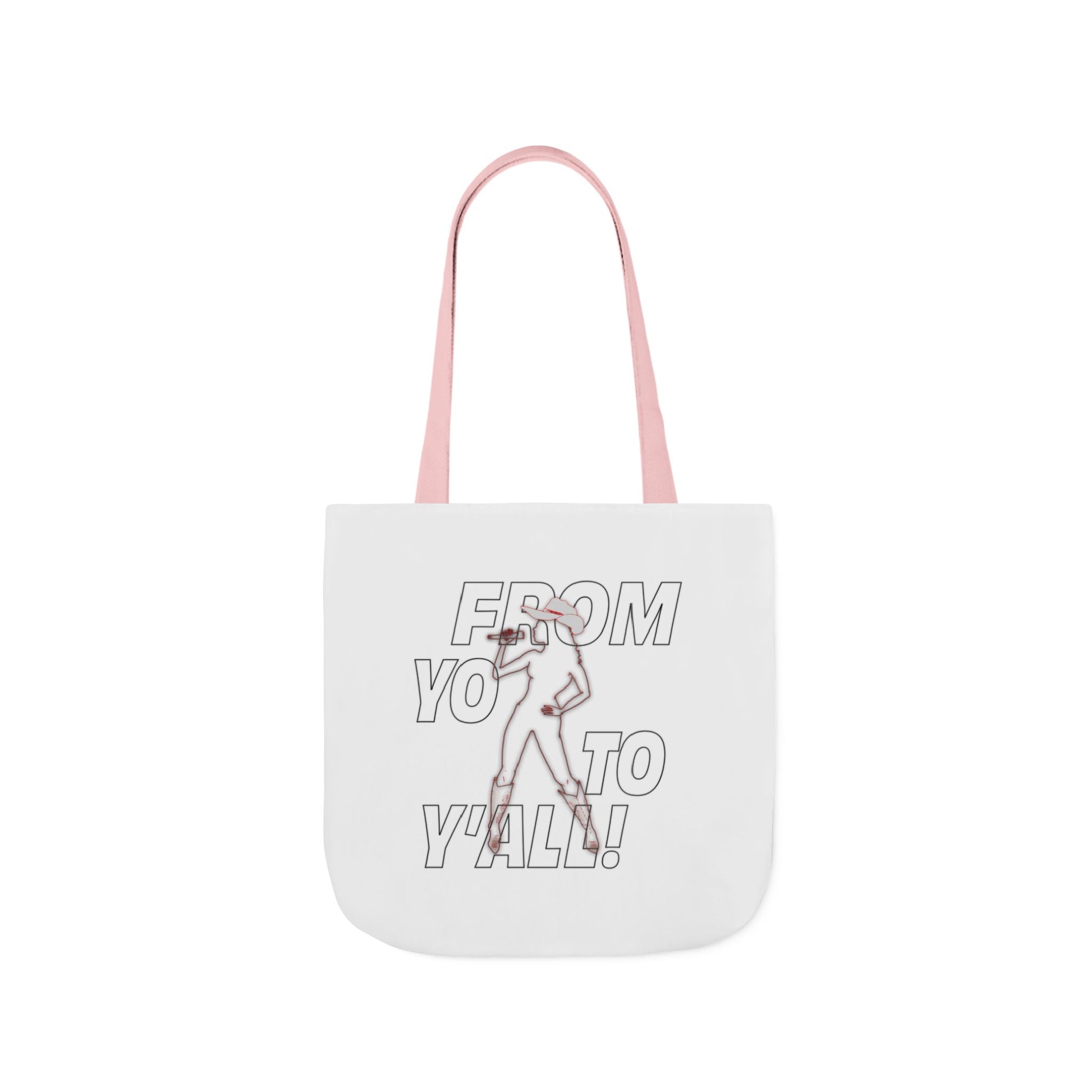 Introducing the From Yo To Y’All Tote Bag, a stylish and versatile accessory that celebrates the transition of a talented artist into the world of country music. Made from 100% polyester canvas, this tote bag is durable and easy to clean, making it perfect for everyday use. Part of our Entertainment collection, this bag features a unique design that showcases the artist's journey from 'Yo' to 'Y'All'. Whether you're heading to a concert or running errands, this tote bag is a must-have for music lovers and fans of the artist. Show your support and carry your essentials in style with the From Yo To Y’All Tote Bag.