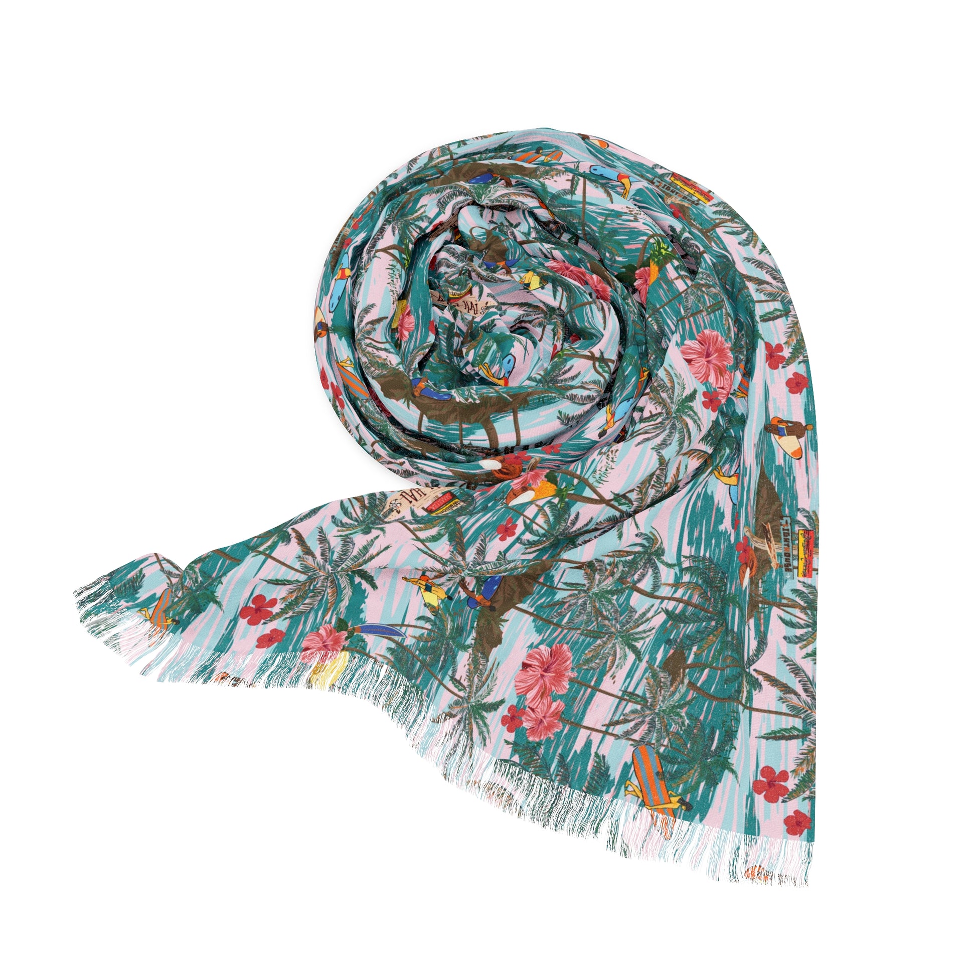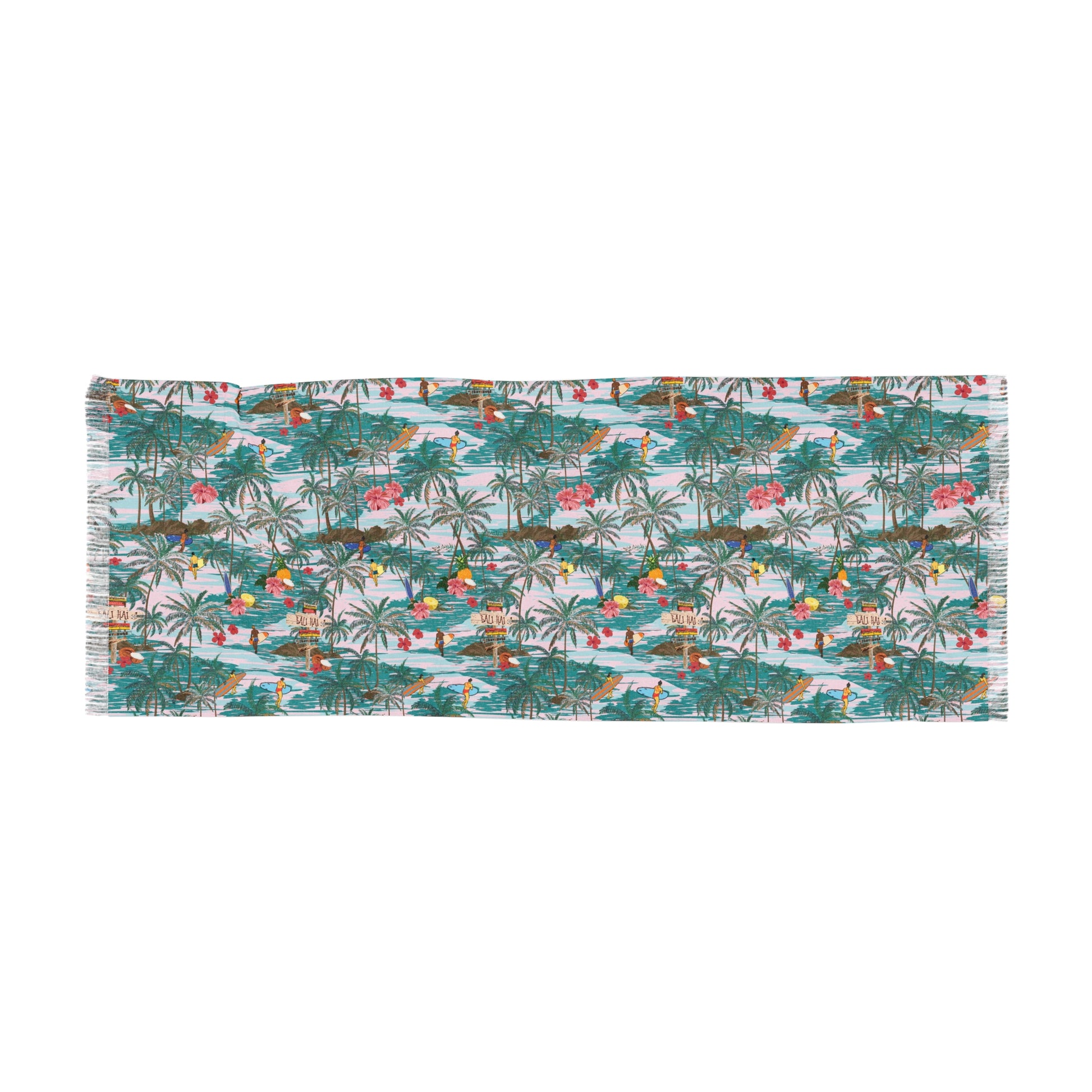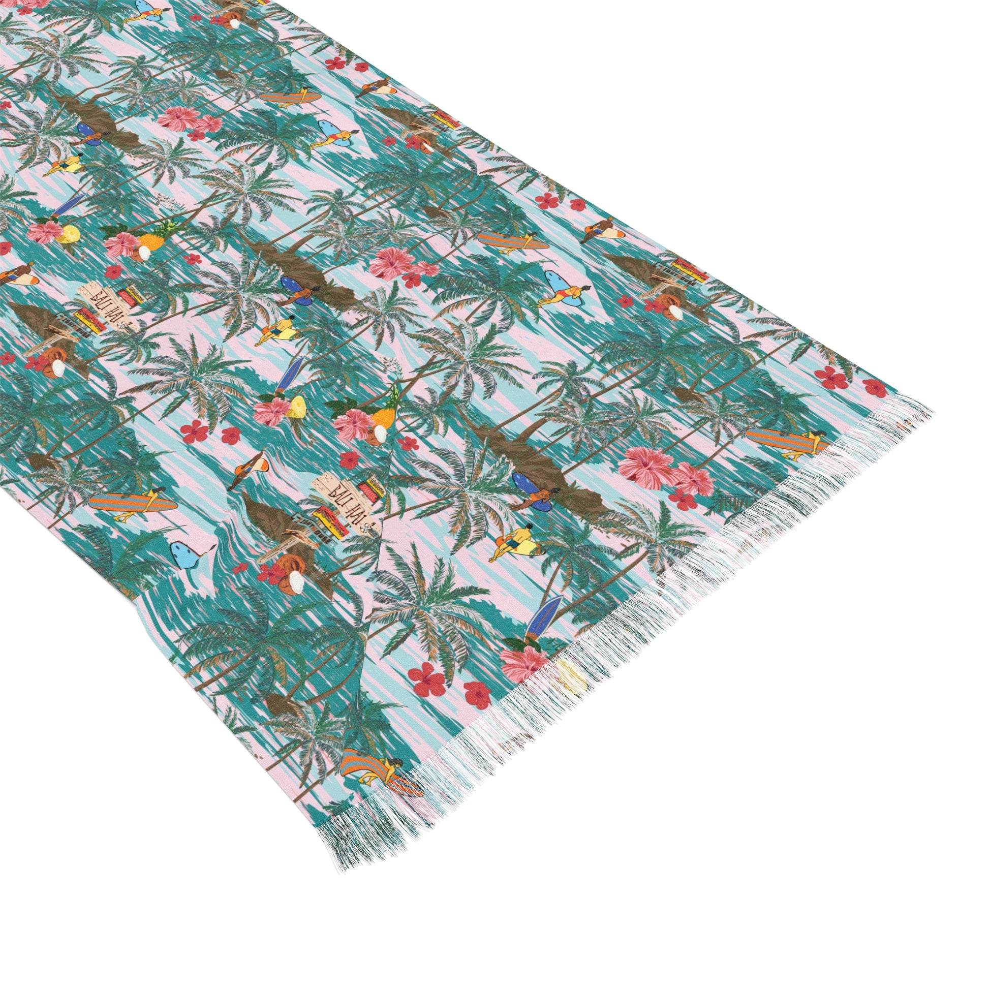 Elevate your outfit with the Hawaiian Breeze Lightweight Scarf, a tropical-inspired accessory that brings island vibes to any look. Featuring a lush, vibrant print of palm trees, surfers, and ocean waves, this lightweight and breathable scarf is perfect for warm-weather styling. Whether worn as a shawl, wrap, or stylish neck scarf, its airy fabric provides a breezy and comfortable feel. Ideal for beach vacations, casual days out, or layering over summer outfits, this versatile scarf adds a touch of paradise to your wardrobe.