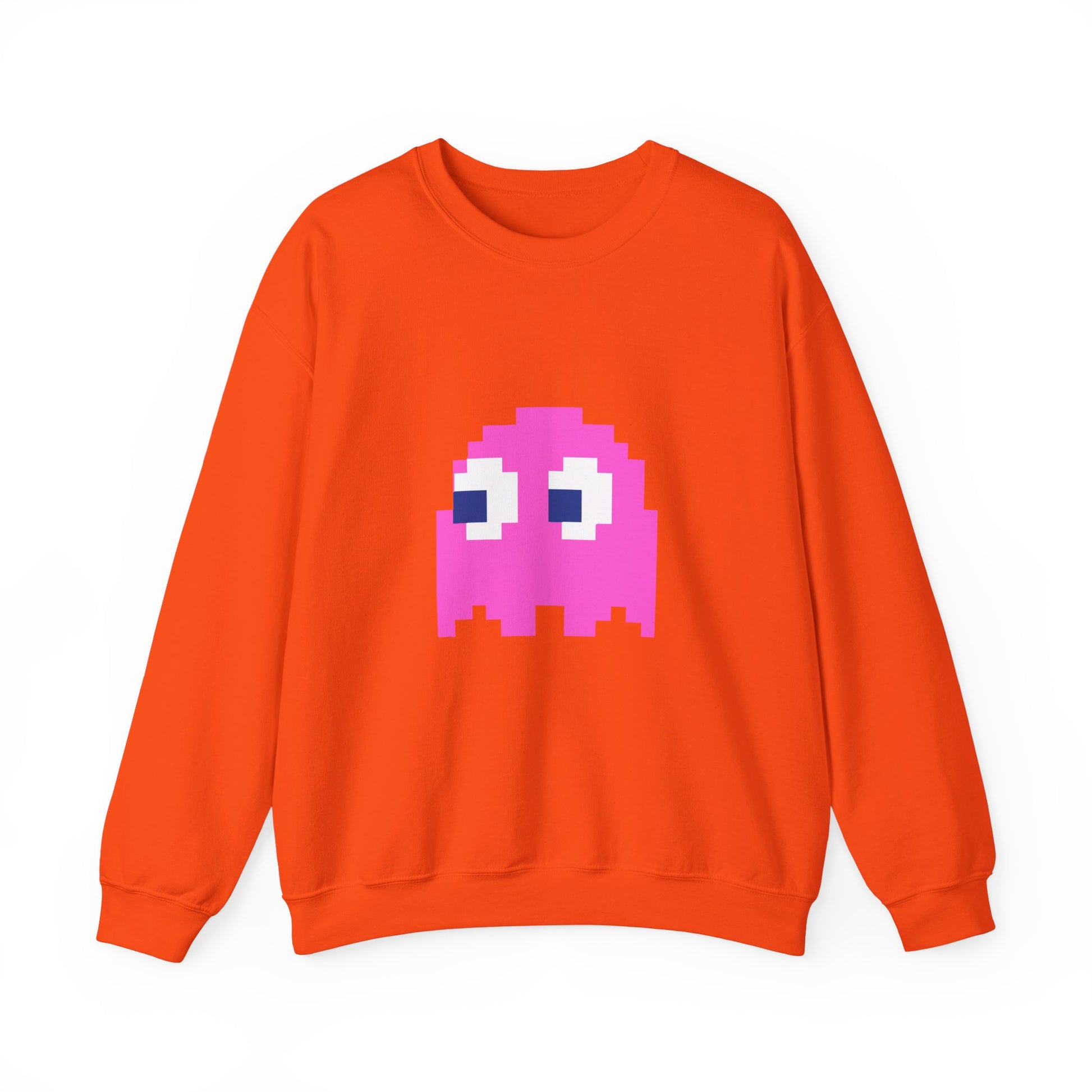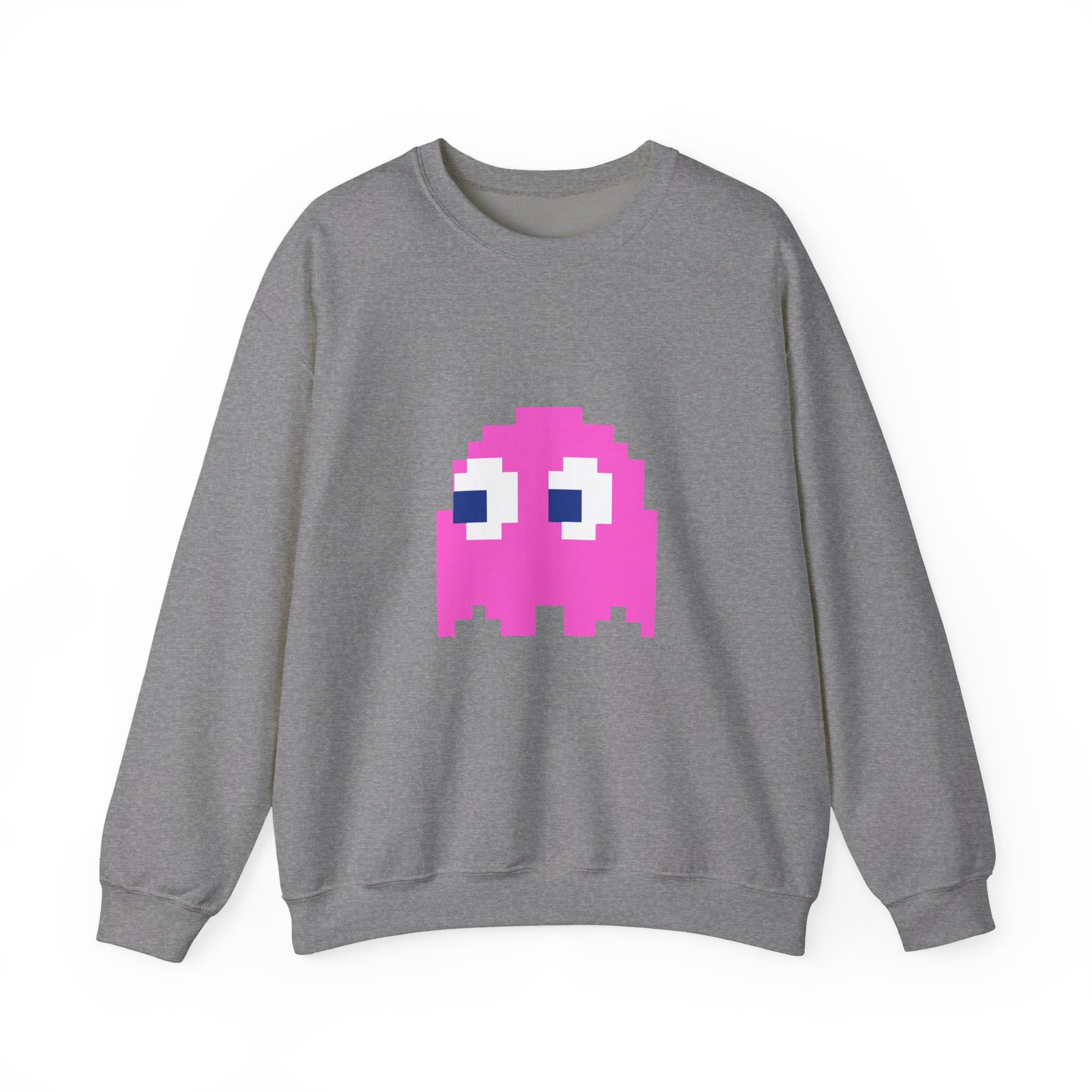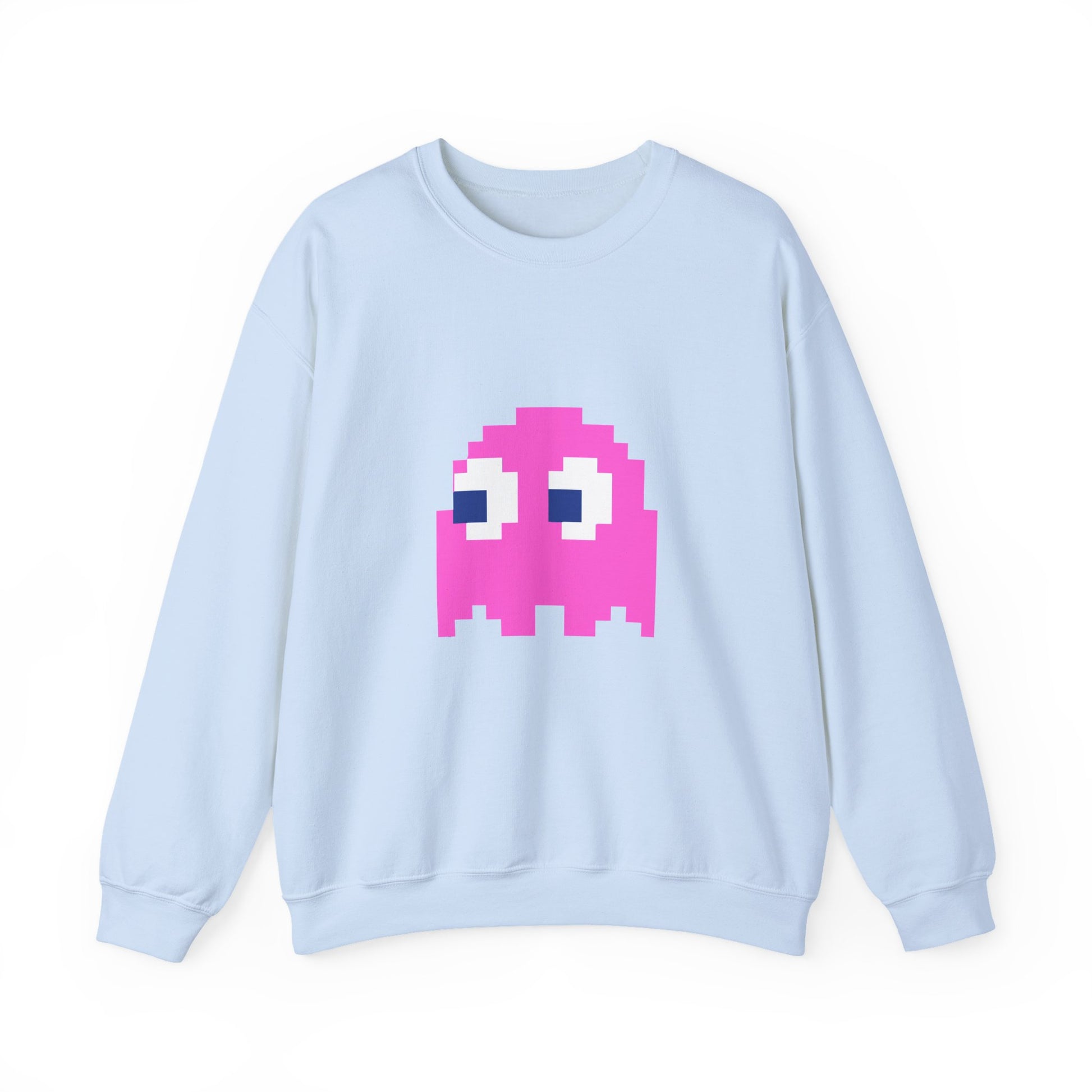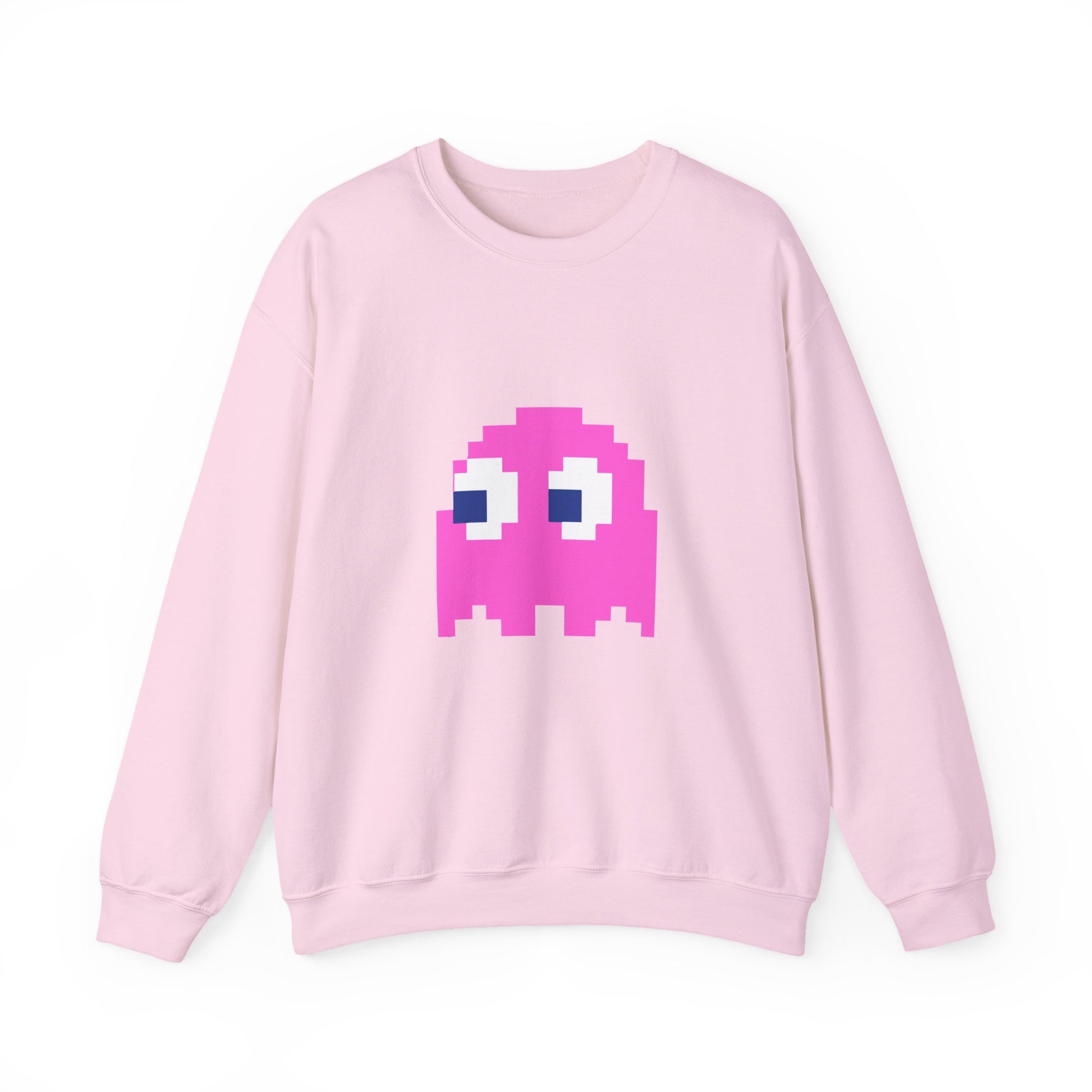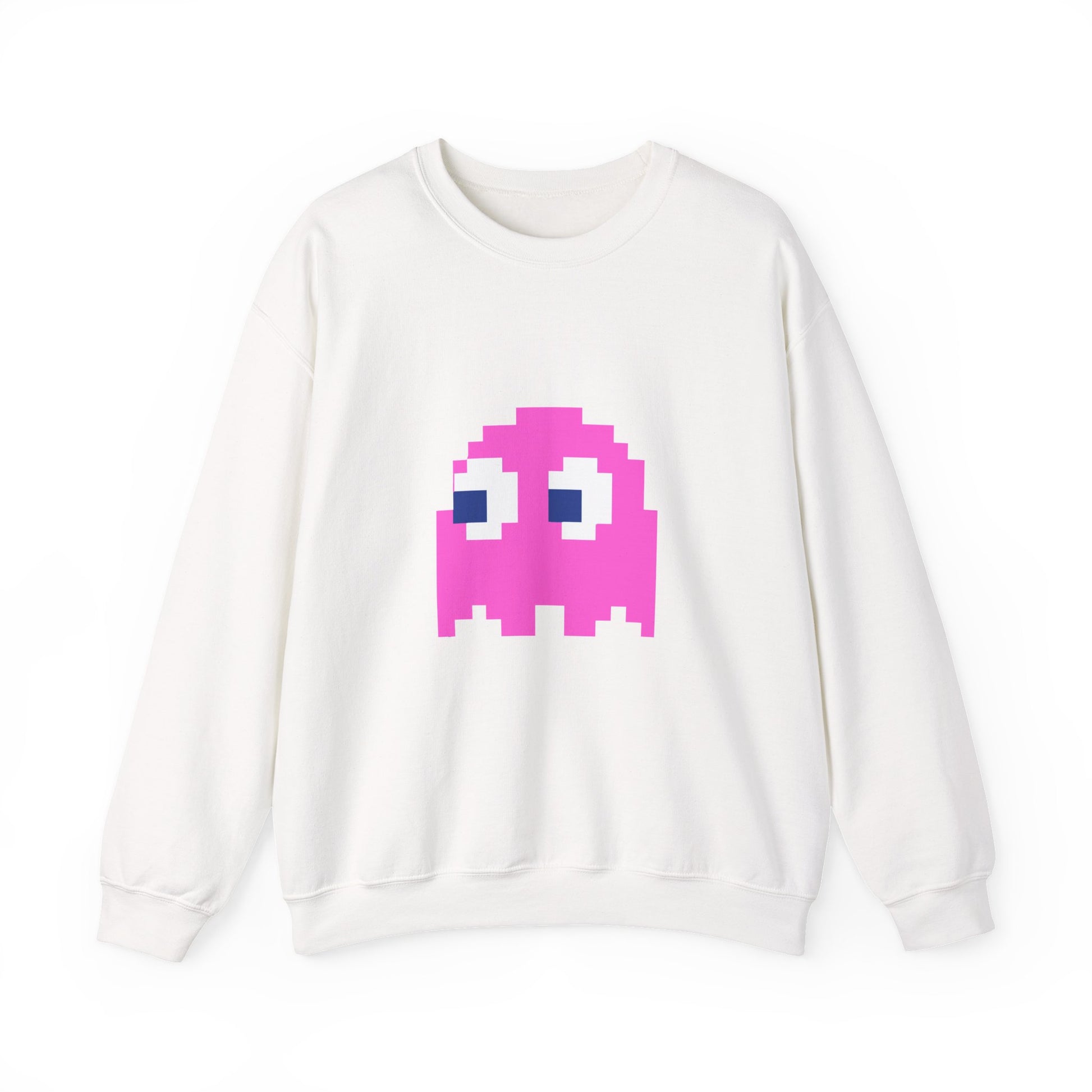 💖 Retro gaming meets all-day comfort! The Pac-Man Pinky Ghost Sweatshirt is a must-have for classic arcade lovers and nostalgic gamers. Featuring Pinky, the speedy and sassy pink ghost, this unisex crewneck brings a bold, vintage-inspired look to your wardrobe.