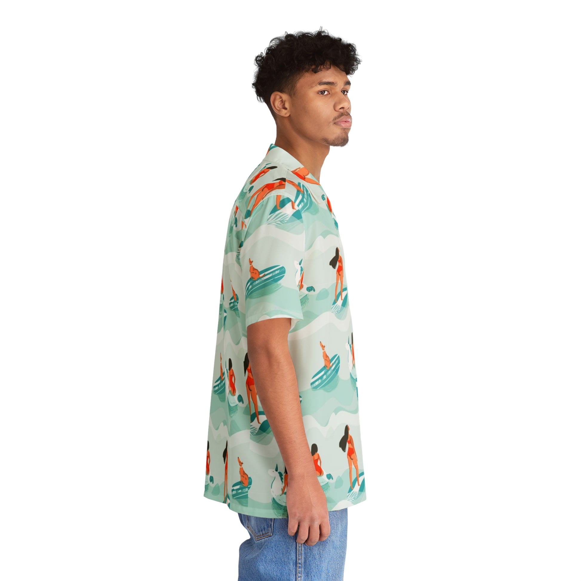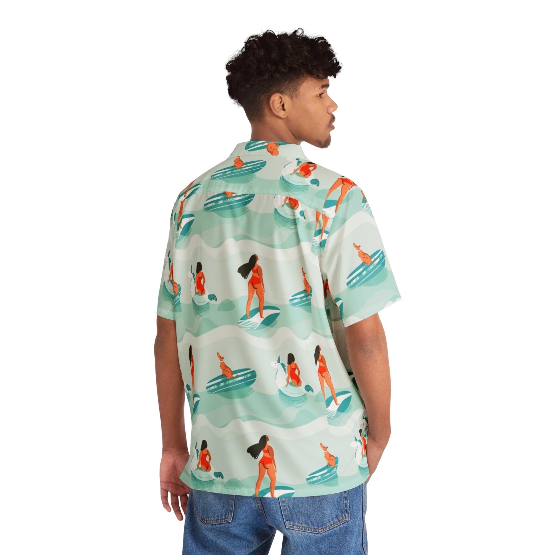 Ride the wave of effortless style with the Pacific Surfers Shirt, a breezy button-up featuring a vibrant print of surfers and beachgoers against an ocean-inspired pastel background. Designed for those who love coastal living, tropical vacations, and laid-back summer vibes, this short-sleeve shirt pairs perfectly with swim trunks, chinos, or casual denim. The lightweight, breathable fabric ensures comfort, making it ideal for beach outings, poolside parties, or a stylish everyday look with a relaxed, island-inspired aesthetic.