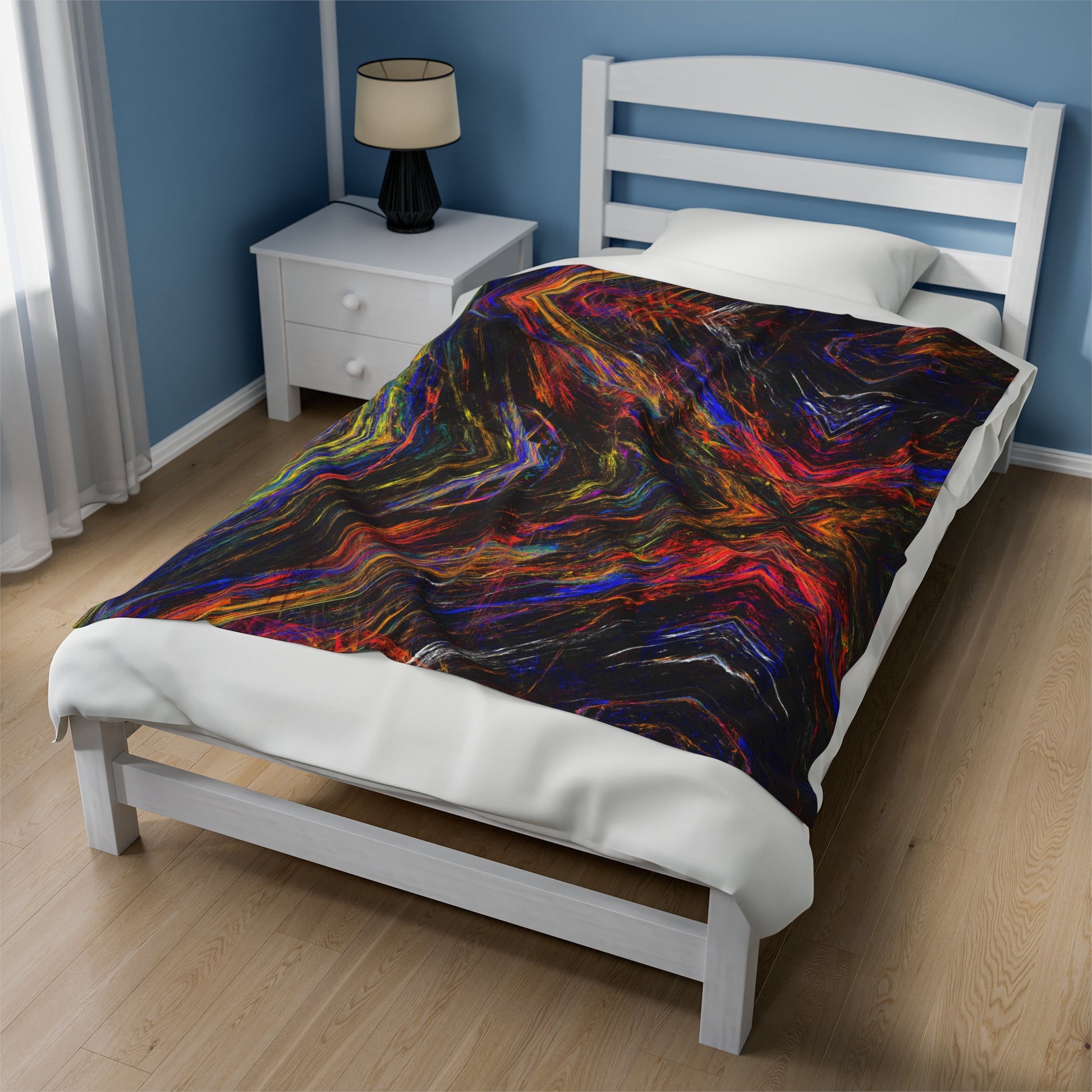 This Velveteen Plush Blanket features a vibrant and artsy paint splash design, adding a pop of color to any room. The medium heavy-weight fabric feels extra soft to the touch, perfect for cozying up on chilly nights or adding a decorative touch to your space. Ideal for those looking to add a touch of artistry and warmth to their home decor, this blanket is relevant for birthdays, housewarmings, and cozy nights in.