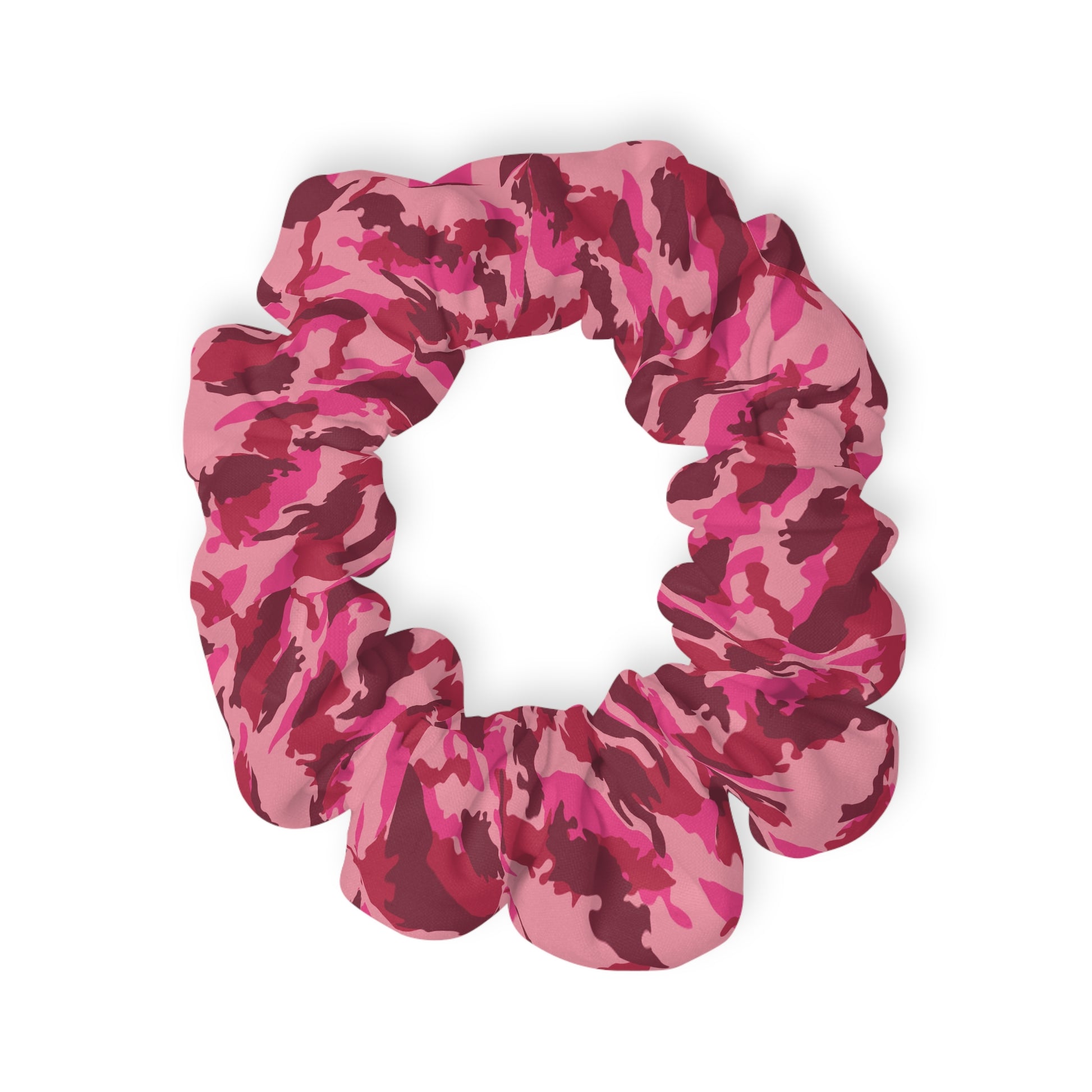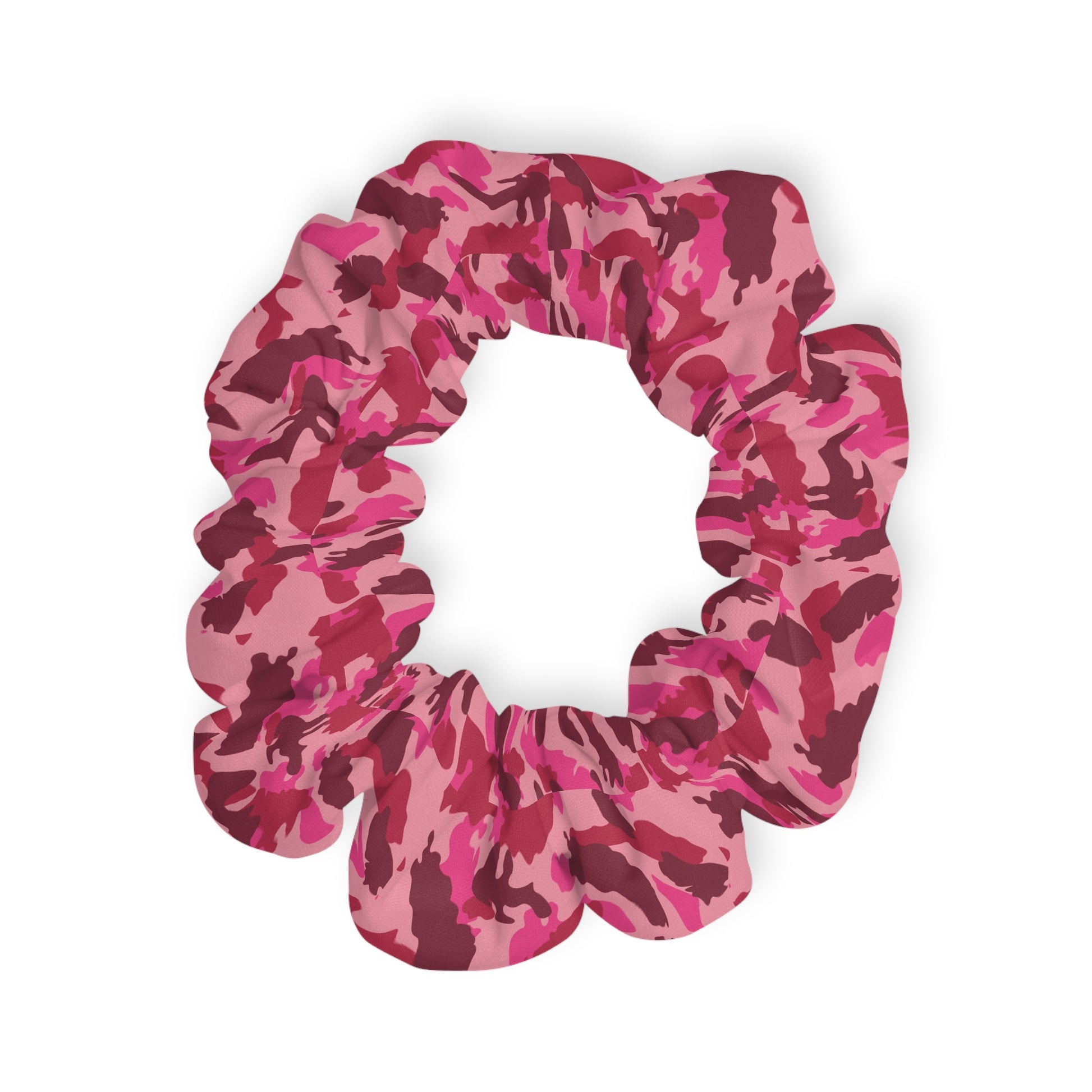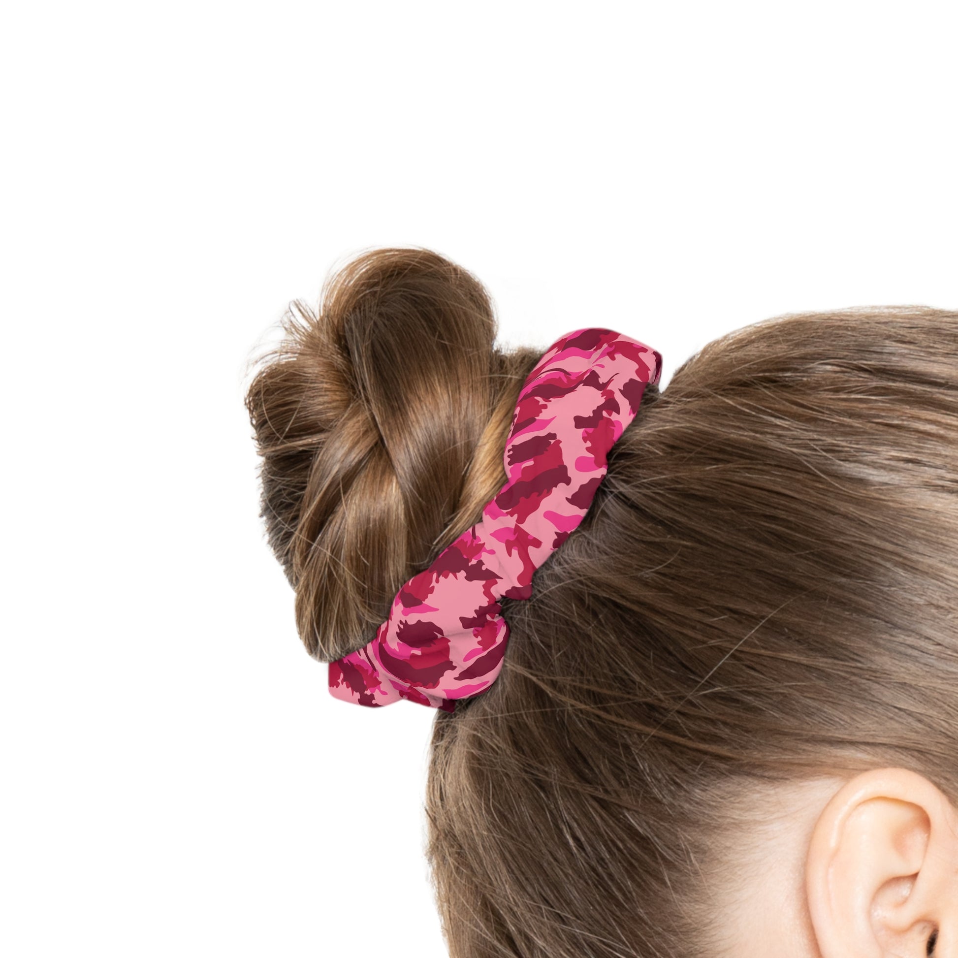 Introducing the Pink Camouflage Scrunchie: a stylish accessory that blends edgy and feminine elements. Crafted from 100% polyester jersey knit fabric, this scrunchie features a unique pink camouflage pattern, adding a bold touch to your look. Measuring 4'' × 4'', it offers a comfortable and secure fit for all hair types. Perfect for adding a trendy and distinctive flair to your everyday style.