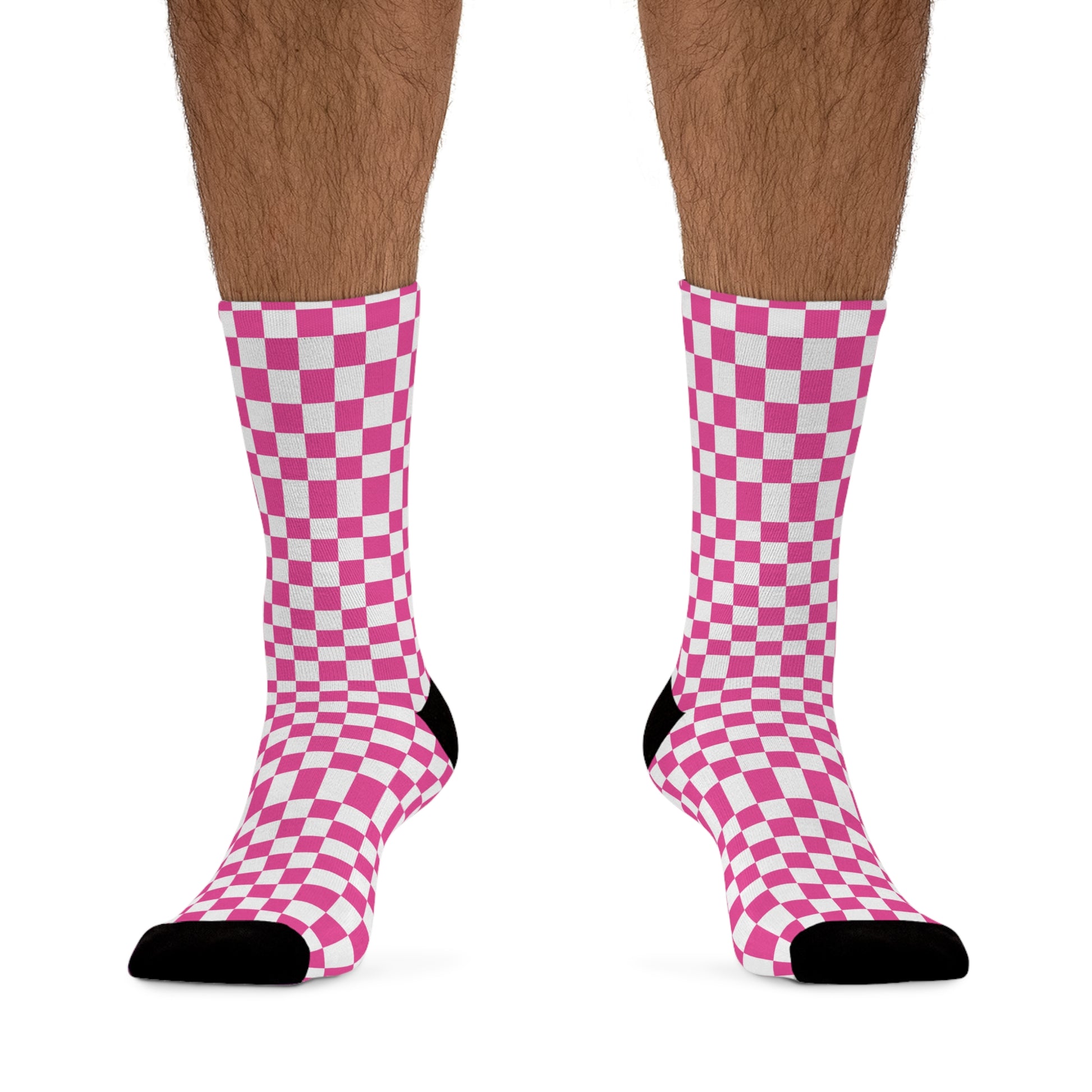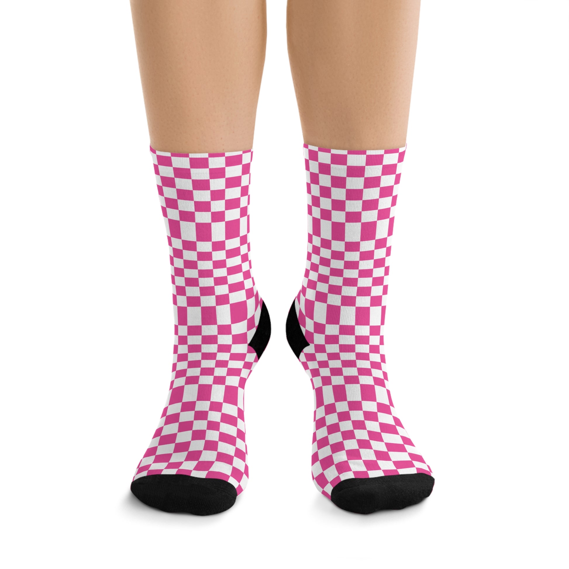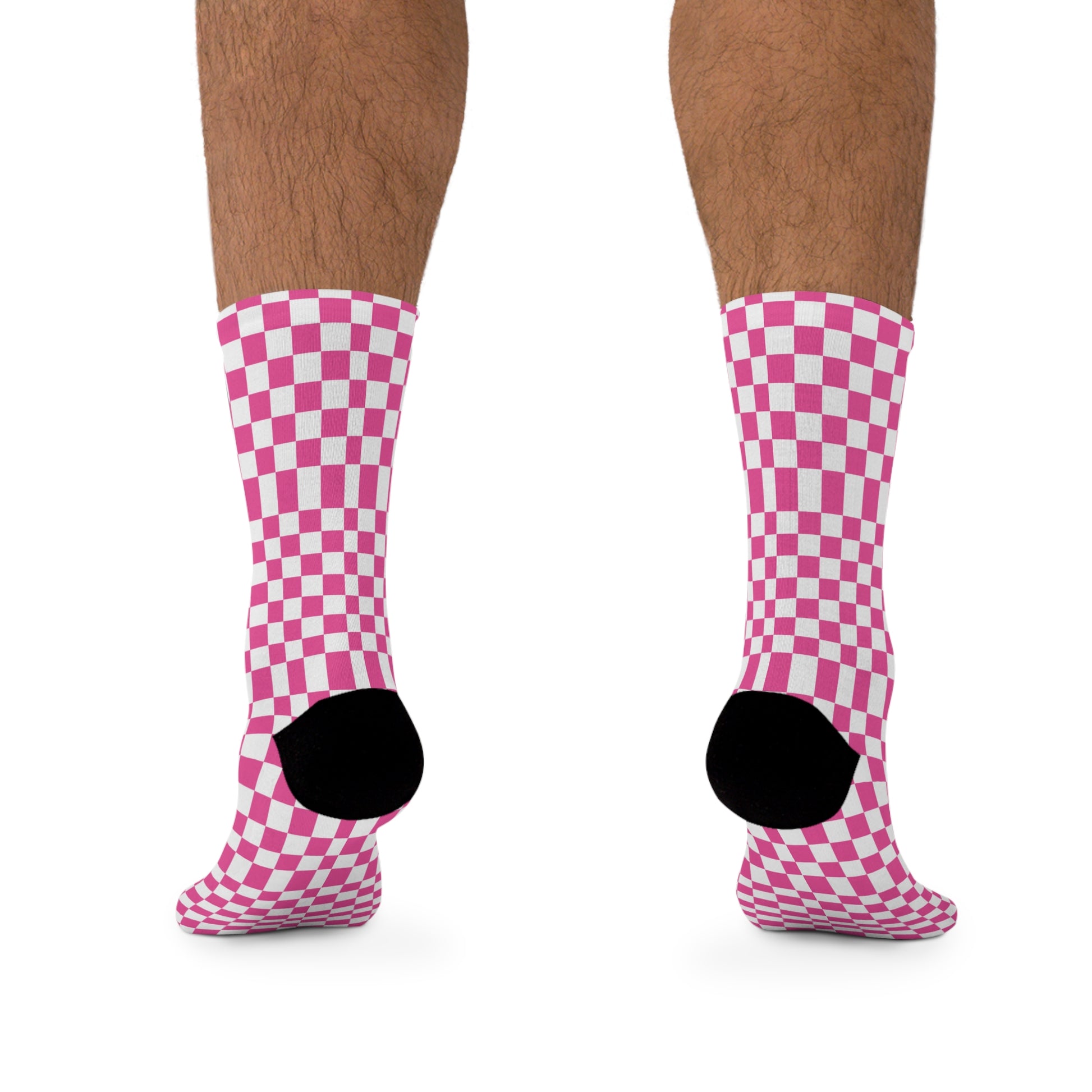 Say hello to your new favorite socks! Our Pink Square Crew Socks bring a pop of color and fun geometric vibes to your sock drawer. Crafted with a blend of 58% recycled polyester (saving the planet, one sock at a time), 22% nylon, 15% cotton, and 5% elastane, they’re as comfy as they are stylish. The 200 needle knit ensures a premium feel that hugs your feet just right.