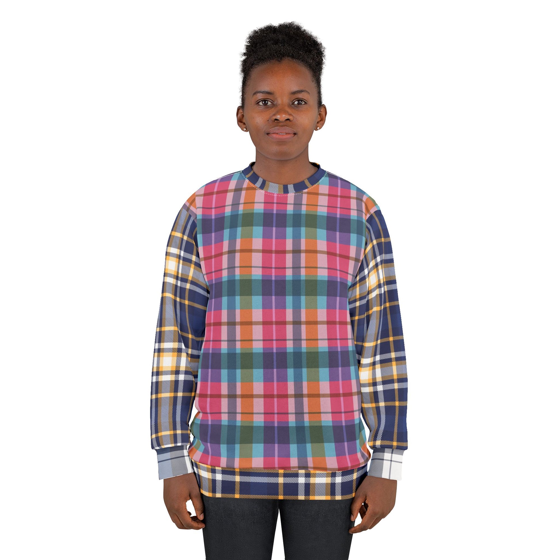 Get ready to stand out at any party with this Plaid Party sweatshirt. The bright and intense colors of the plaid design make a bold statement, perfect for those who love to make a fashion statement. This sweatshirt is ideal for casual gatherings, holiday parties, or any festive occasion.