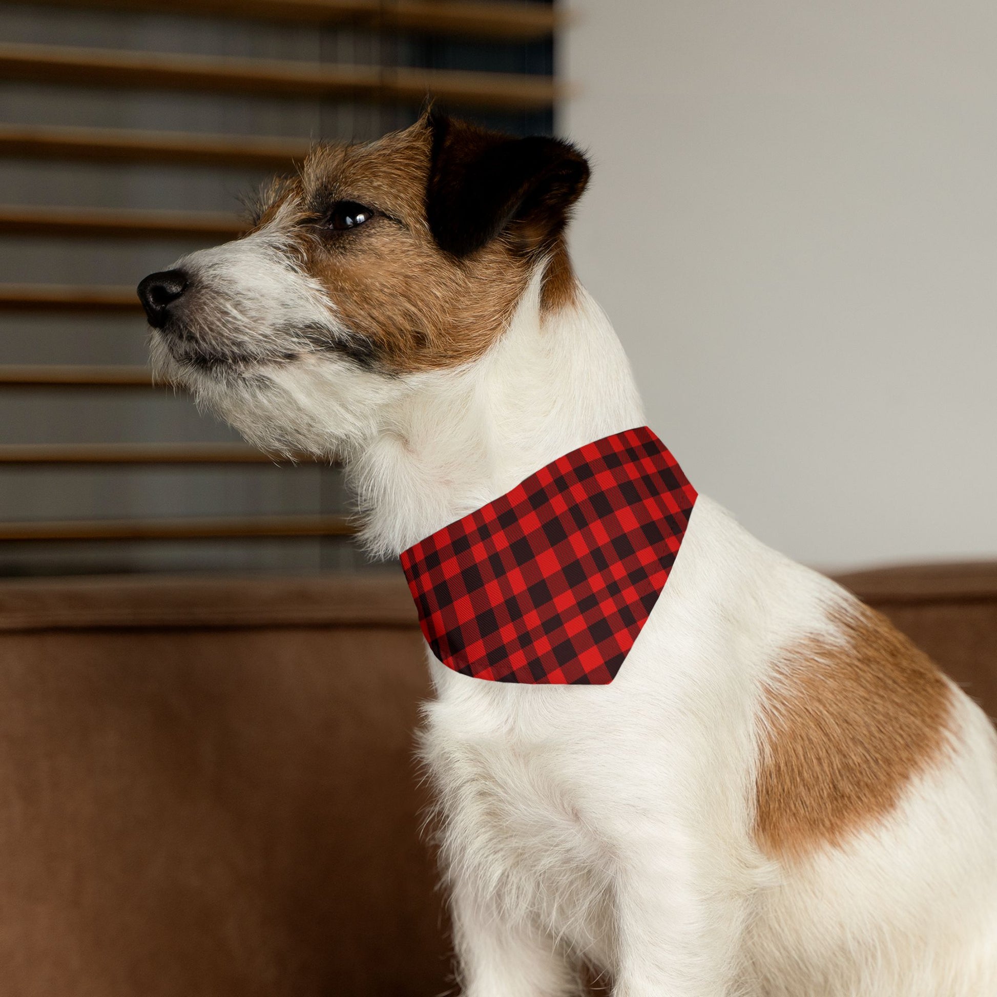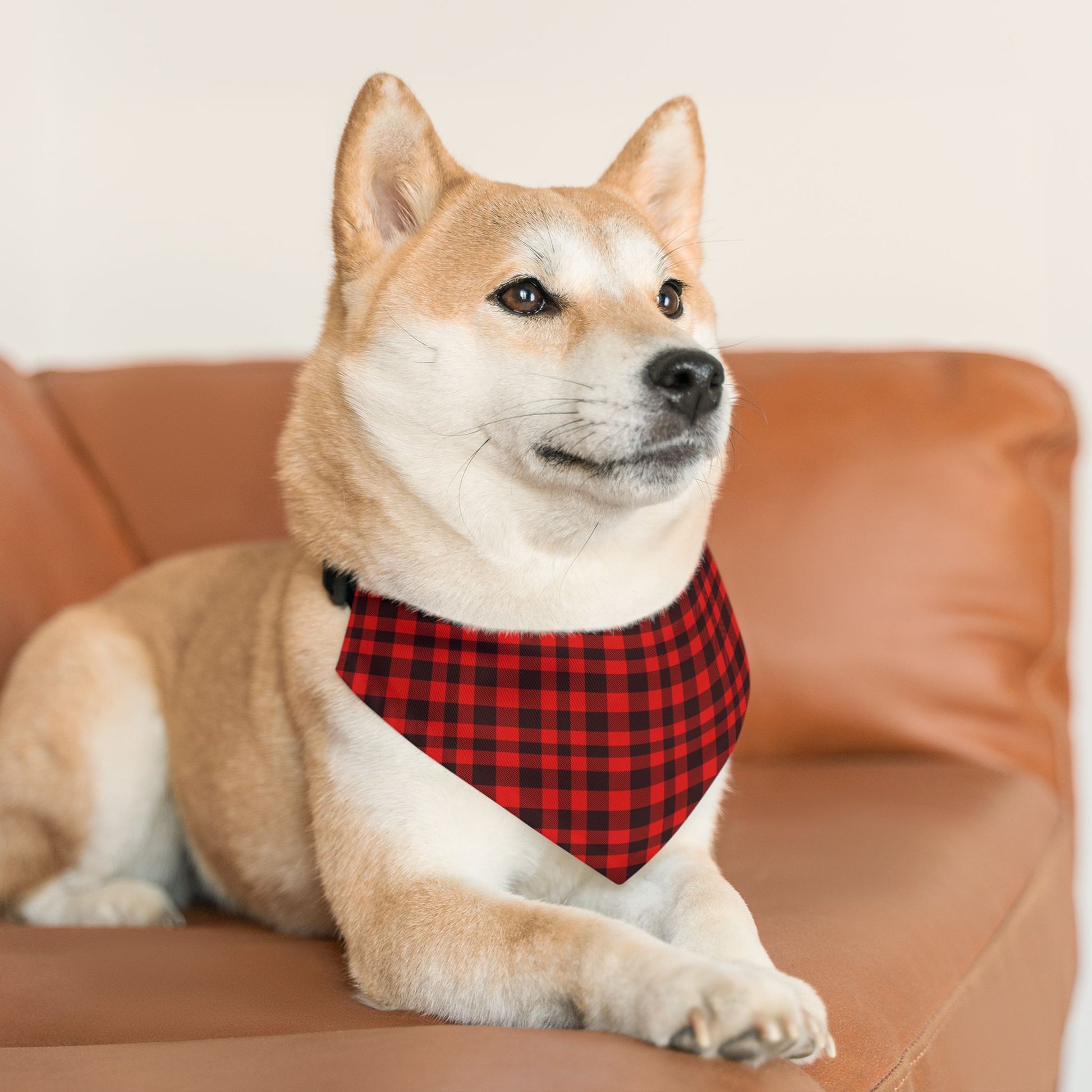 This Pet Bandana features a classic Red & Black Plaid Pattern, giving off a cozy and timeless vibe. Perfect for pet owners looking to add a stylish accessory to their furry friend's wardrobe, especially during the holiday season or for special occasions.