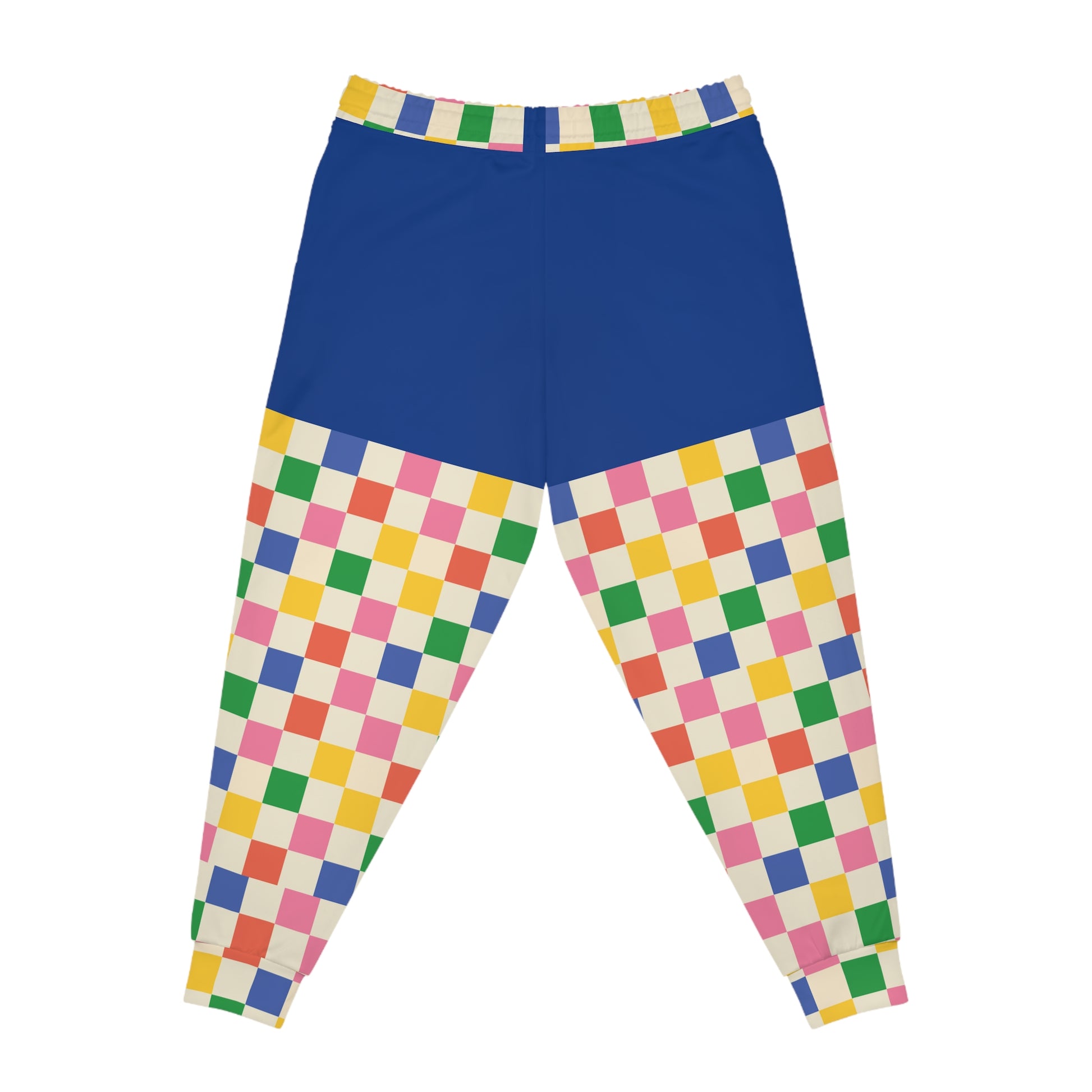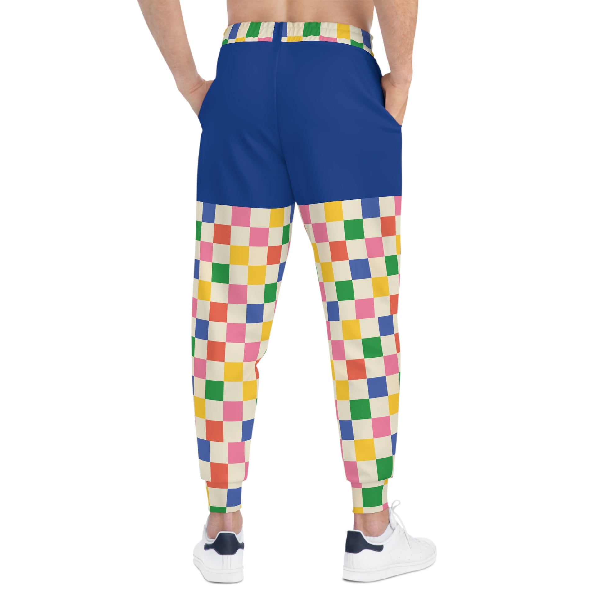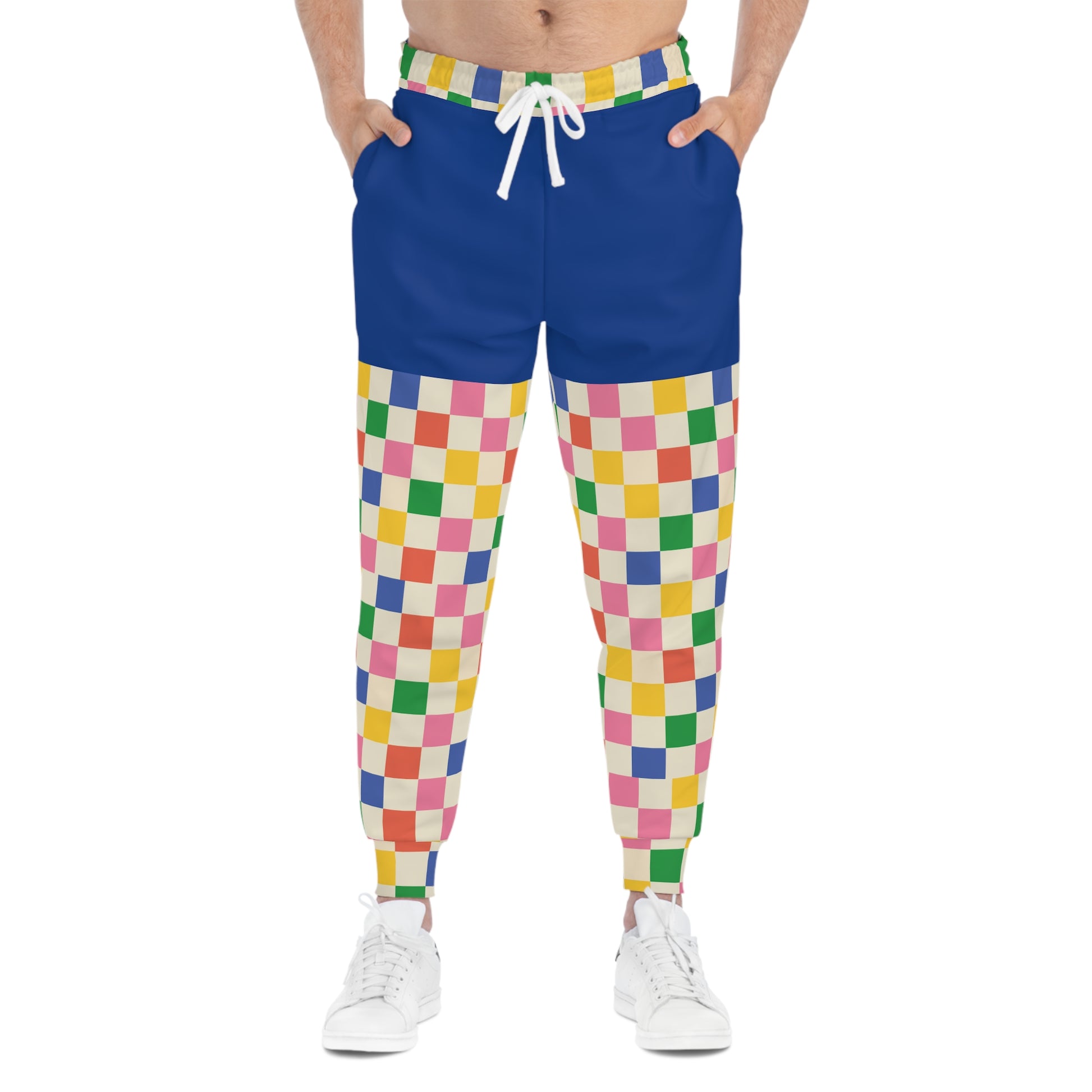 Bring the fun with these unisex lightweight joggers, featuring a vibrant retro-inspired multicolor checkerboard pattern. Paired with a bold blue upper and a playful mix of colors, these joggers are designed for those who love to stand out. Made from soft, breathable fabric for all-day comfort, the Retro Pop Joggers are perfect for streetwear vibes, casual hangouts, or adding a pop of color to your lounging look. Bright, bold, and effortlessly cool—your new favorite statement piece is here!