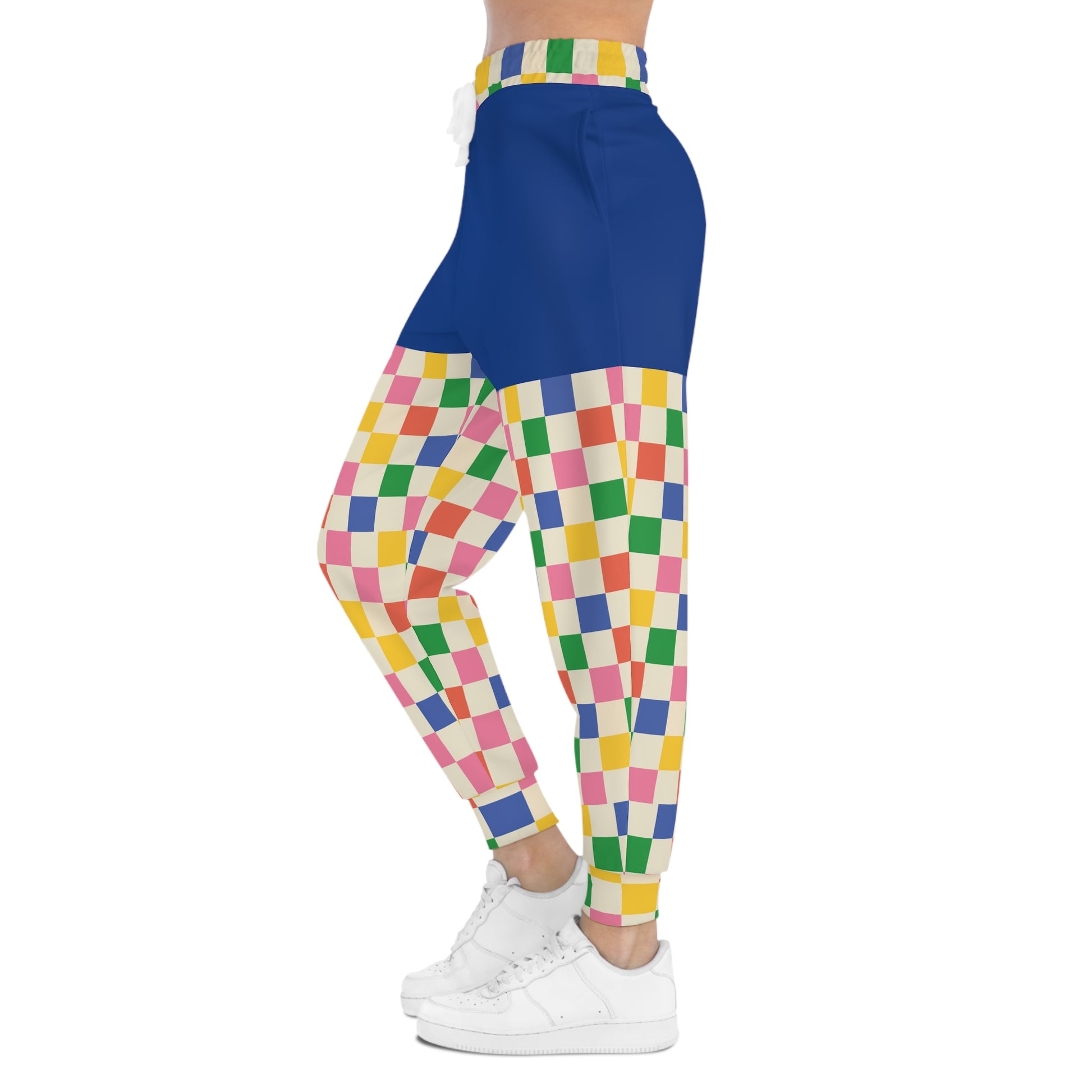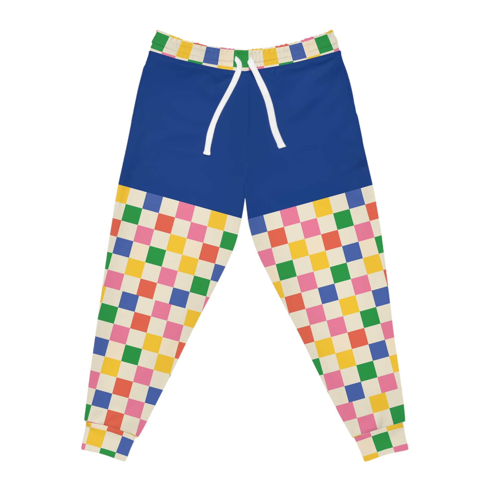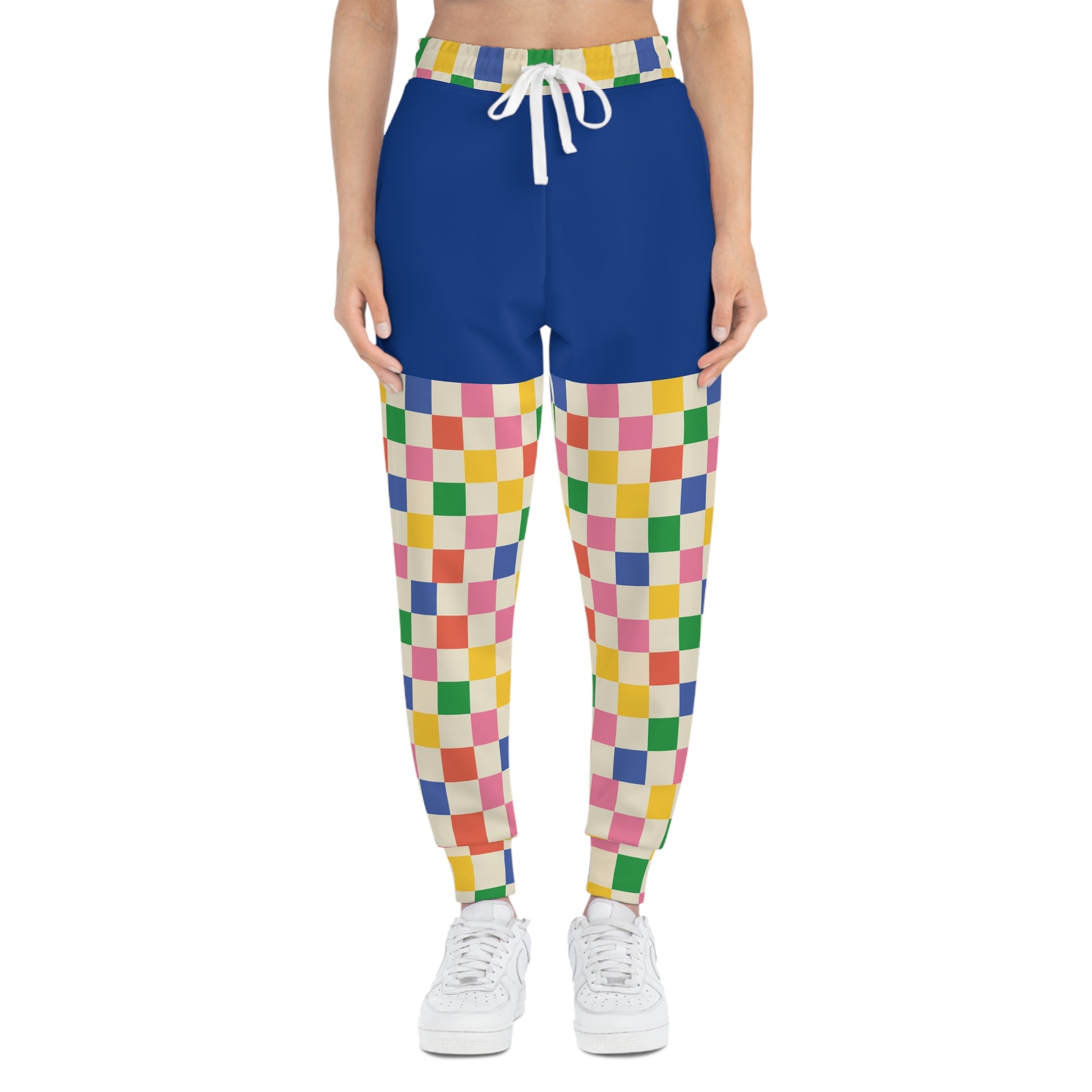 Bring the fun with these unisex lightweight joggers, featuring a vibrant retro-inspired multicolor checkerboard pattern. Paired with a bold blue upper and a playful mix of colors, these joggers are designed for those who love to stand out. Made from soft, breathable fabric for all-day comfort, the Retro Pop Joggers are perfect for streetwear vibes, casual hangouts, or adding a pop of color to your lounging look. Bright, bold, and effortlessly cool—your new favorite statement piece is here!
