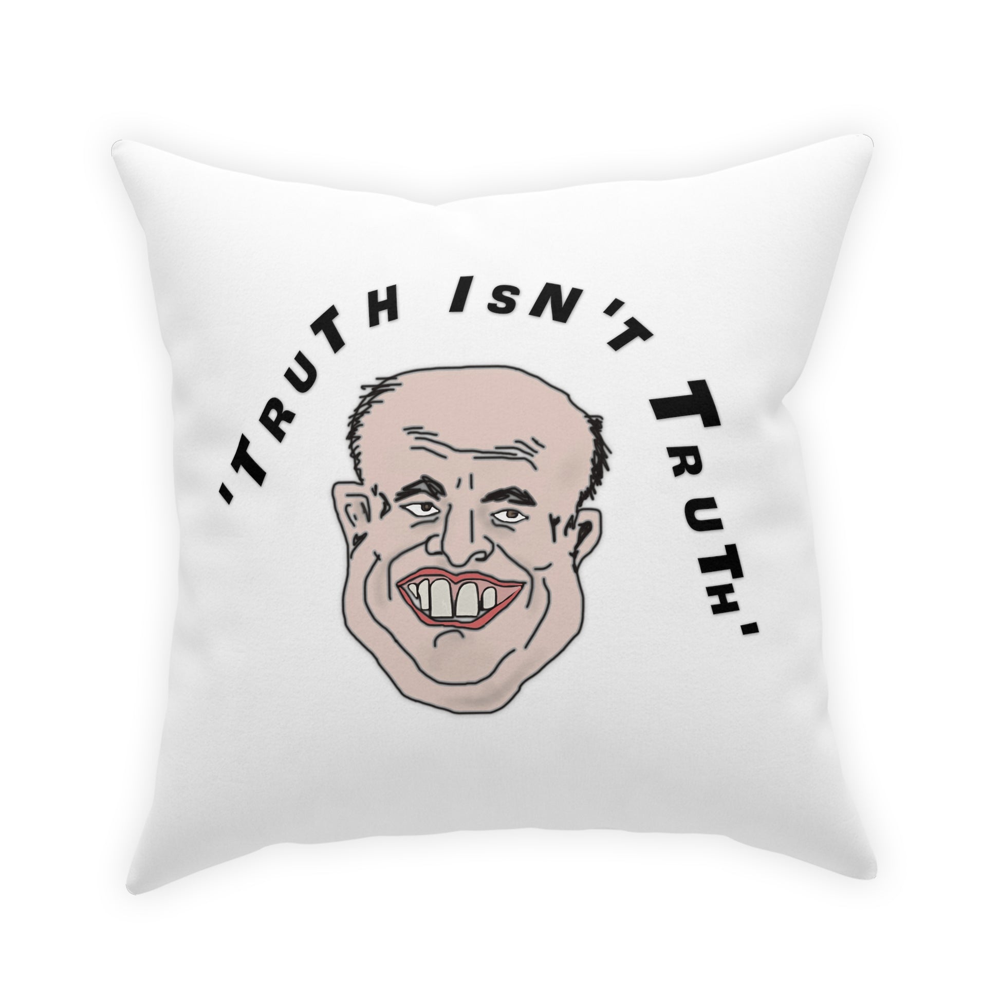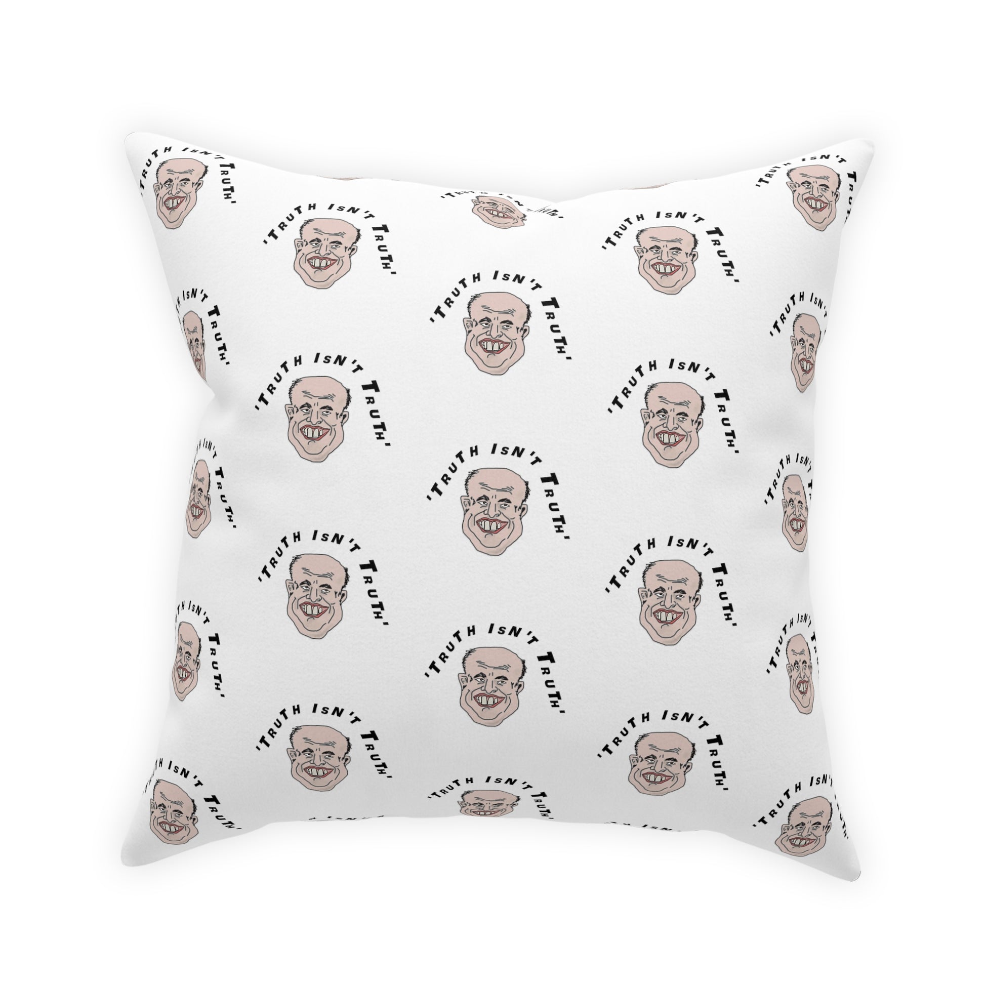 Introducing Rudy's Truth Pillow - the perfect addition to any home decor collection. This custom broadcloth pillow is not only incredibly soft to the touch, but also features removable fill material for easy cleaning. Made with 100% polyester broadcloth and filling, this pillow is not only stylish but also practical. Part of the Politics collection, this double sided pillow is the perfect combination of funny, sassy, and smart - just like its namesake. Sizing is 20" × 20"