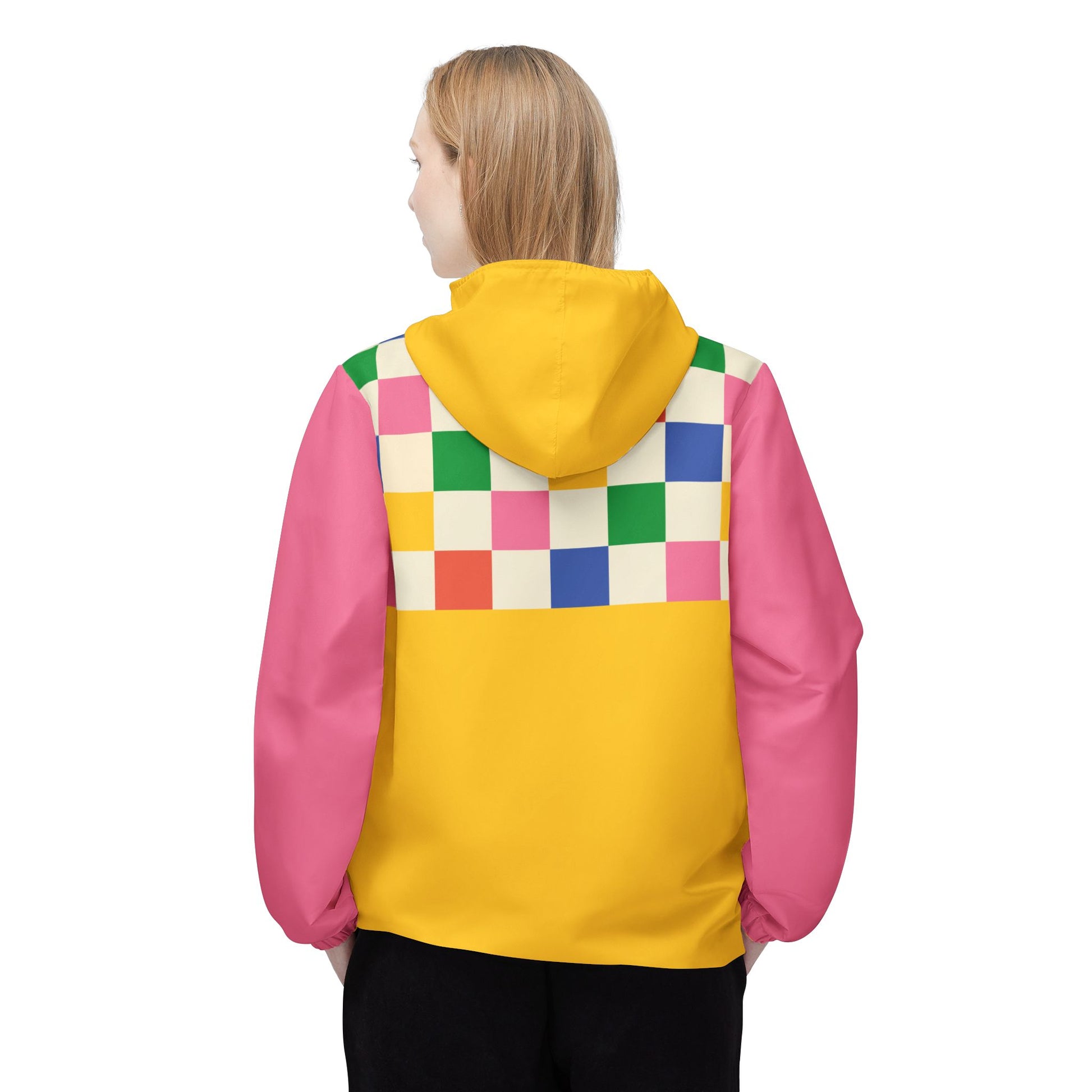 Ride the streets in style with the Skater Flux Windbreaker — a unisex jacket designed for those who move with energy and confidence. Inspired by the vibrant, retro skater aesthetic, this windbreaker features a bold multicolor checkerboard pattern, bright pink sleeves, and a striking mix of yellow and coral for that perfect throwback vibe. Crafted from durable, quick-drying 100% polyester, it’s lightweight yet tough, offering water and wind resistance to keep you covered on the go. Spacious front pockets provide room for your essentials, making this the ultimate jacket for skating, streetwear, and everyday adventure. Stay bold, stay fast, stay fresh — Skater Flux has got you.