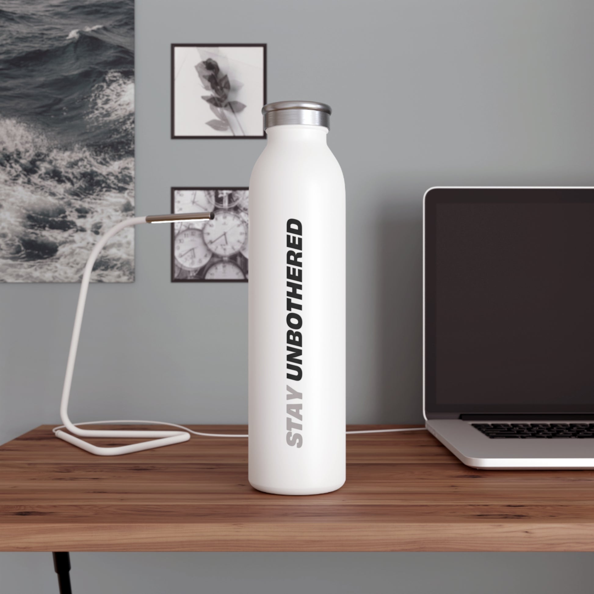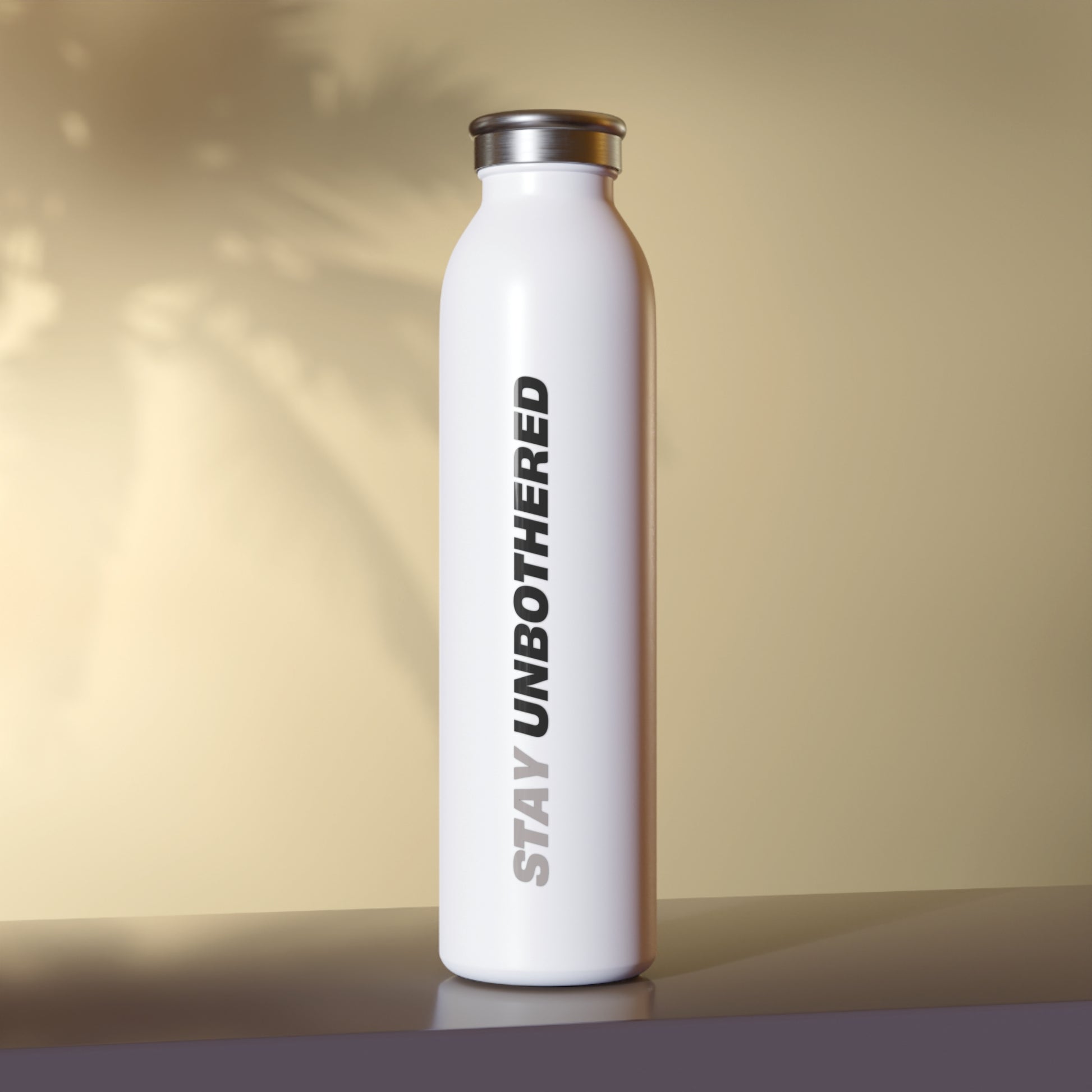 Introducing the Stay Unbothered Water Bottle, the perfect way to stay hydrated in style. With a generous 20oz capacity, this bottle is designed to keep your beverages at the perfect temperature for hours on end. The fashionable lid and double-wall stainless steel frame offer a sleek and modern look, while the vacuum insulation ensures that both hot and cold drinks stay just the way you like them. Part of our Zen collection, this water bottle combines functionality with a touch of serenity, making it the ideal companion for any adventure or daily routine. Stay refreshed and unbothered with the Stay Unbothered Water Bottle.