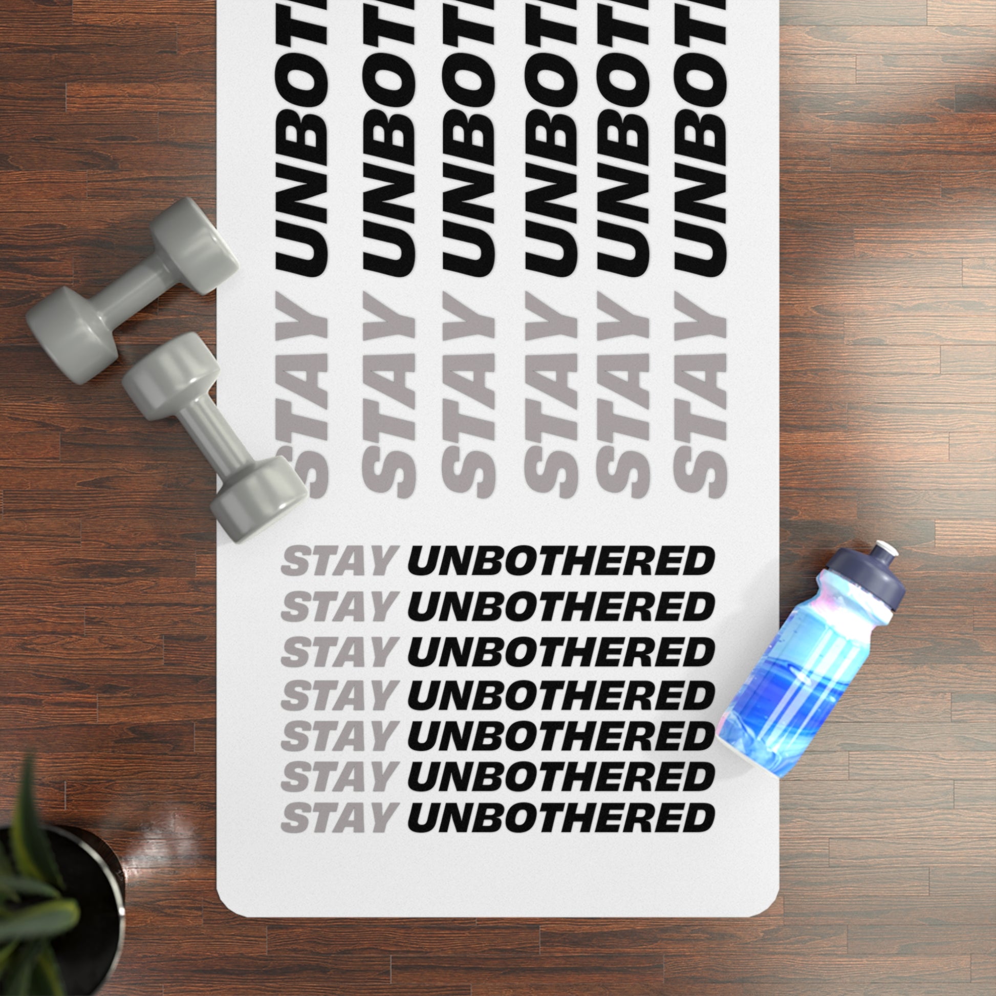 Introducing the Stay Unbothered Yoga Mat, the ultimate companion for your yoga practice. Made from high-quality rubber, this yoga mat features an anti-slip rubber bottom for extra stability, allowing you to better balance during any pose. The Stay Unbothered mat also absorbs impact, delivering a higher comfort factor for all your exercises, whether it's yoga, pilates, or stretching. With its generous size of 24″ x 68" (61cm x 173 cm) and lightweight design, it's the perfect mat for yogis on the go. Part of our Zen collection, this yoga mat will help you find your inner peace and zen during every practice.