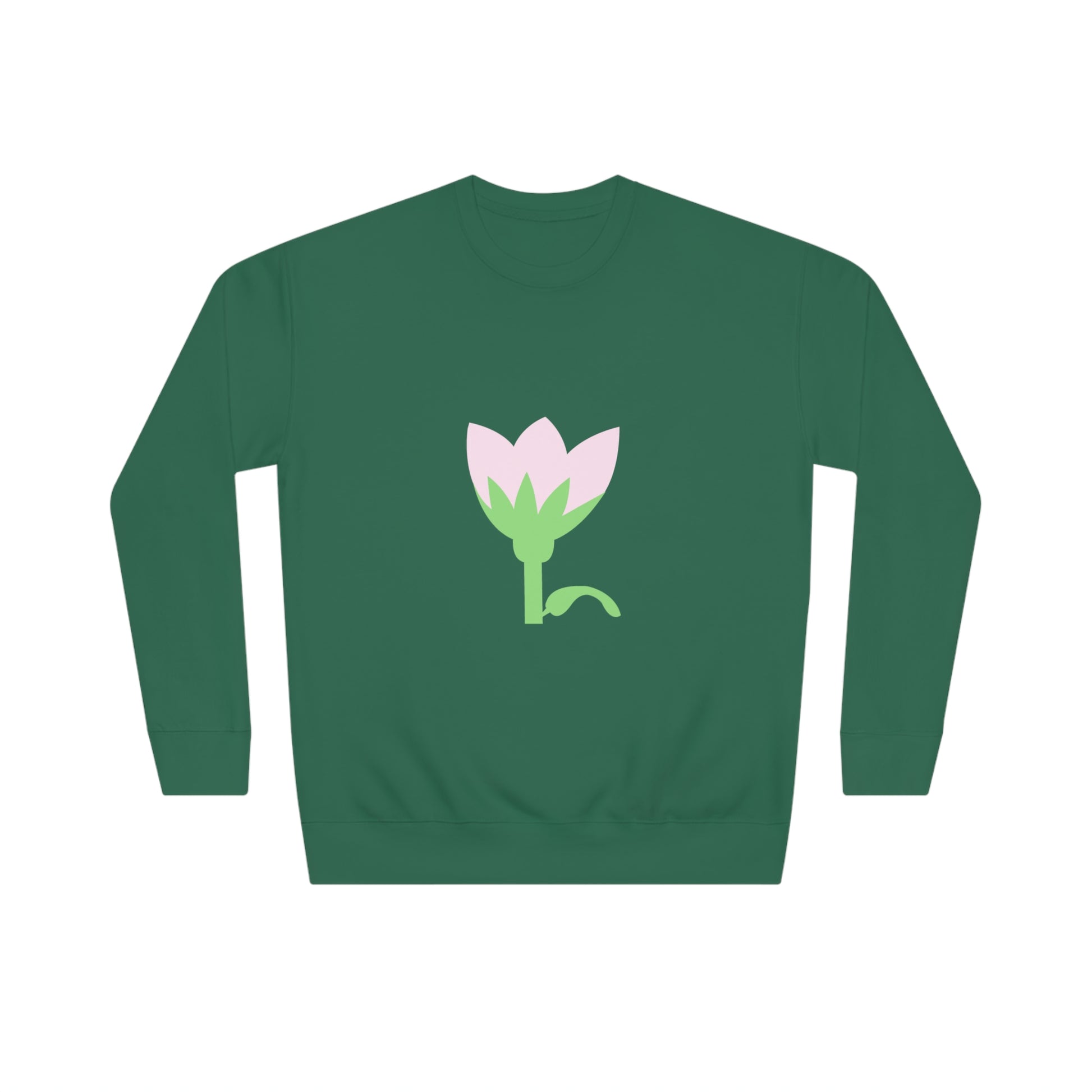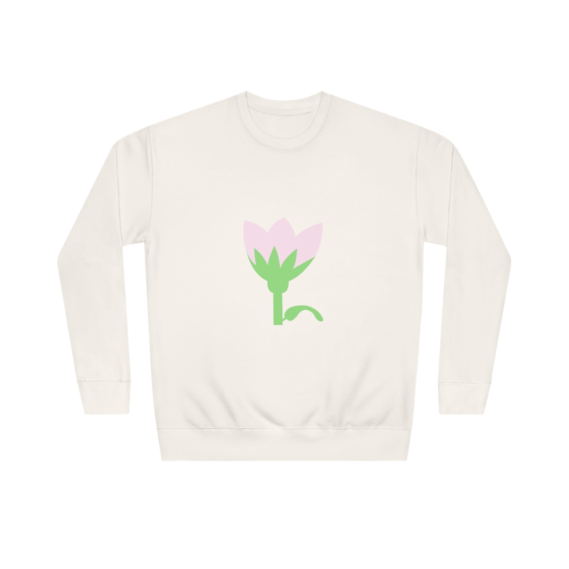 Introducing our Tulip crew neck sweatshirt, the perfect blend of comfort and style. Made with 65% cotton and 35% polyester, this sweatshirt features a 100% cotton face for ultimate softness. The self-fabric, 1/2 moon patch on the neck area adds a touch of sophistication to the design. Part of our nature collection, this sweatshirt showcases a unique, fun, fresh, and original tulip design. Whether you're lounging at home or running errands, this sweatshirt offers the perfect balance between coziness and agility. Add a pop of color and personality to your wardrobe with our Tulip crew neck sweatshirt.