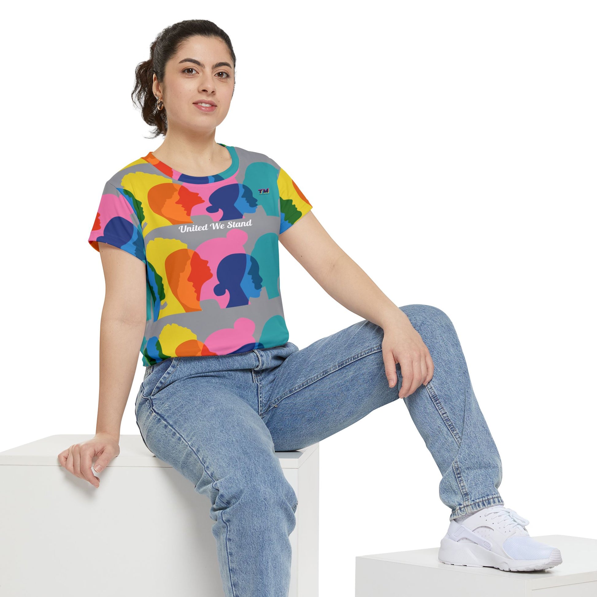 Celebrate diversity, inclusion, and unity with the United We Stand Women's T-Shirt, featuring a vibrant and empowering design of overlapping silhouettes in a spectrum of colors. This eye-catching shirt is perfect for activists, social justice advocates, and those who stand for equality and community strength. Whether you're attending a rally, supporting a cause, or simply expressing your values, this statement tee represents solidarity and empowerment for all.