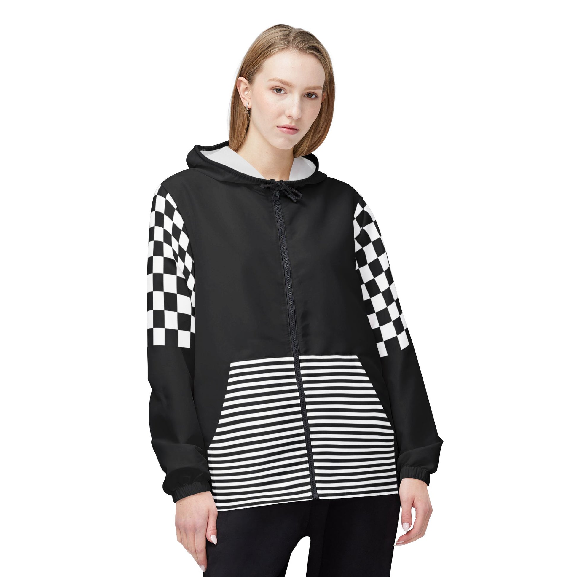 Stay sharp and street-ready with the Urban Lines Windbreaker — a unisex jacket that brings together clean design and skater attitude. With bold black-and-white checkerboard sleeves and striking striped front pockets, this windbreaker delivers an urban edge that stands out. Crafted from durable, quick-drying 100% polyester, it’s lightweight yet tough, offering water and wind resistance for any adventure. Spacious front pockets add convenience, while the monochrome palette keeps it sleek and versatile. Whether you're skating through the city or just vibing on the streets, the Urban Lines Windbreaker has got your back in style and comfort.
