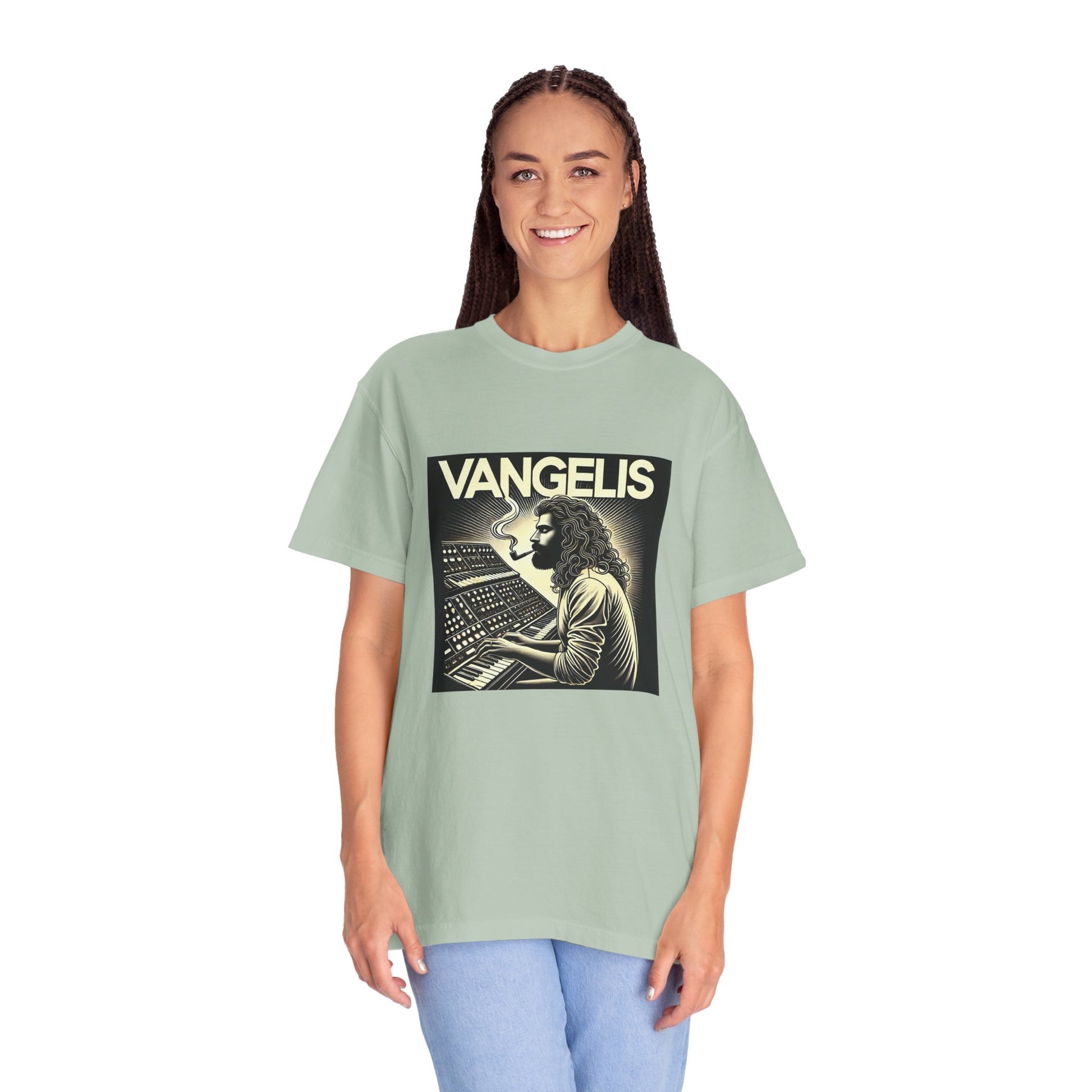 This Vangelis tribute T-shirt isn't just apparel—it's a celebration of artistry and sound, ideal for music lovers, collectors, and fans who appreciate the timeless beauty of analog synthesizers.