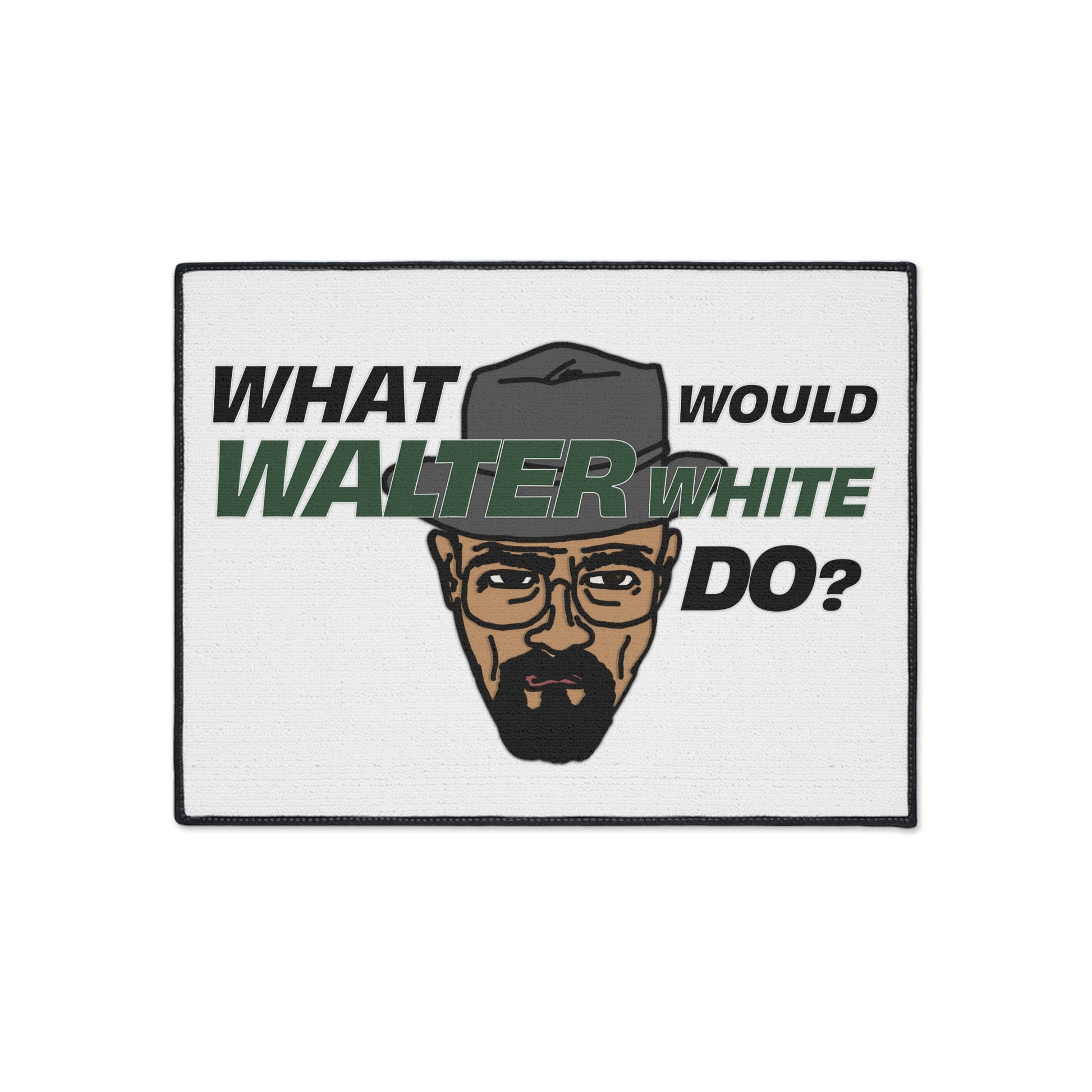 Introducing the "What Would Walter White Do?" Floor Mat. Made with 100% polyester, each mat features a non-slip backing for keeping your steps safe, making it perfect for any room in your home. This awesome floor mat is part of our Entertainment collection, inspired by the coolest TV show, Breaking Bad. It's a must-have for any fan of the show, with its eye-catching design and practical functionality. Add a touch of Walter White's trademark style to your living space with this one-of-a-kind floor mat.